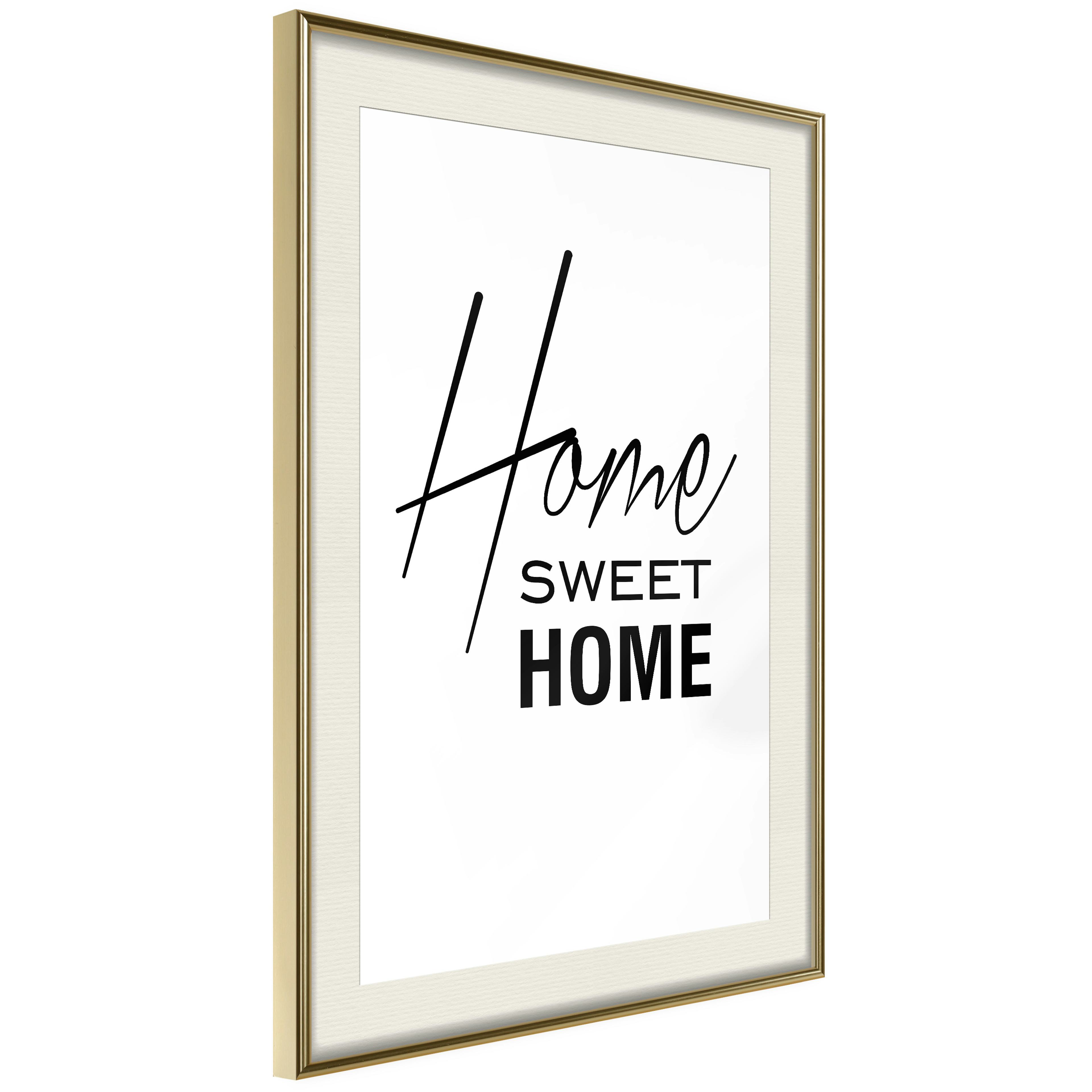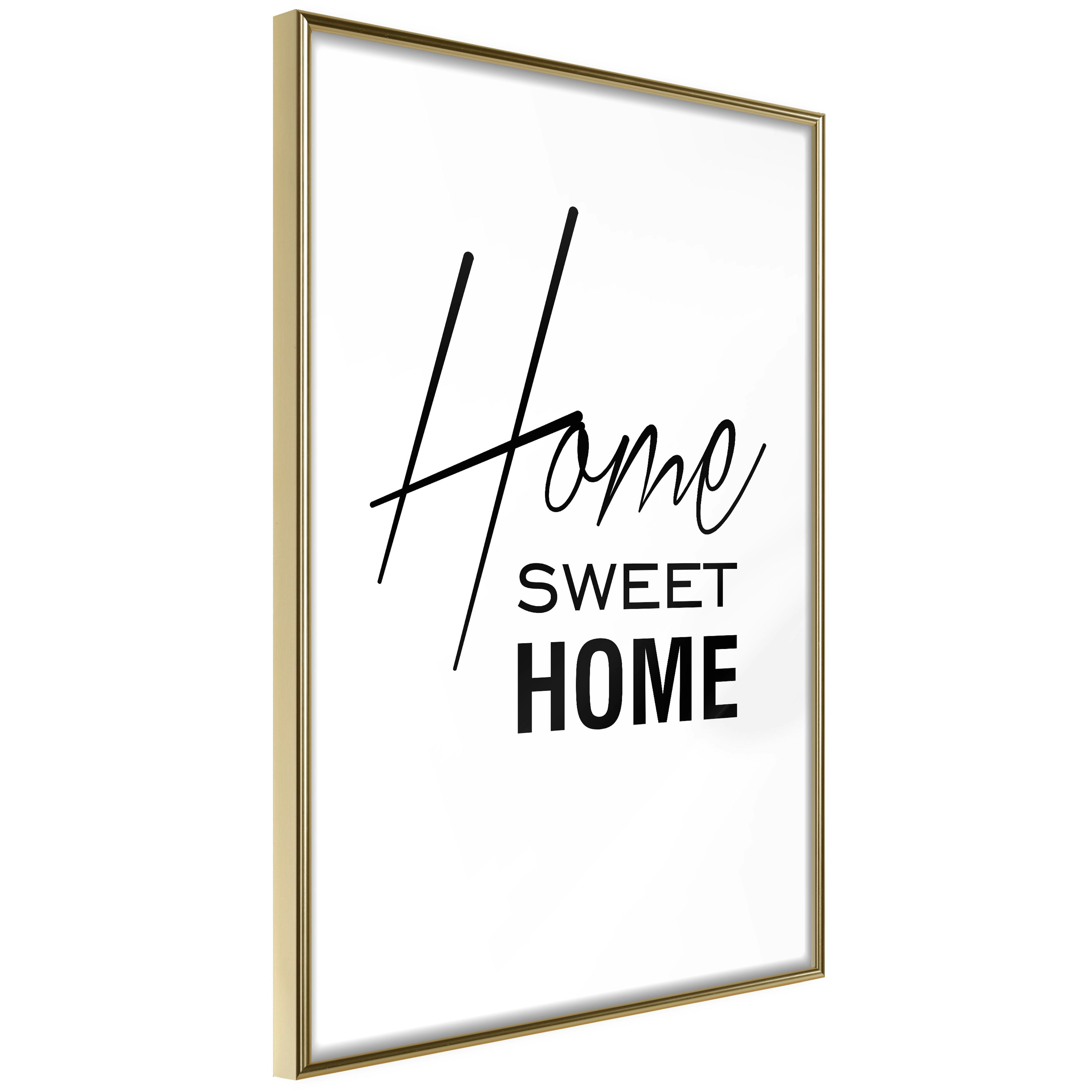 Poster Artgeist Affisch Black and White Home Sweet HomeGuld ram, 40x60 cm