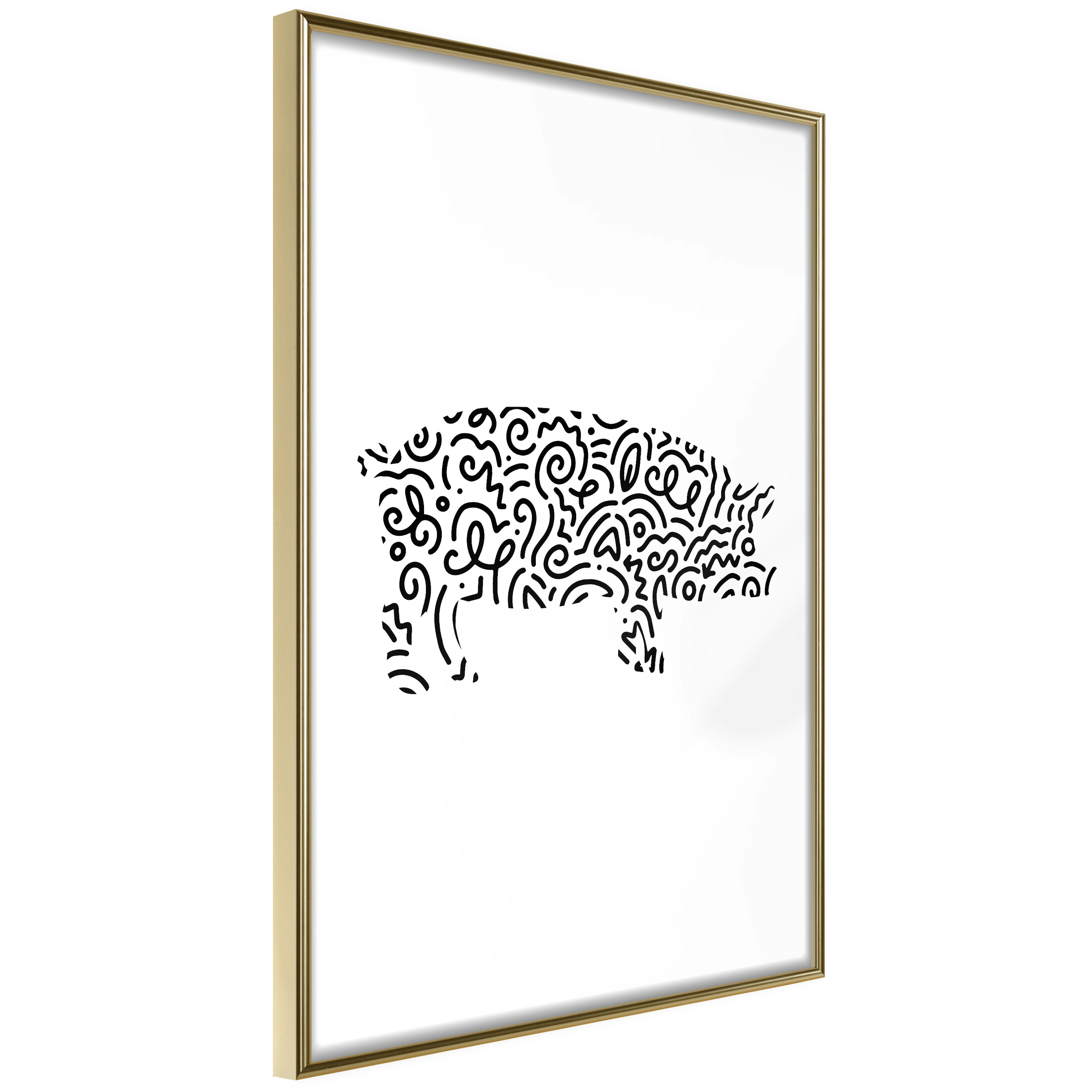 Affischen är inramad i en minimalistisk, lätt ram som gör den mer synlig mot väggen. Affischen är säkrad med akrylglas och en hänganordning finns på ramens baksida.