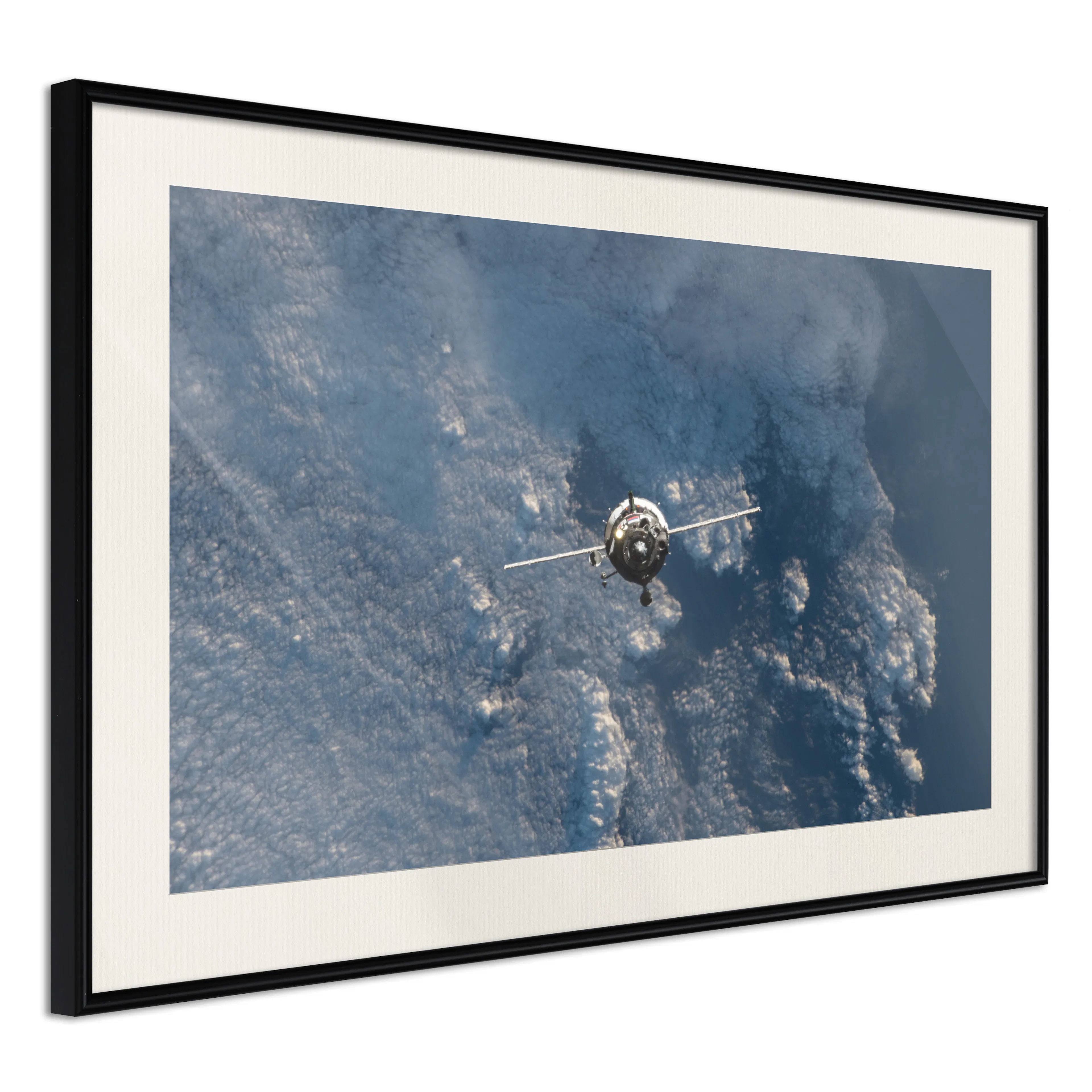 Passepartouten i écru betonar färgern på affischen och skapar en extra kontrast mellan grafiken, ramen och väggen. Dessutom ger den ramen ett svagt tredimensionellt intryck och fungerar även som ett skyddslager som ytterligare skyddar afischen. Affischen är säkrad med akrylglas och en hänganordning finns på ramens baksida.