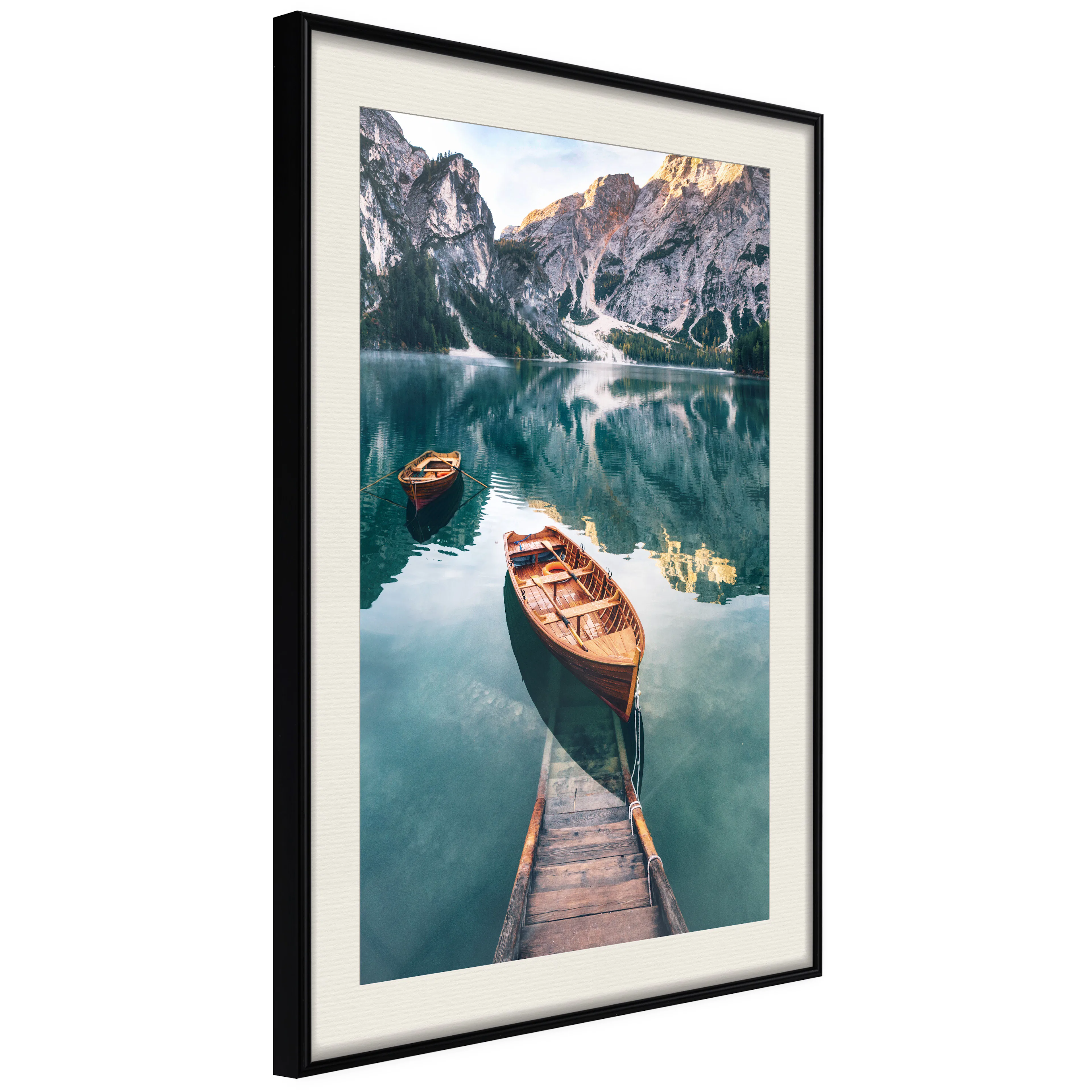 Passepartouten i écru betonar färgern på affischen och skapar en extra kontrast mellan grafiken, ramen och väggen. Dessutom ger den ramen ett svagt tredimensionellt intryck och fungerar även som ett skyddslager som ytterligare skyddar afischen. Affischen är säkrad med akrylglas och en hänganordning finns på ramens baksida.