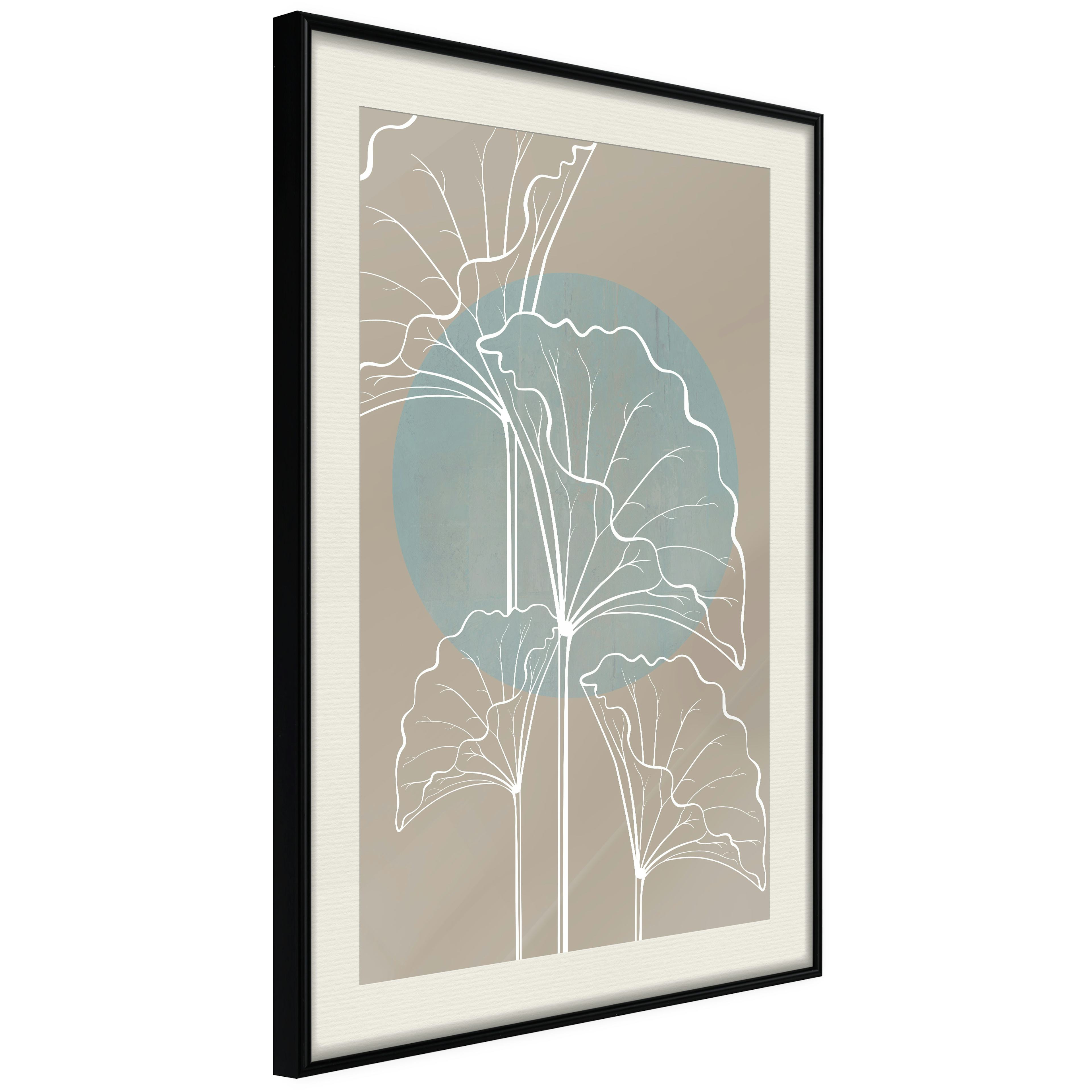 Passepartouten i écru betonar färgern på affischen och skapar en extra kontrast mellan grafiken, ramen och väggen. Dessutom ger den ramen ett svagt tredimensionellt intryck och fungerar även som ett skyddslager som ytterligare skyddar afischen. Affischen är säkrad med akrylglas och en hänganordning finns på ramens baksida.