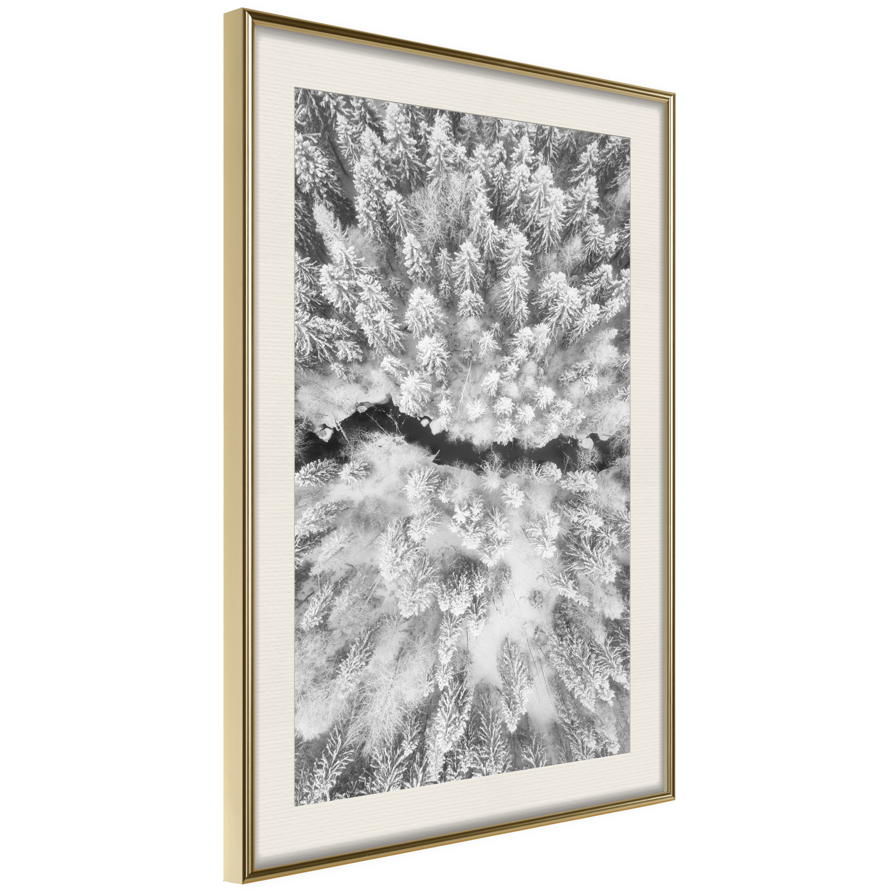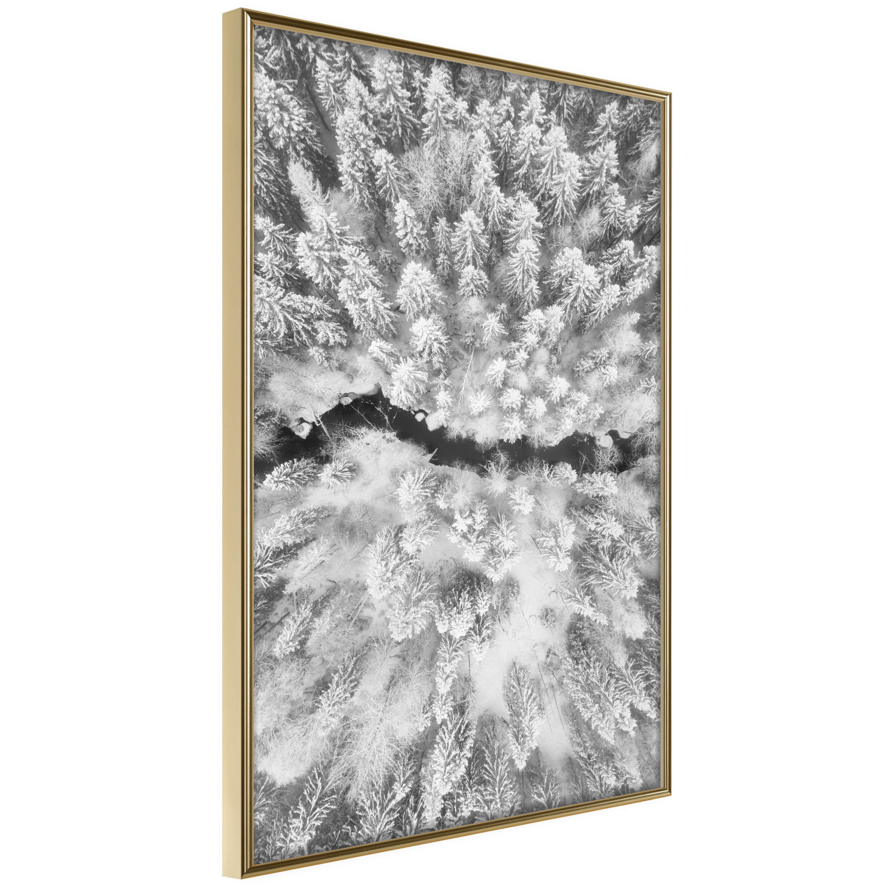 Affischen är inramad i en minimalistisk, lätt ram som gör den mer synlig mot väggen. Affischen är säkrad med akrylglas och en hänganordning finns på ramens baksida.