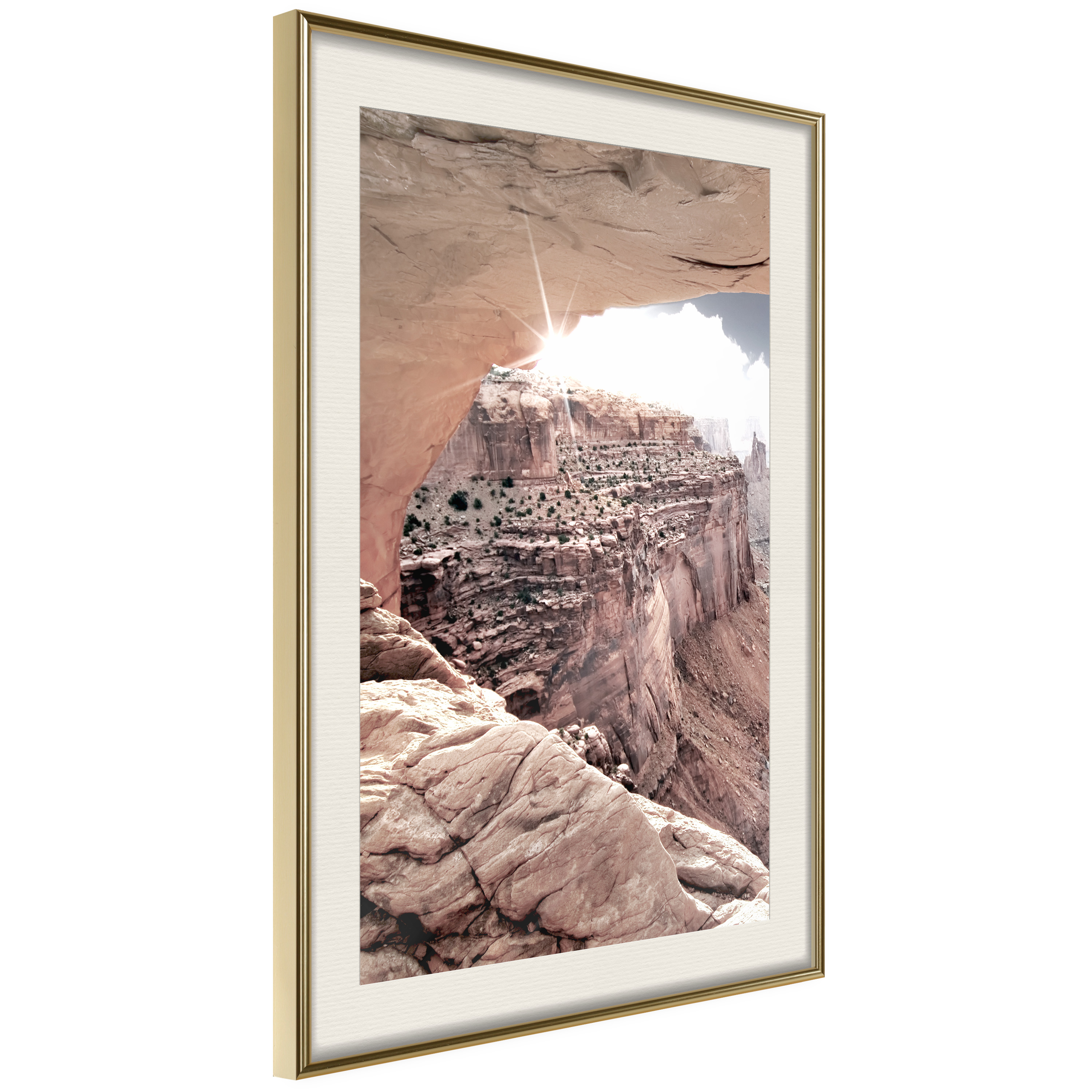 Passepartouten i écru betonar färgern på affischen och skapar en extra kontrast mellan grafiken, ramen och väggen. Dessutom ger den ramen ett svagt tredimensionellt intryck och fungerar även som ett skyddslager som ytterligare skyddar afischen. Affischen är säkrad med akrylglas och en hänganordning finns på ramens baksida.