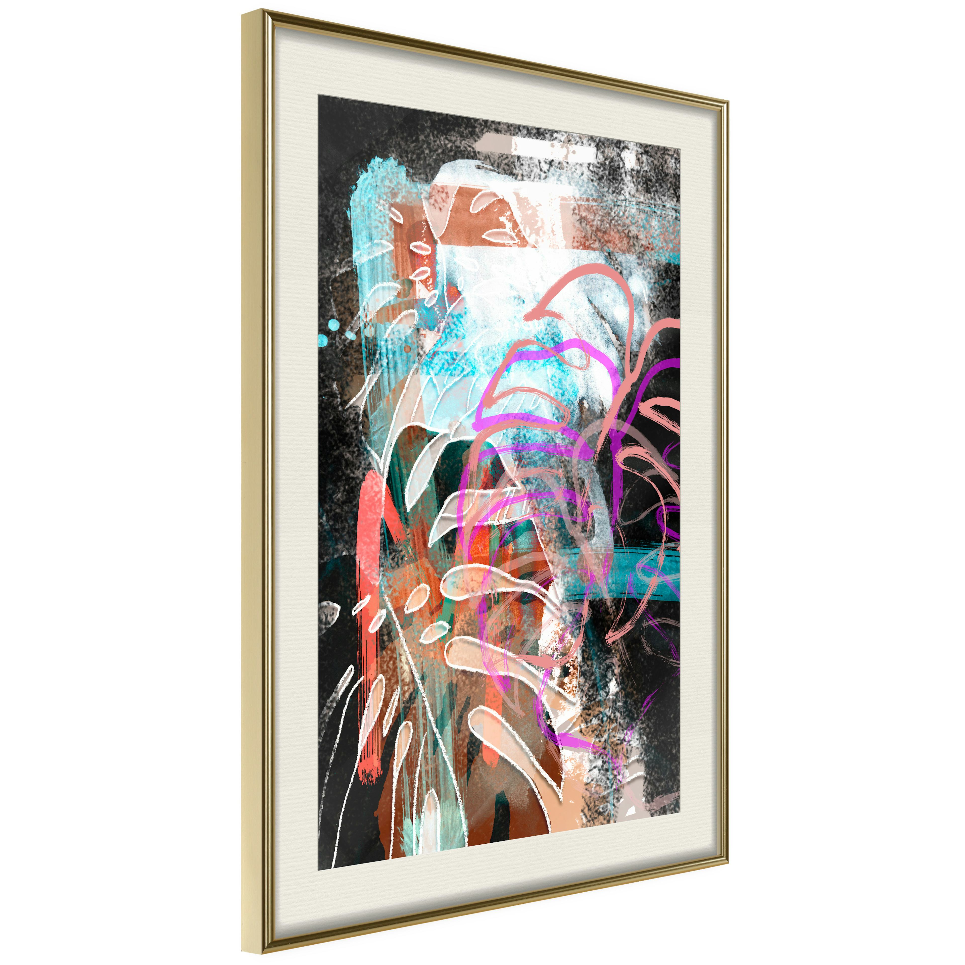 Passepartouten i écru betonar färgern på affischen och skapar en extra kontrast mellan grafiken, ramen och väggen. Dessutom ger den ramen ett svagt tredimensionellt intryck och fungerar även som ett skyddslager som ytterligare skyddar afischen. Affischen är säkrad med akrylglas och en hänganordning finns på ramens baksida.