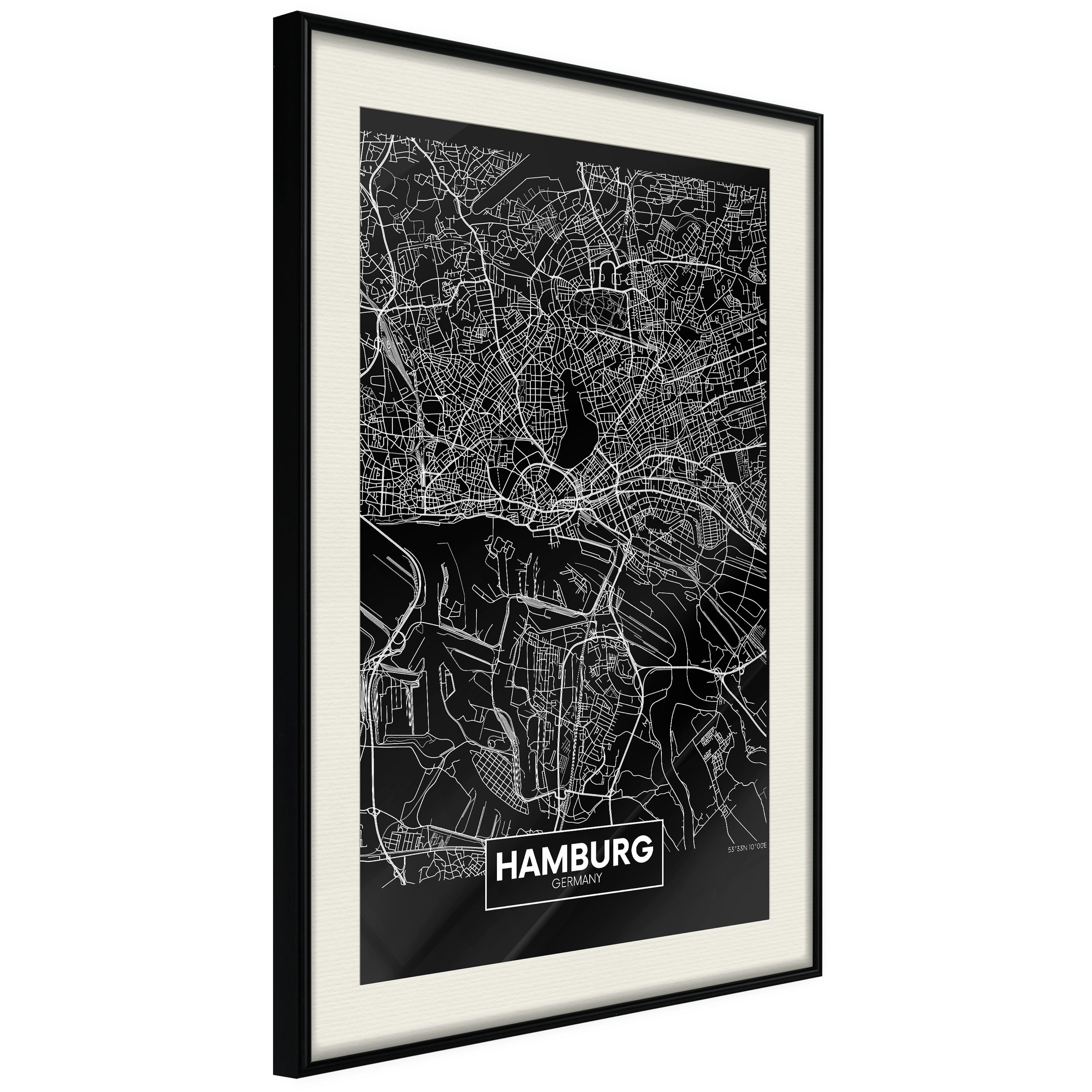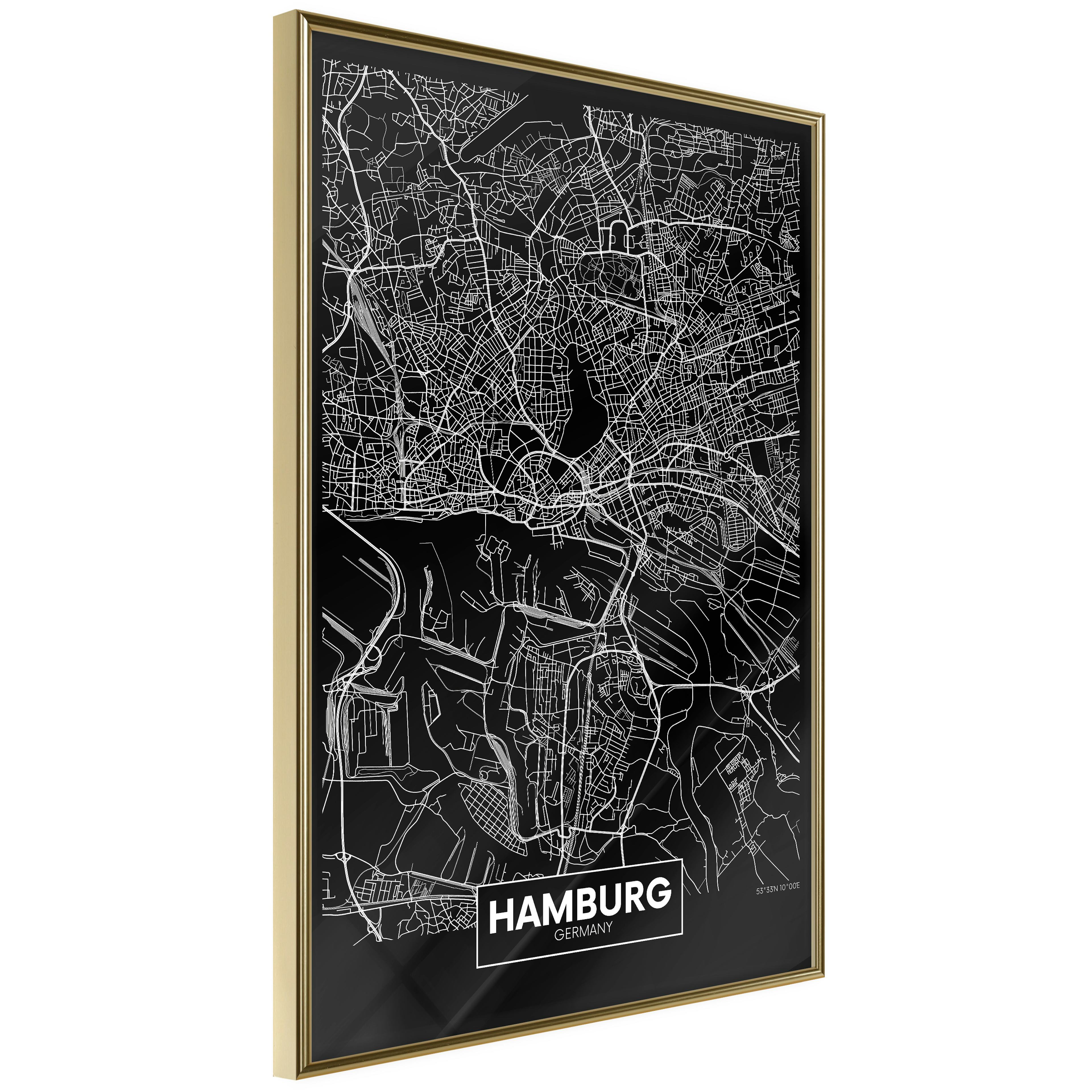 Poster Artgeist Affisch Dark Map of Hamburg
