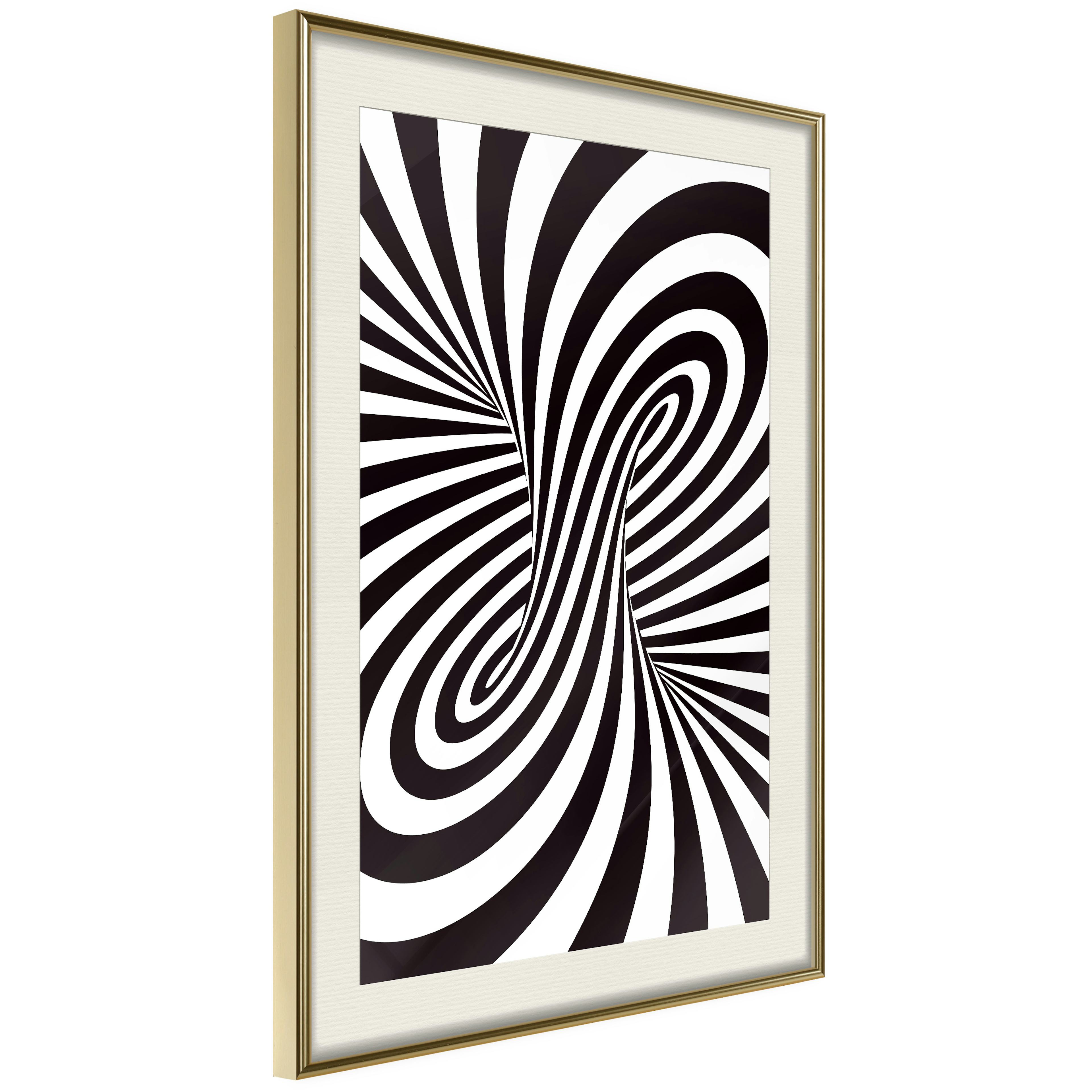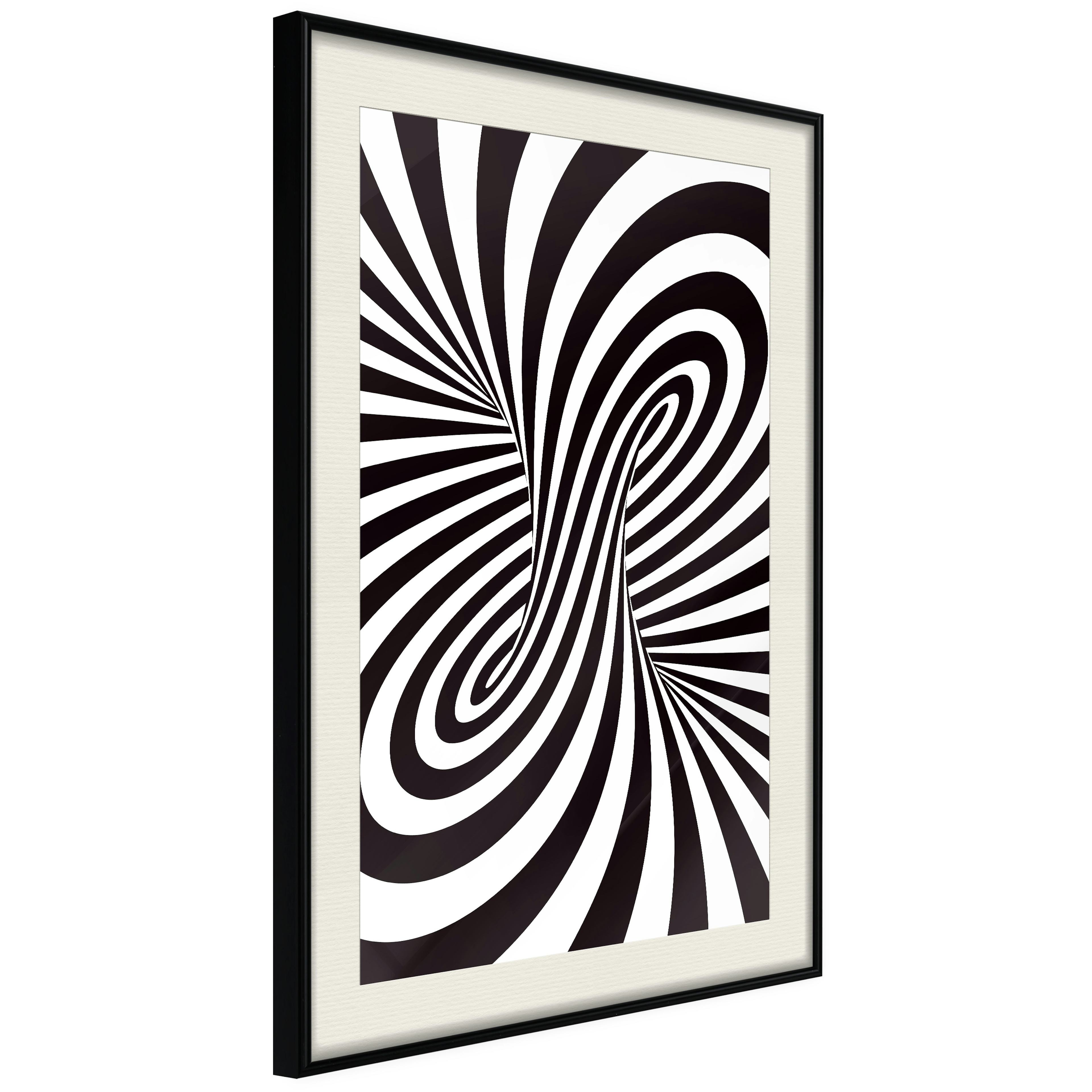 Passepartouten i écru betonar färgern på affischen och skapar en extra kontrast mellan grafiken, ramen och väggen. Dessutom ger den ramen ett svagt tredimensionellt intryck och fungerar även som ett skyddslager som ytterligare skyddar afischen. Affischen är säkrad med akrylglas och en hänganordning finns på ramens baksida.