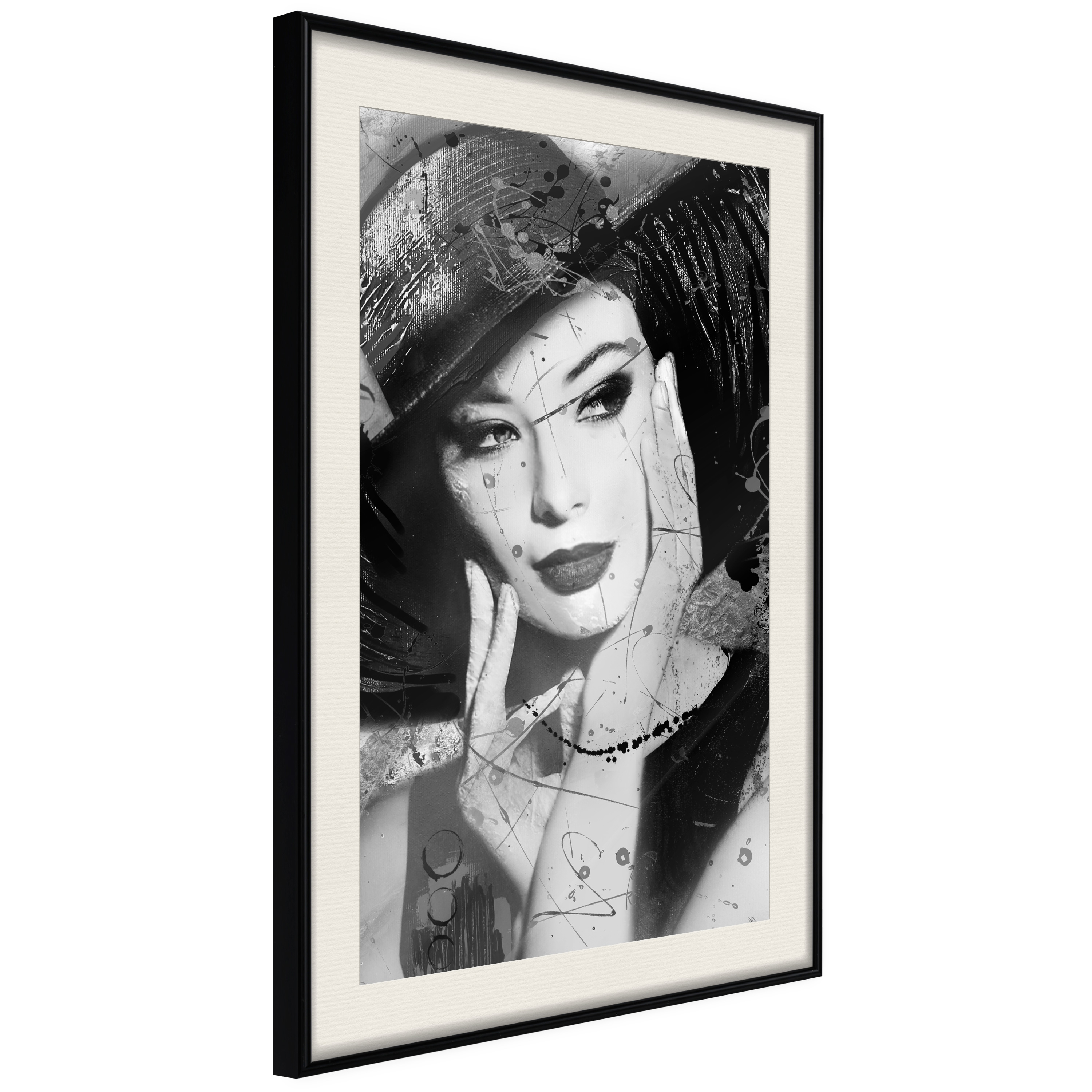 Passepartouten i écru betonar färgern på affischen och skapar en extra kontrast mellan grafiken, ramen och väggen. Dessutom ger den ramen ett svagt tredimensionellt intryck och fungerar även som ett skyddslager som ytterligare skyddar afischen. Affischen är säkrad med akrylglas och en hänganordning finns på ramens baksida.