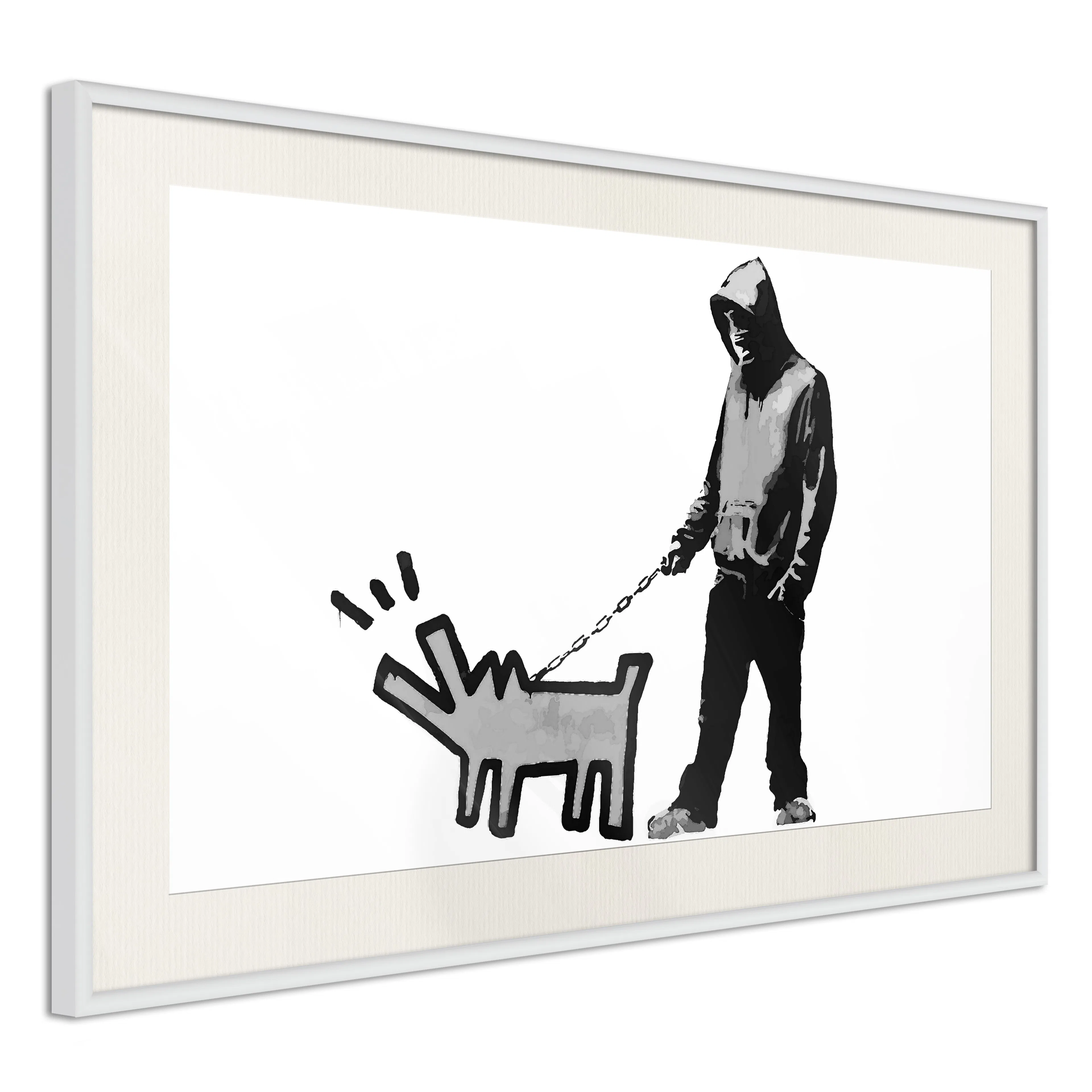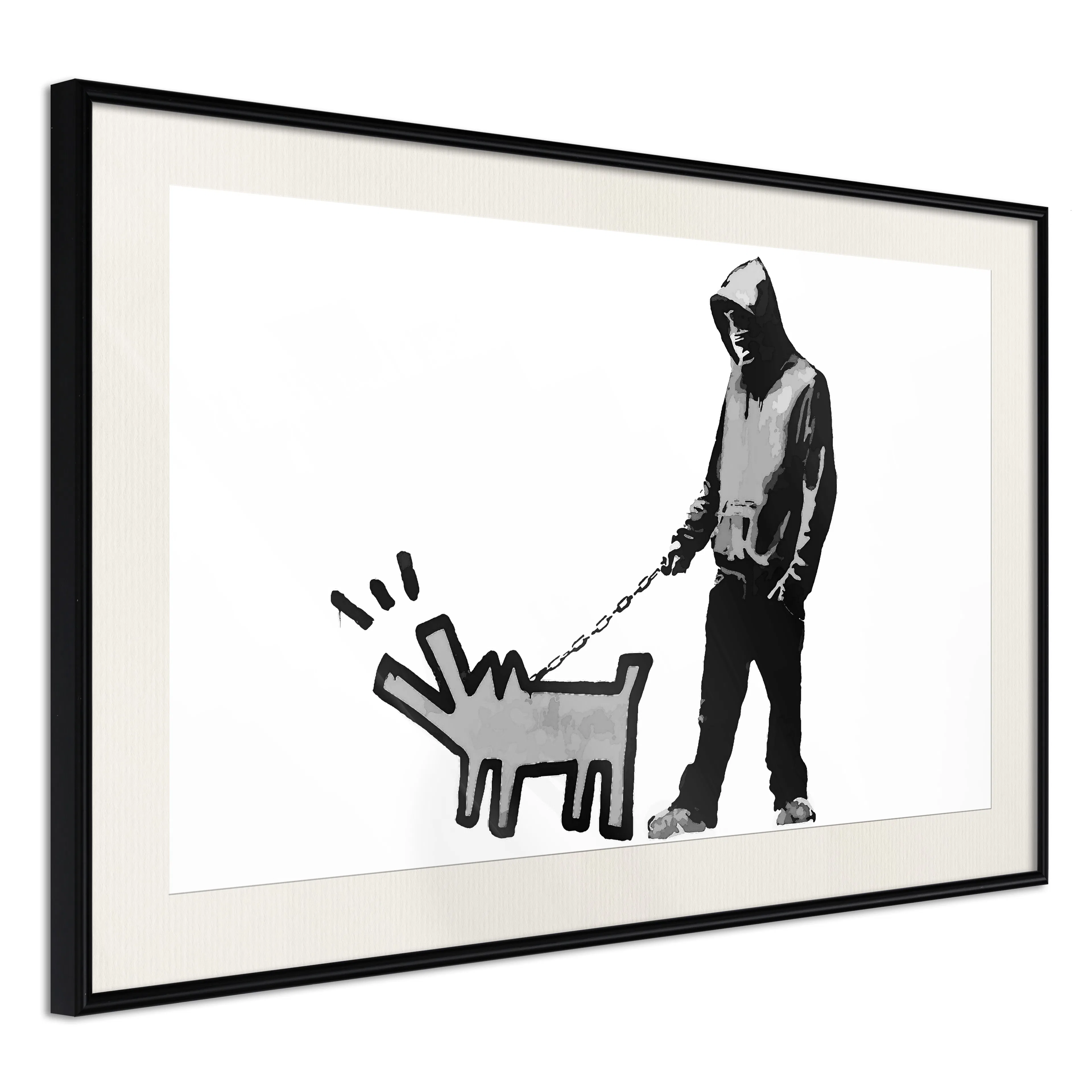 Passepartouten i écru betonar färgern på affischen och skapar en extra kontrast mellan grafiken, ramen och väggen. Dessutom ger den ramen ett svagt tredimensionellt intryck och fungerar även som ett skyddslager som ytterligare skyddar afischen. Affischen är säkrad med akrylglas och en hänganordning finns på ramens baksida.