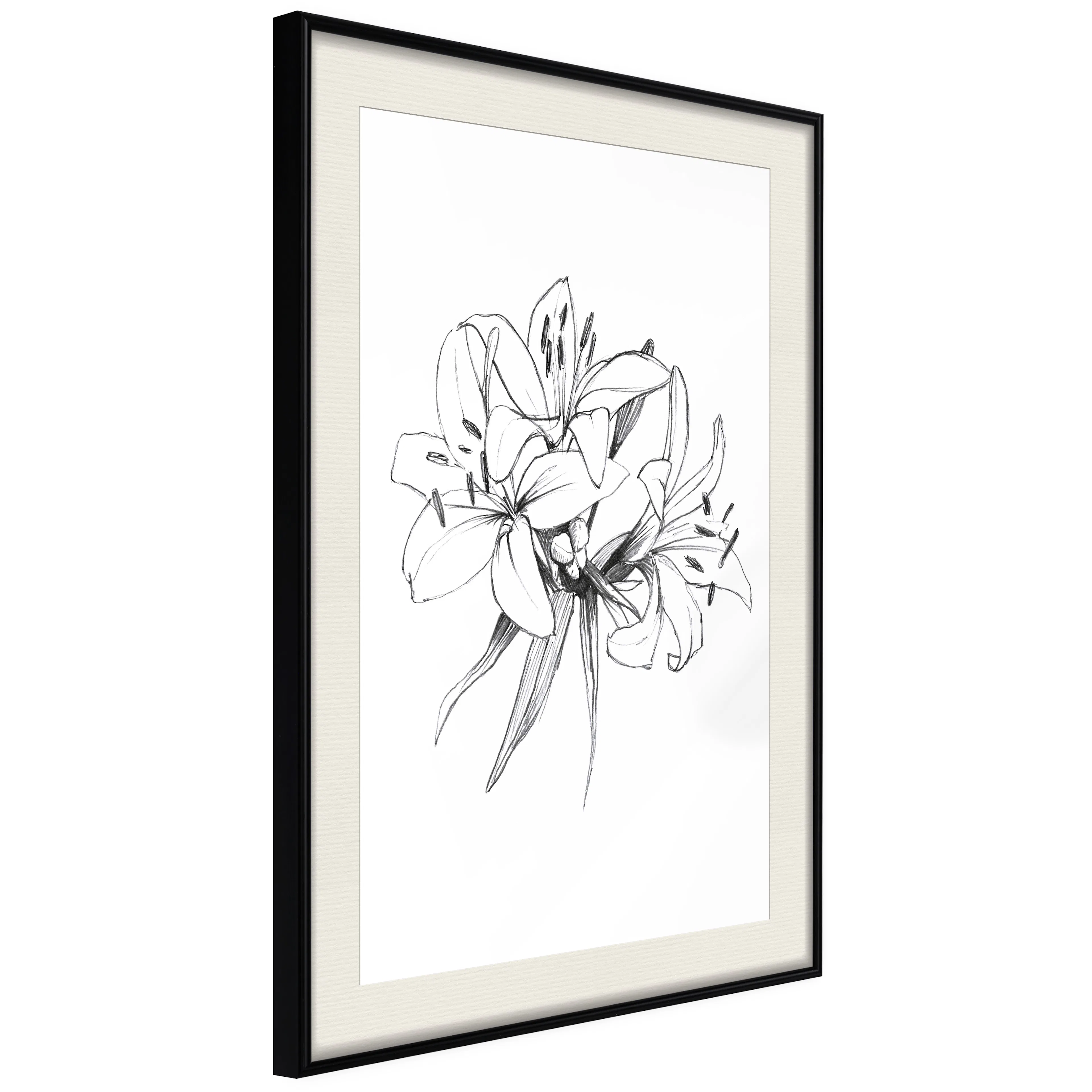 Passepartouten i écru betonar färgern på affischen och skapar en extra kontrast mellan grafiken, ramen och väggen. Dessutom ger den ramen ett svagt tredimensionellt intryck och fungerar även som ett skyddslager som ytterligare skyddar afischen. Affischen är säkrad med akrylglas och en hänganordning finns på ramens baksida.