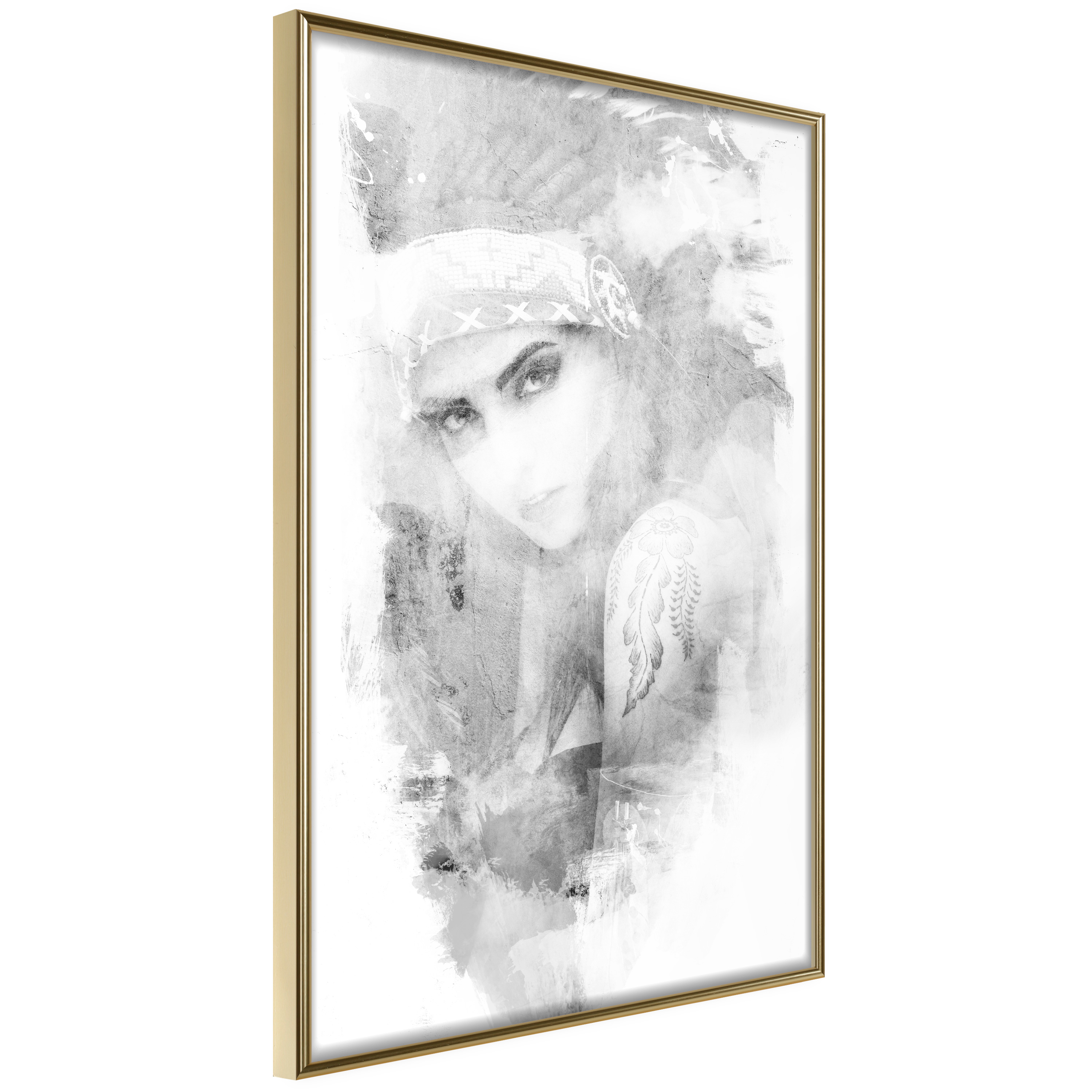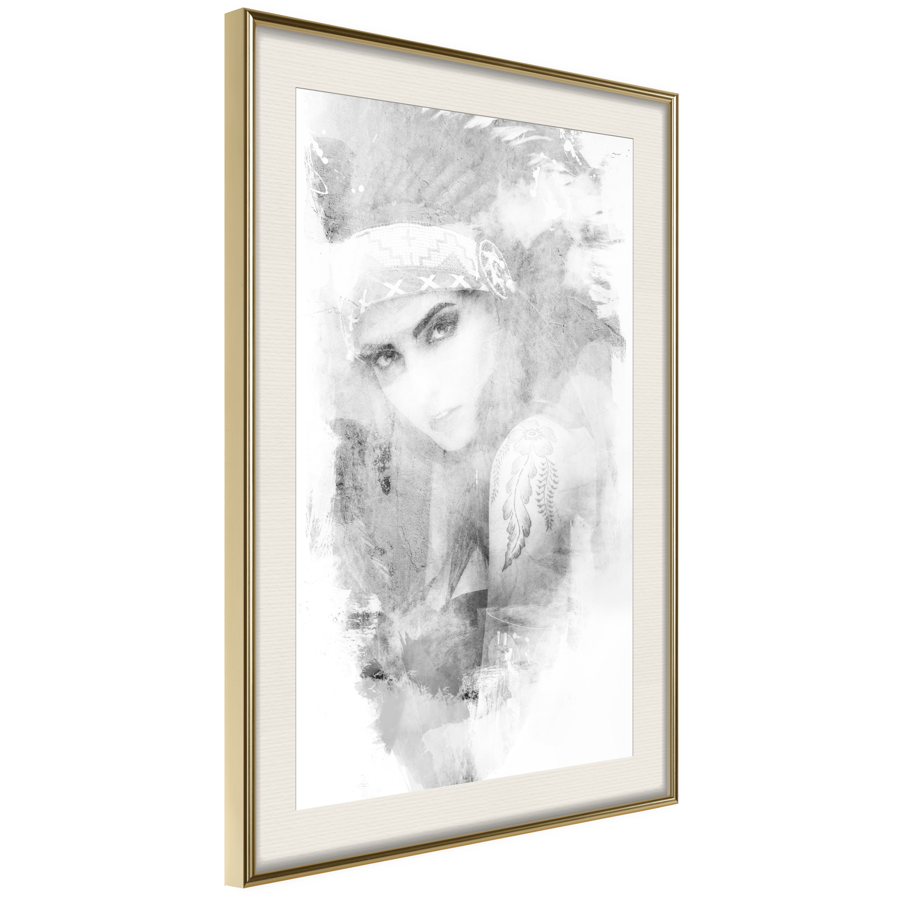 Poster ArtgeistAffisch Ethnic Look Svart/VitGuld ram med passepartout, 20x30 cm