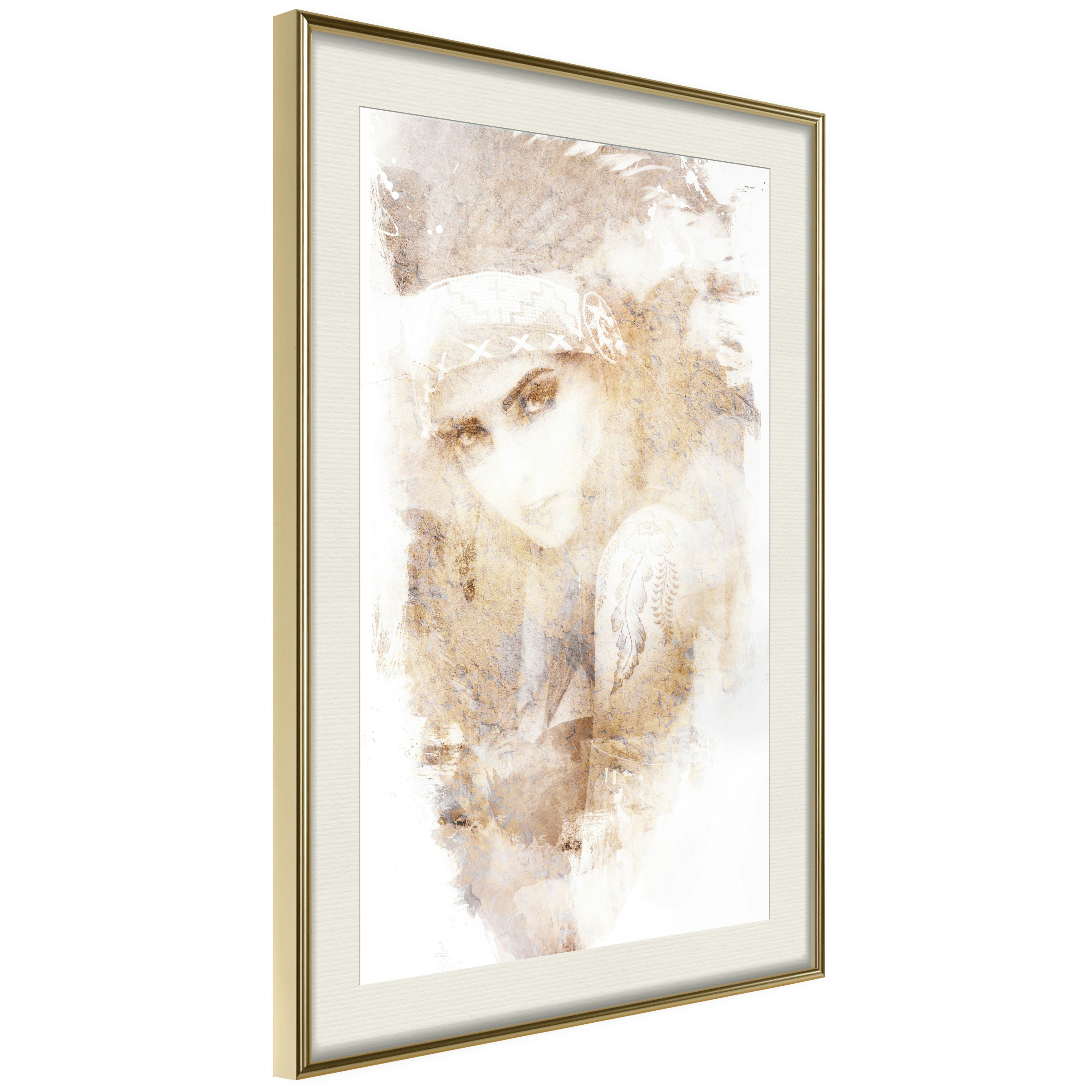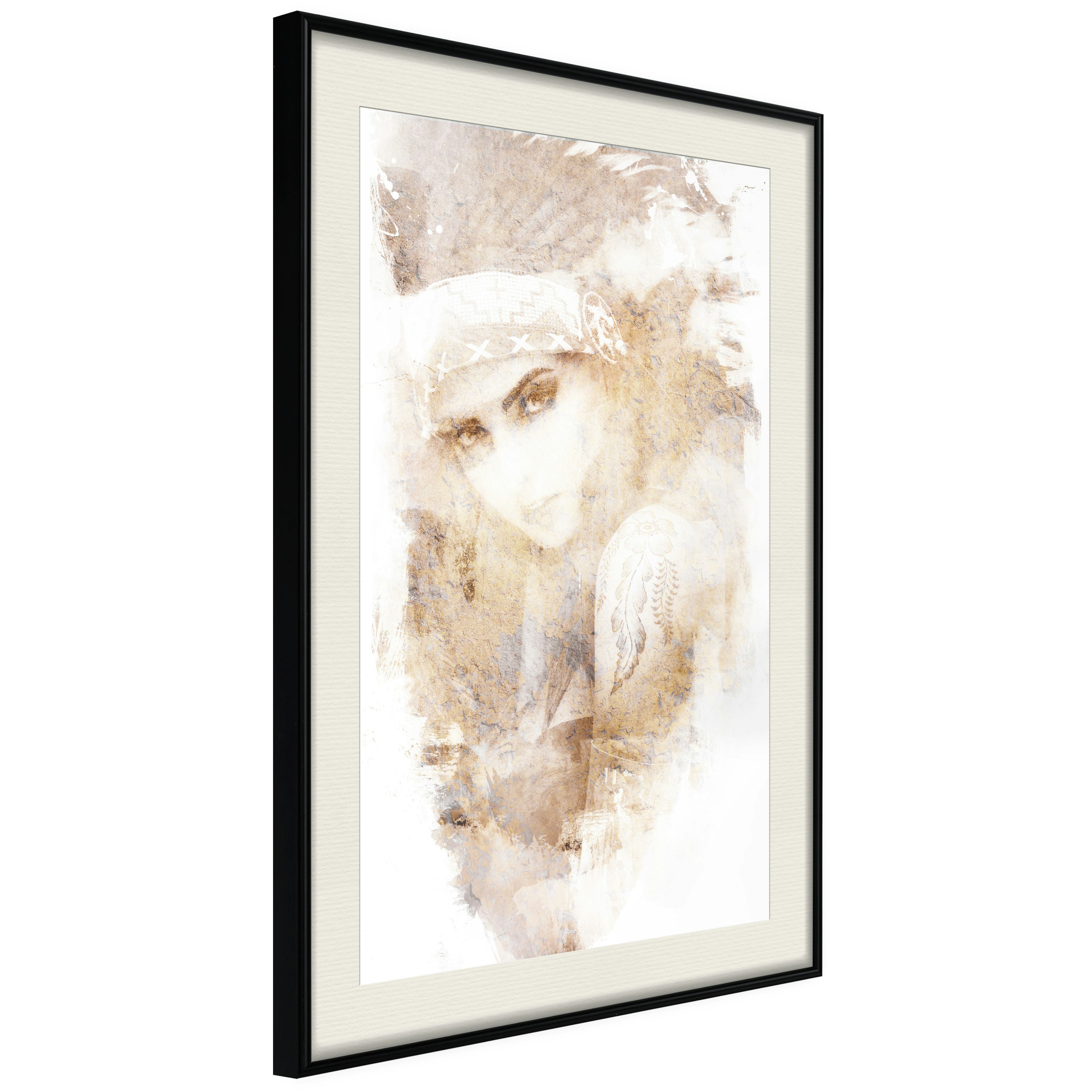 Passepartouten i écru betonar färgern på affischen och skapar en extra kontrast mellan grafiken, ramen och väggen. Dessutom ger den ramen ett svagt tredimensionellt intryck och fungerar även som ett skyddslager som ytterligare skyddar afischen. Affischen är säkrad med akrylglas och en hänganordning finns på ramens baksida.