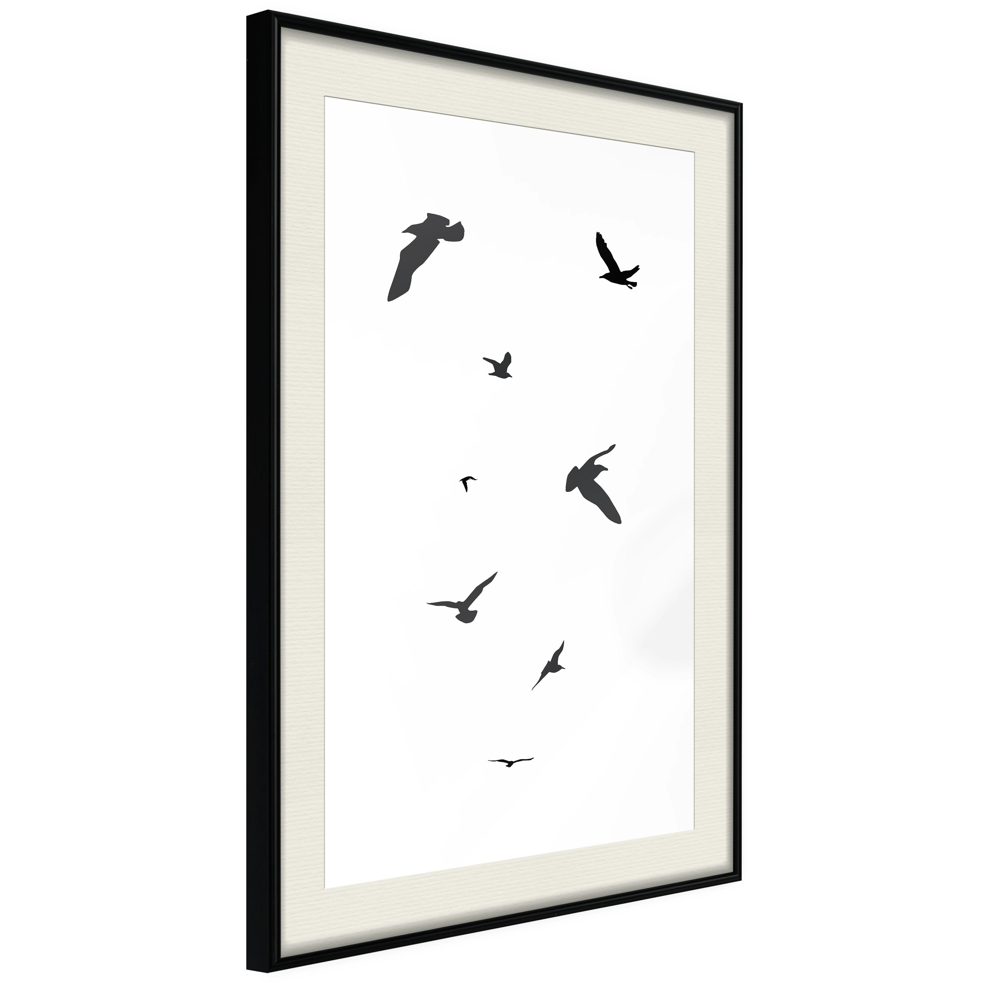 Passepartouten i écru betonar färgern på affischen och skapar en extra kontrast mellan grafiken, ramen och väggen. Dessutom ger den ramen ett svagt tredimensionellt intryck och fungerar även som ett skyddslager som ytterligare skyddar afischen. Affischen är säkrad med akrylglas och en hänganordning finns på ramens baksida.