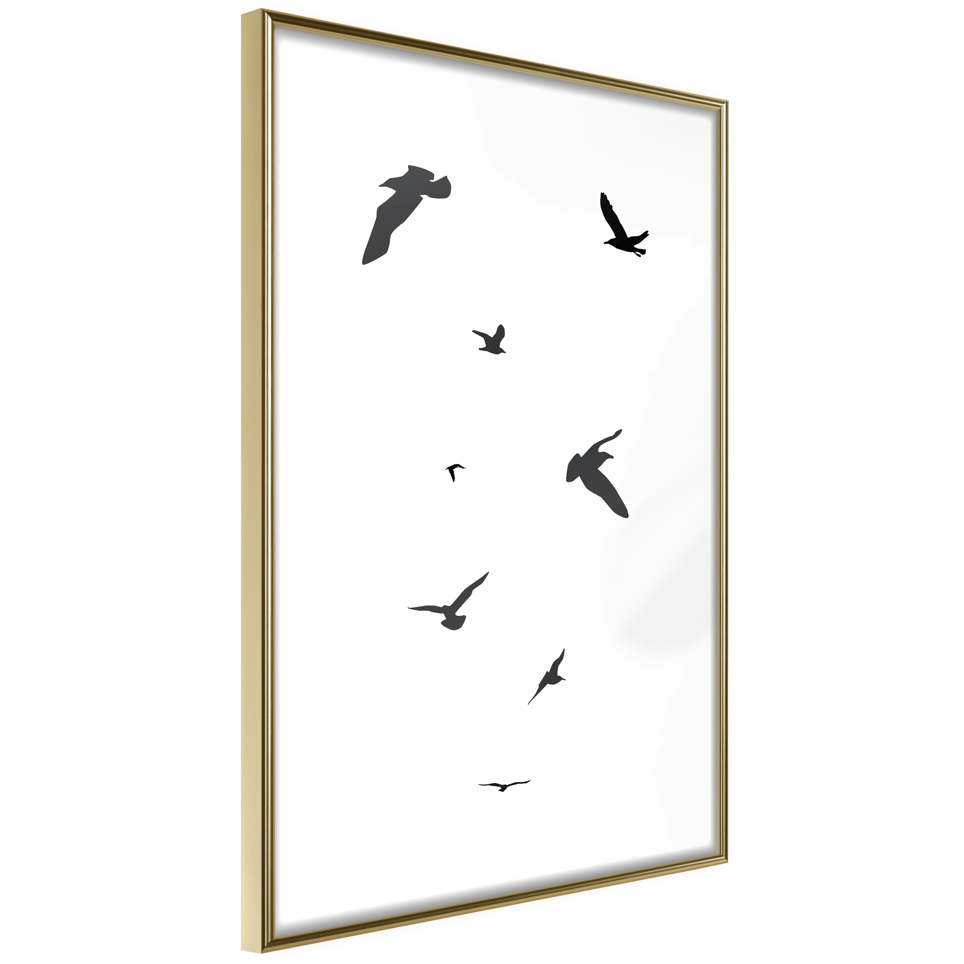 Affischen är inramad i en minimalistisk, lätt ram som gör den mer synlig mot väggen. Affischen är säkrad med akrylglas och en hänganordning finns på ramens baksida.