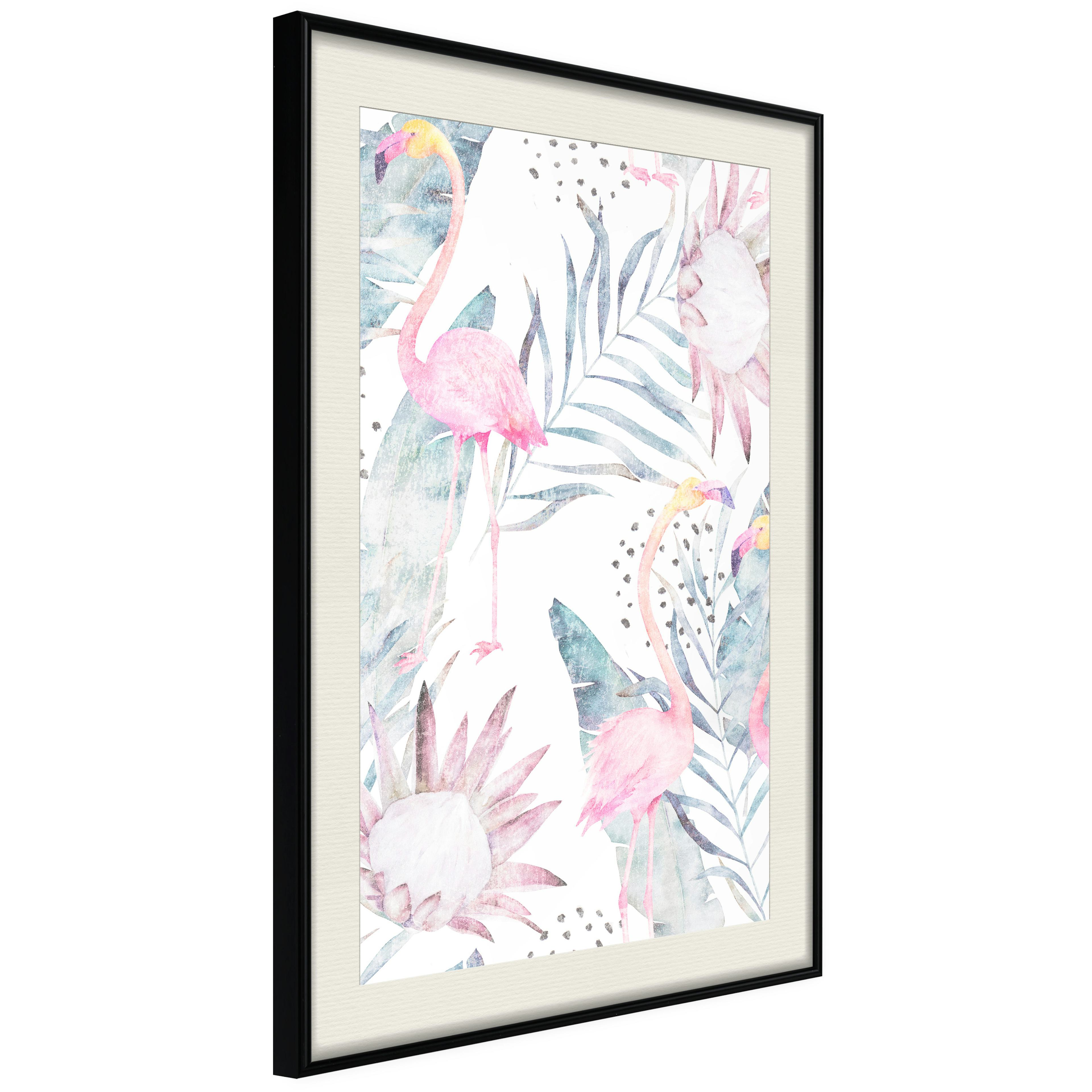 Passepartouten i écru betonar färgern på affischen och skapar en extra kontrast mellan grafiken, ramen och väggen. Dessutom ger den ramen ett svagt tredimensionellt intryck och fungerar även som ett skyddslager som ytterligare skyddar afischen. Affischen är säkrad med akrylglas och en hänganordning finns på ramens baksida.