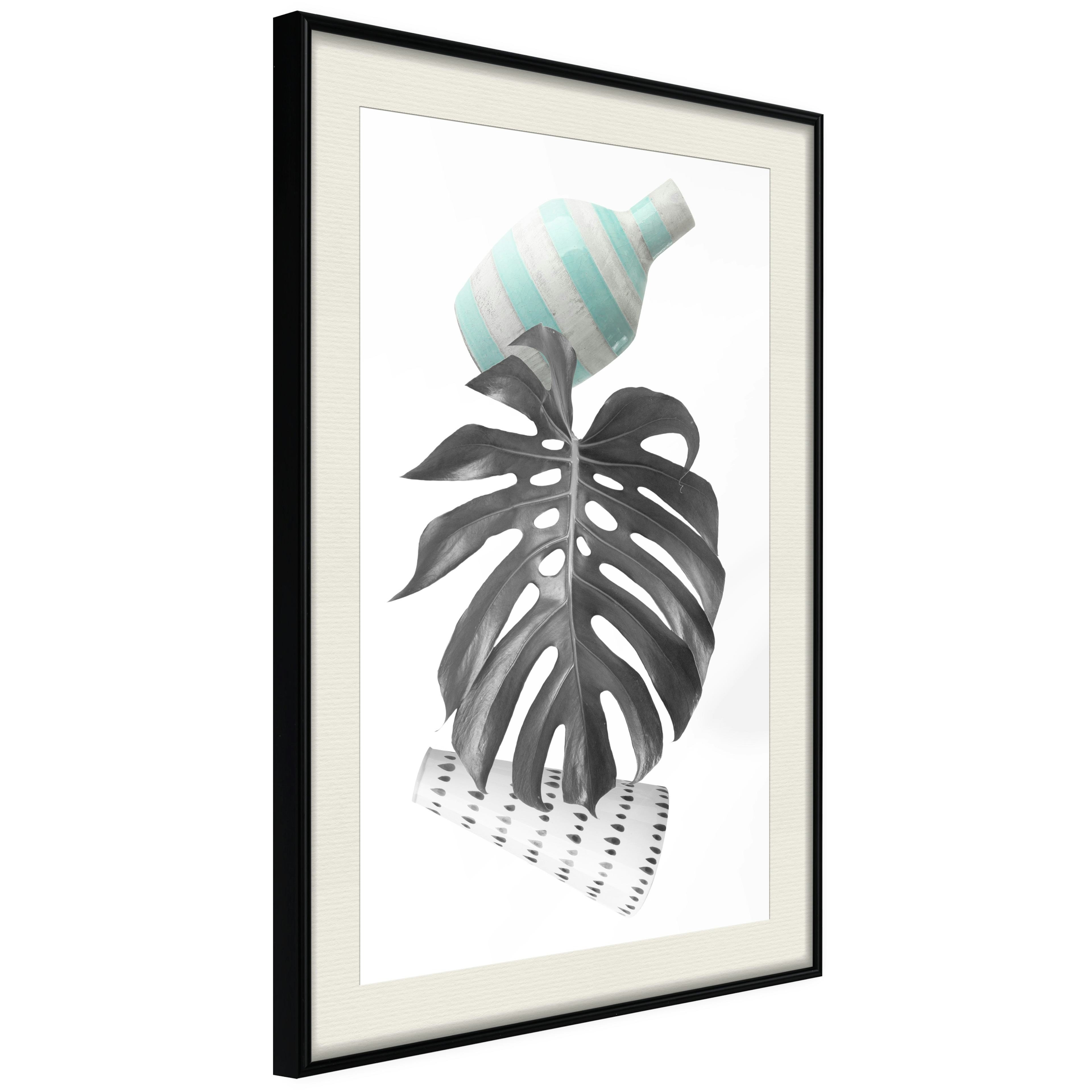 Passepartouten i écru betonar färgern på affischen och skapar en extra kontrast mellan grafiken, ramen och väggen. Dessutom ger den ramen ett svagt tredimensionellt intryck och fungerar även som ett skyddslager som ytterligare skyddar afischen. Affischen är säkrad med akrylglas och en hänganordning finns på ramens baksida.