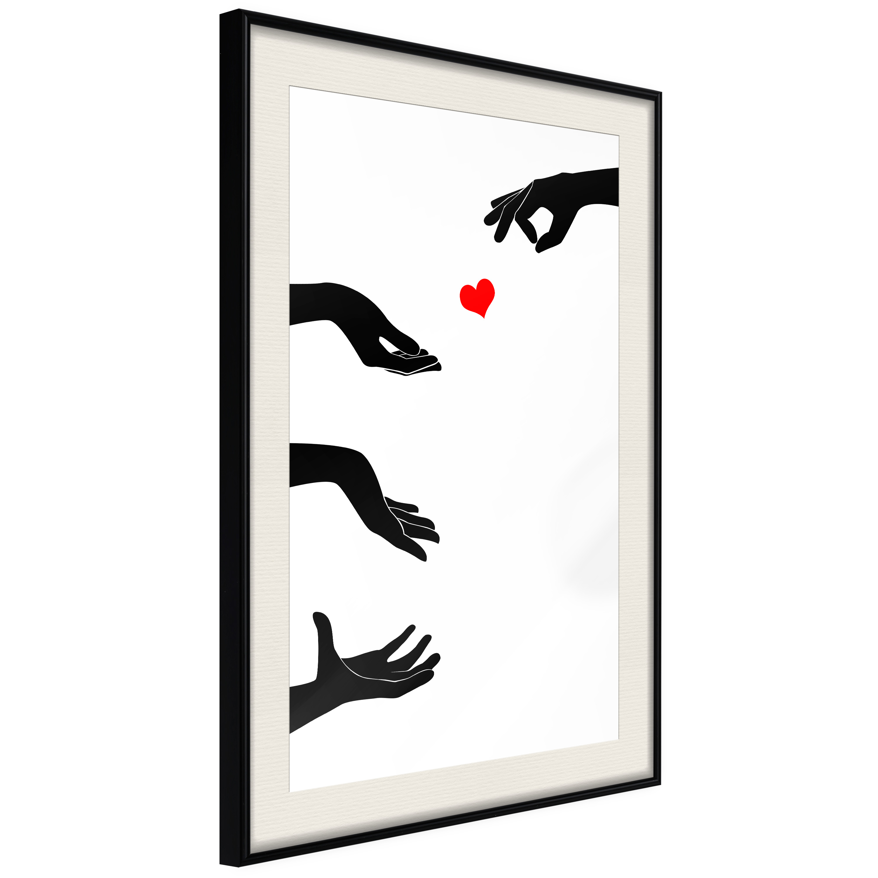 Passepartouten i écru betonar färgern på affischen och skapar en extra kontrast mellan grafiken, ramen och väggen. Dessutom ger den ramen ett svagt tredimensionellt intryck och fungerar även som ett skyddslager som ytterligare skyddar afischen. Affischen är säkrad med akrylglas och en hänganordning finns på ramens baksida.
