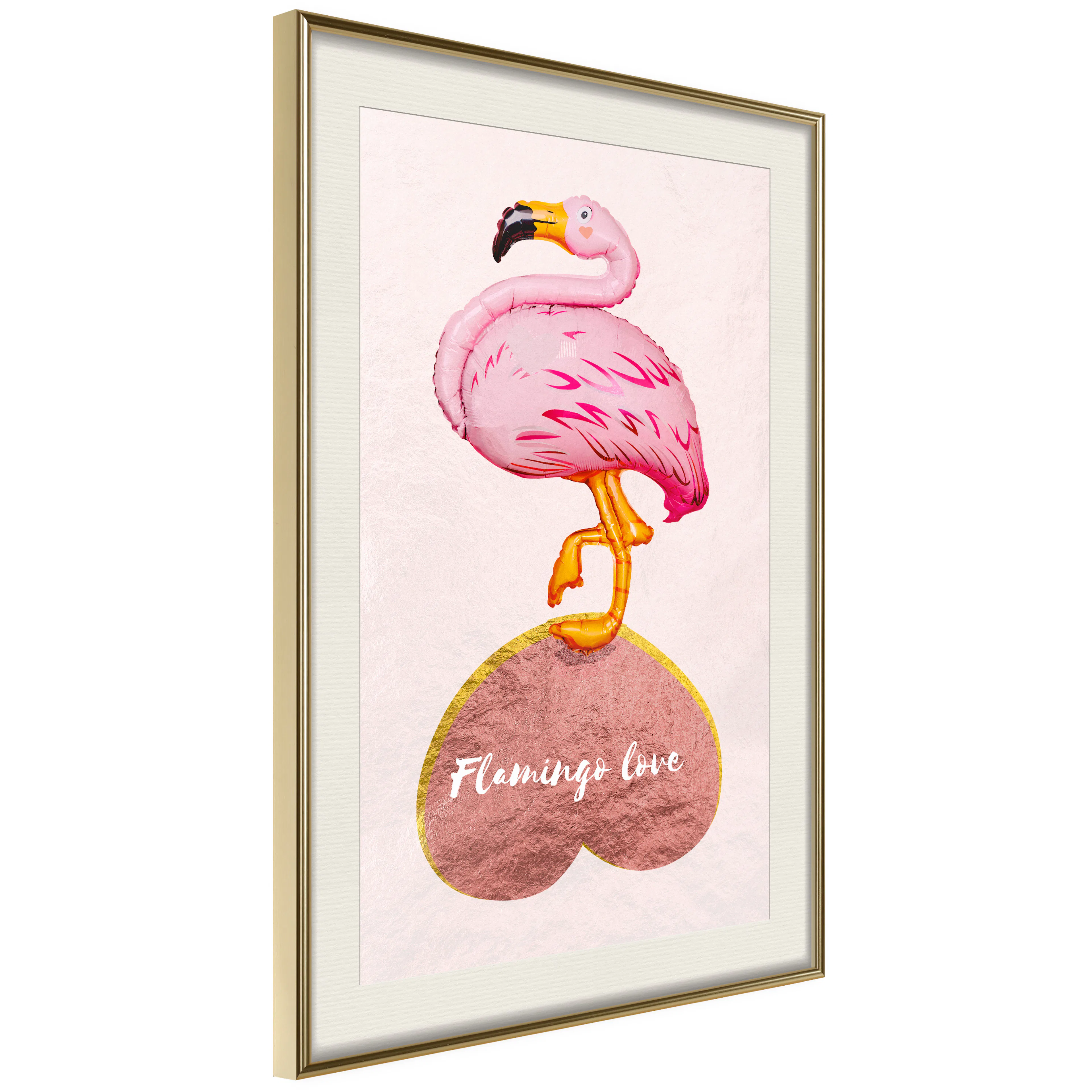 Poster Artgeist Affisch Flamingo in LoveGuld ram, 20x30 cm