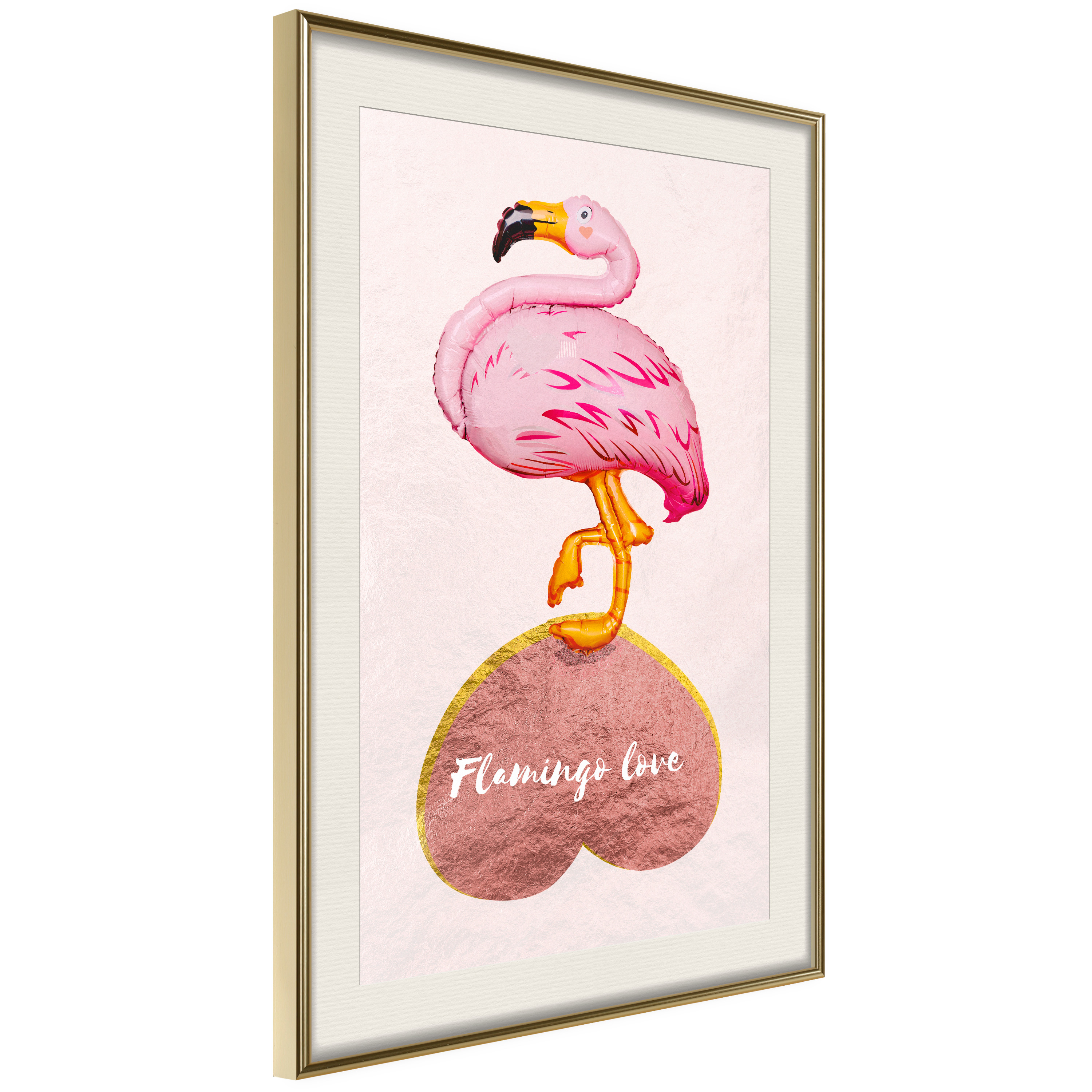 Poster ArtgeistAffisch Flamingo in LoveGuld ram, 20x30 cm