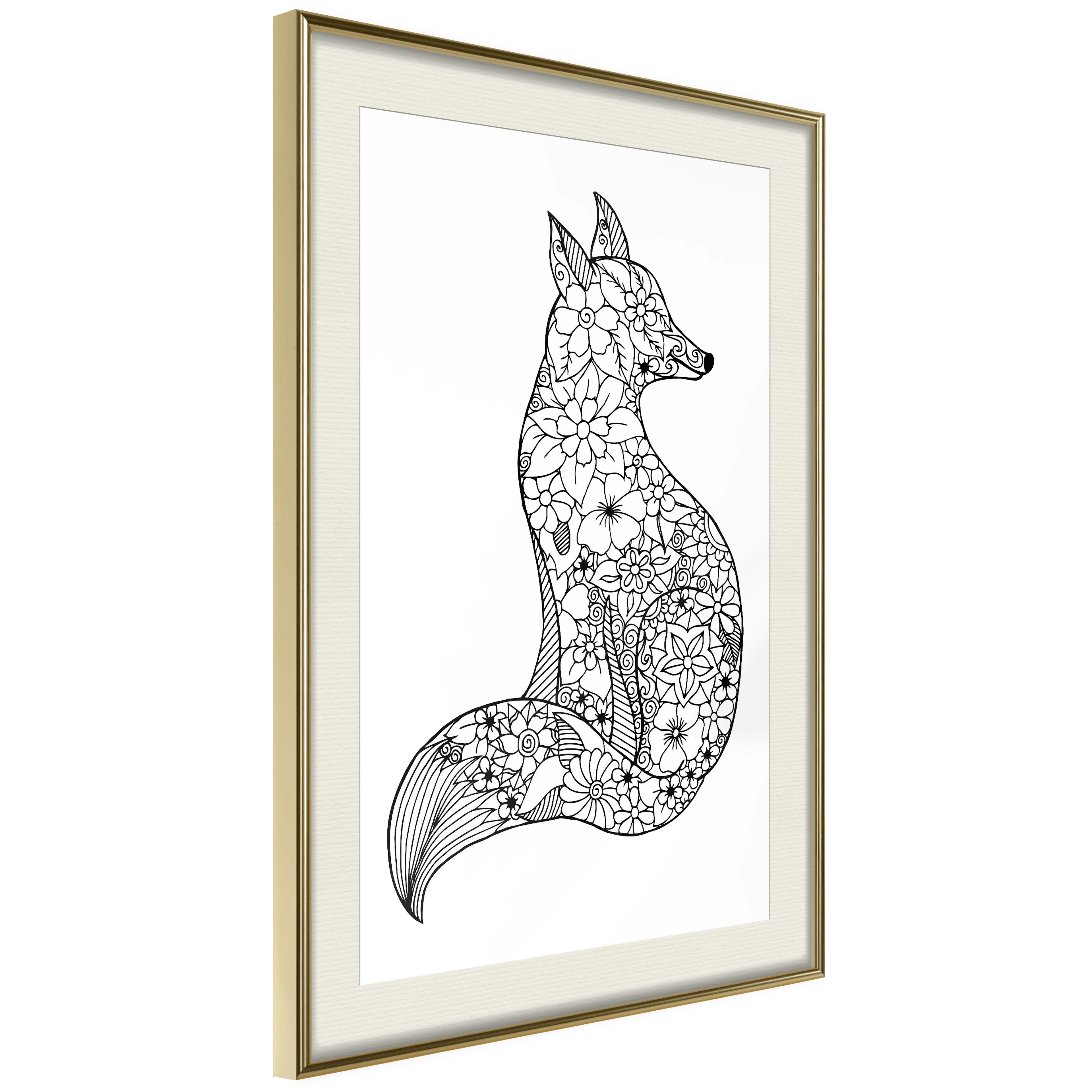 Poster Artgeist Affisch Flower FoxGuld ram, 40x60 cm
