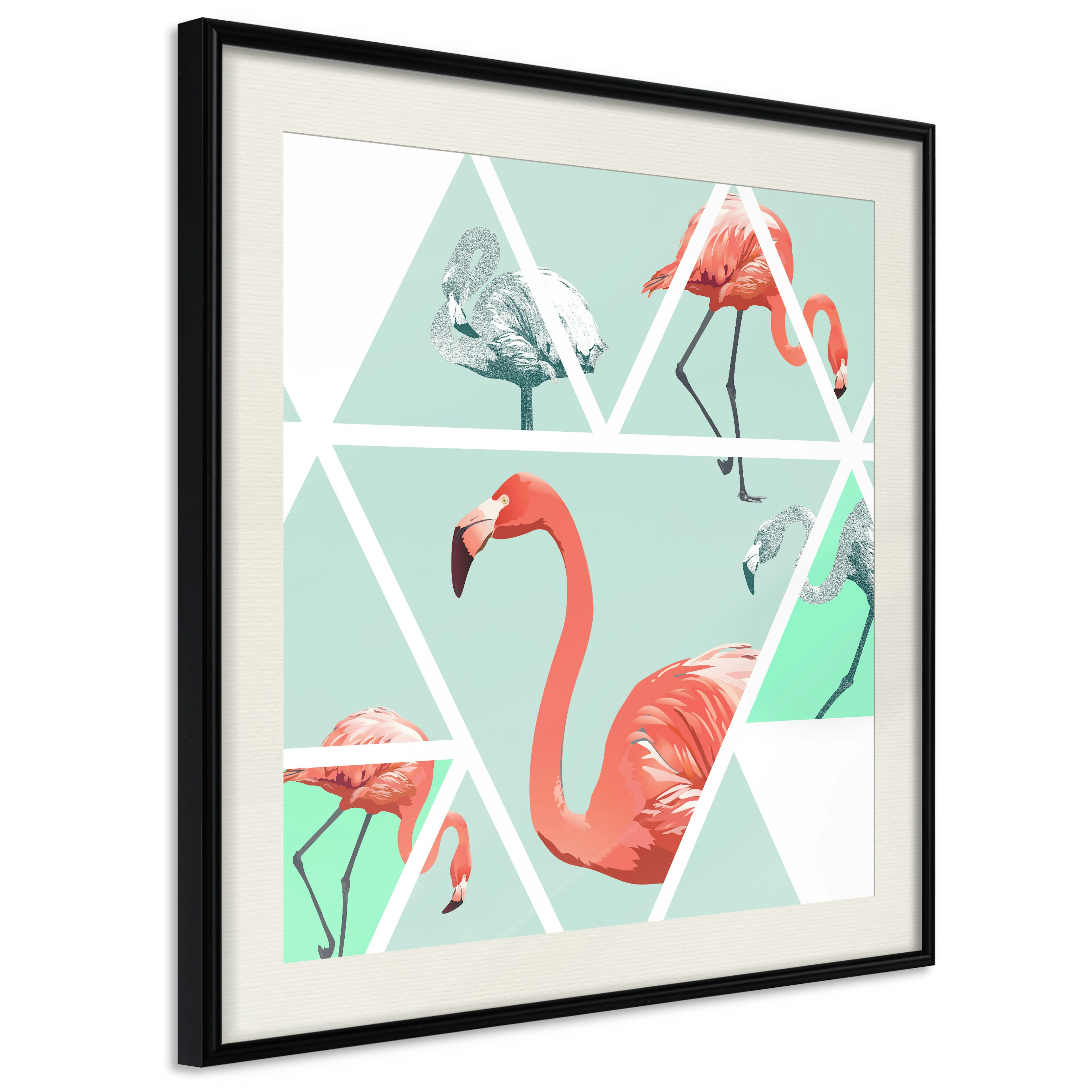 Passepartouten i écru betonar färgern på affischen och skapar en extra kontrast mellan grafiken, ramen och väggen. Dessutom ger den ramen ett svagt tredimensionellt intryck och fungerar även som ett skyddslager som ytterligare skyddar afischen. Affischen är säkrad med akrylglas och en hänganordning finns på ramens baksida.