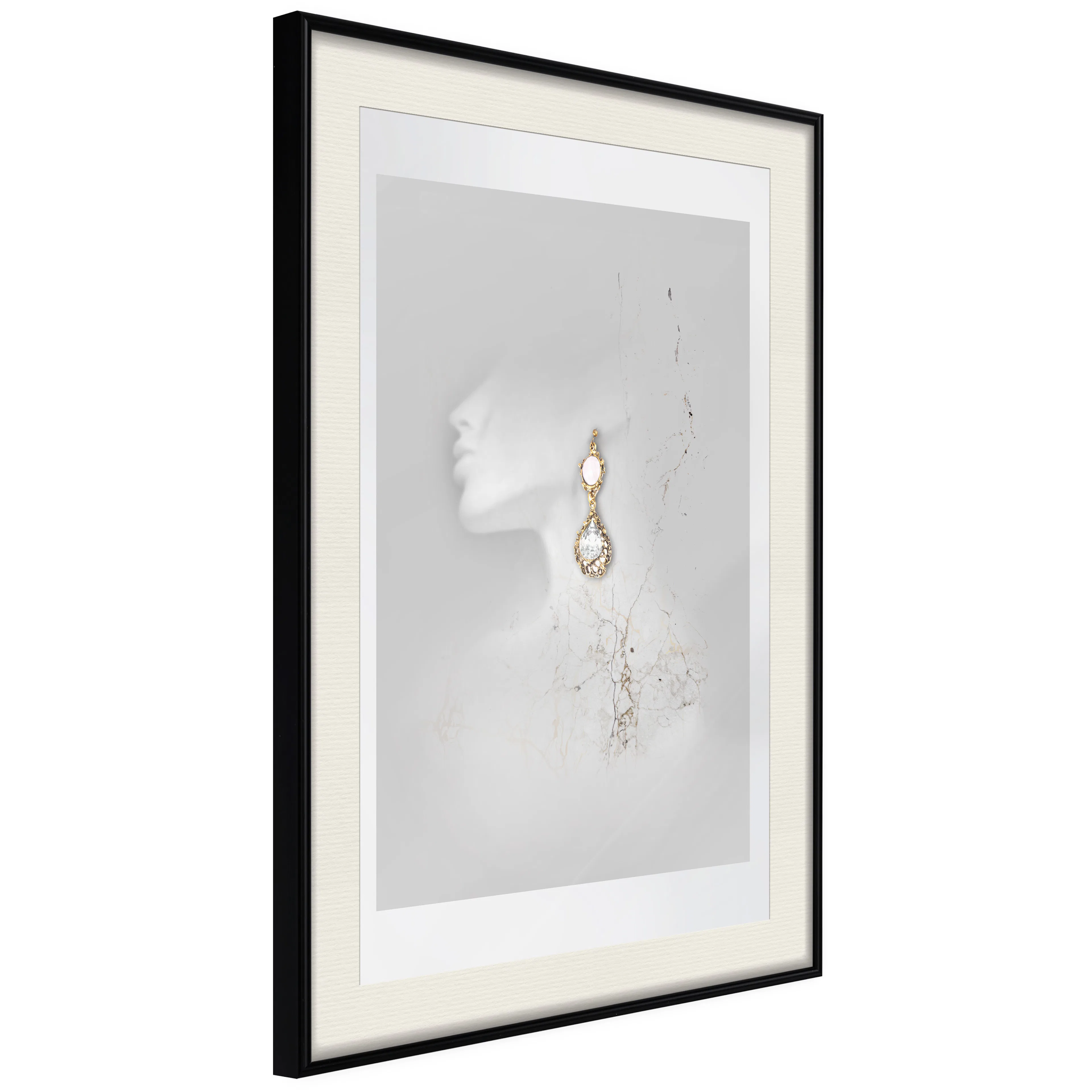 Poster Artgeist Affisch Gold EarringsSvart ram, 40x60 cm