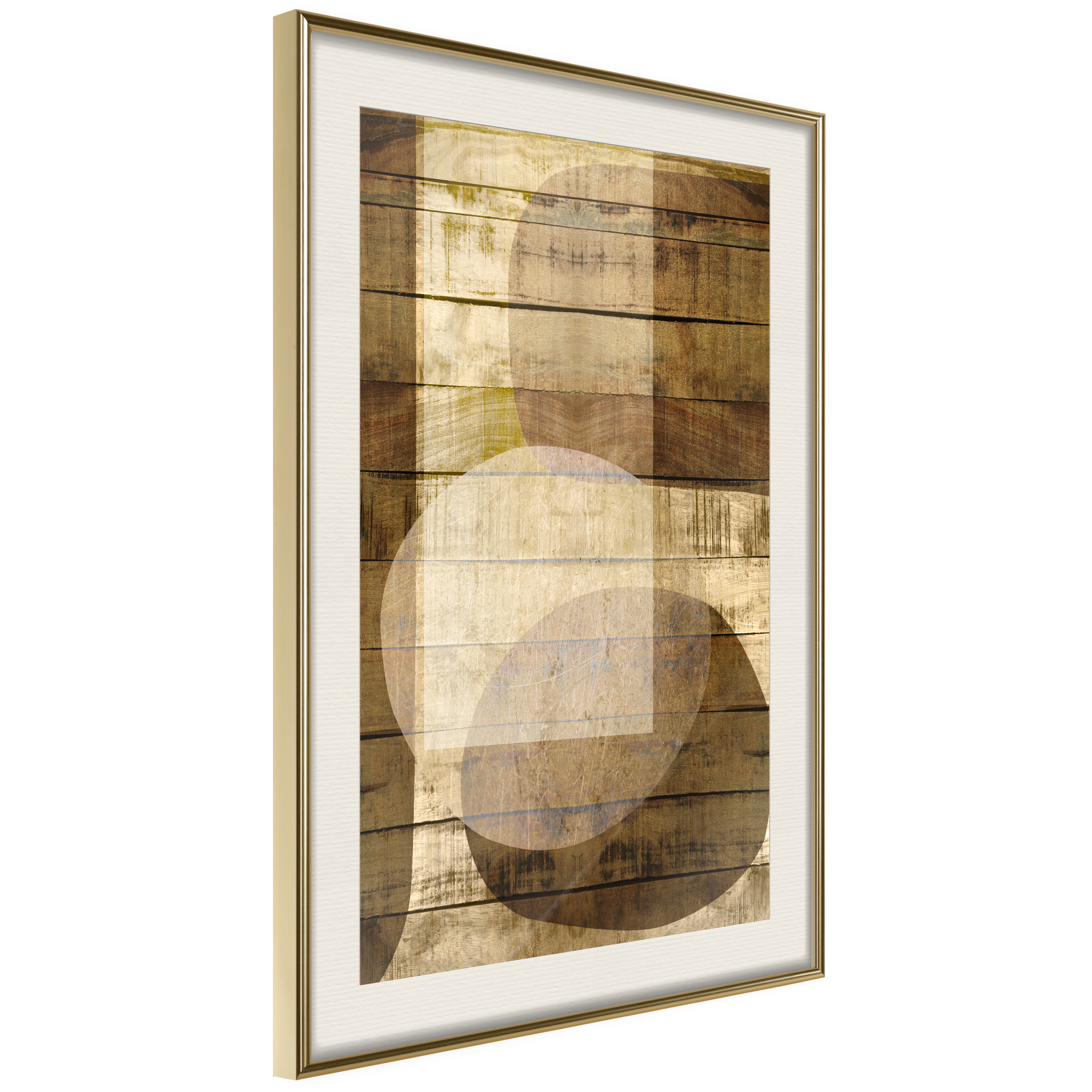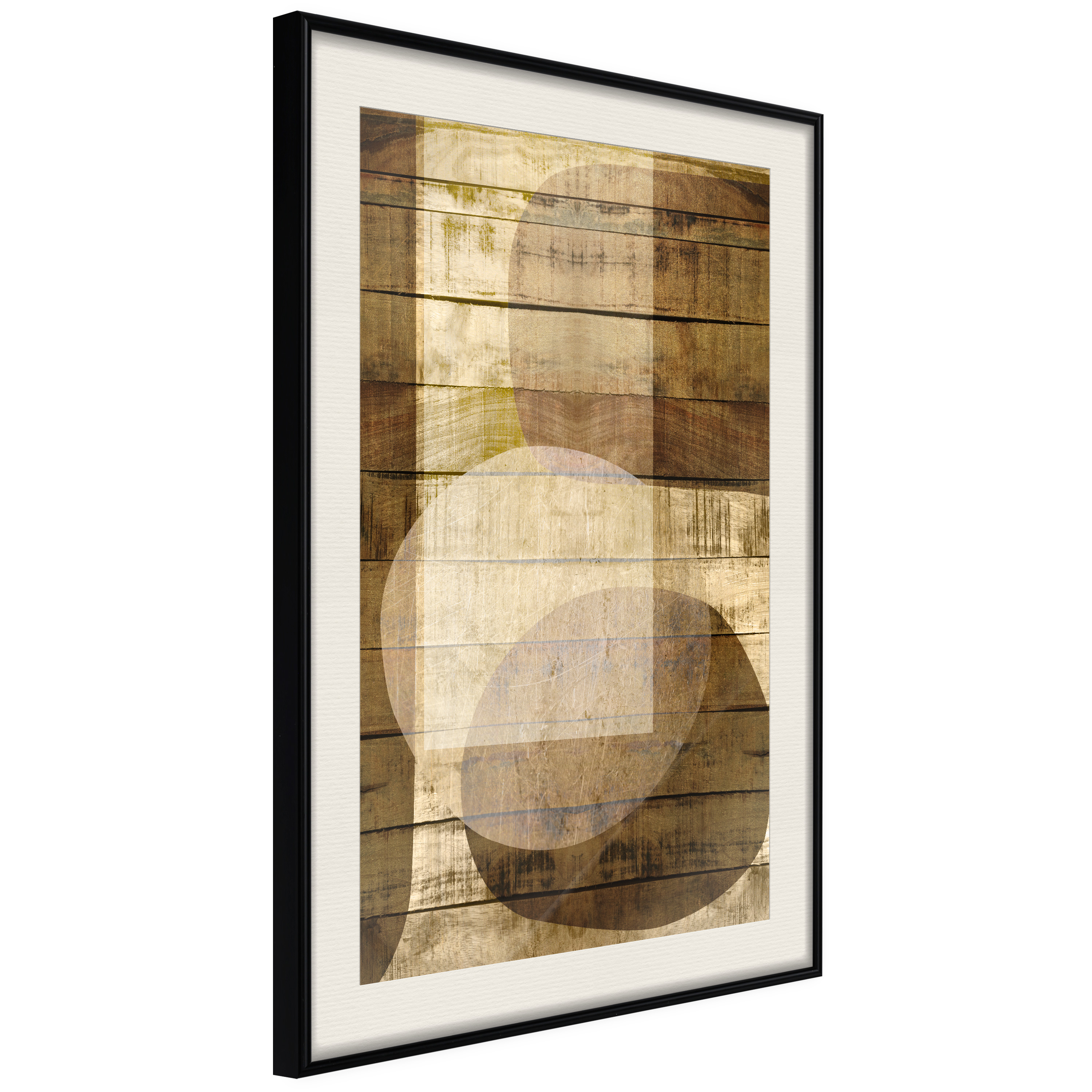 Passepartouten i écru betonar färgern på affischen och skapar en extra kontrast mellan grafiken, ramen och väggen. Dessutom ger den ramen ett svagt tredimensionellt intryck och fungerar även som ett skyddslager som ytterligare skyddar afischen. Affischen är säkrad med akrylglas och en hänganordning finns på ramens baksida.