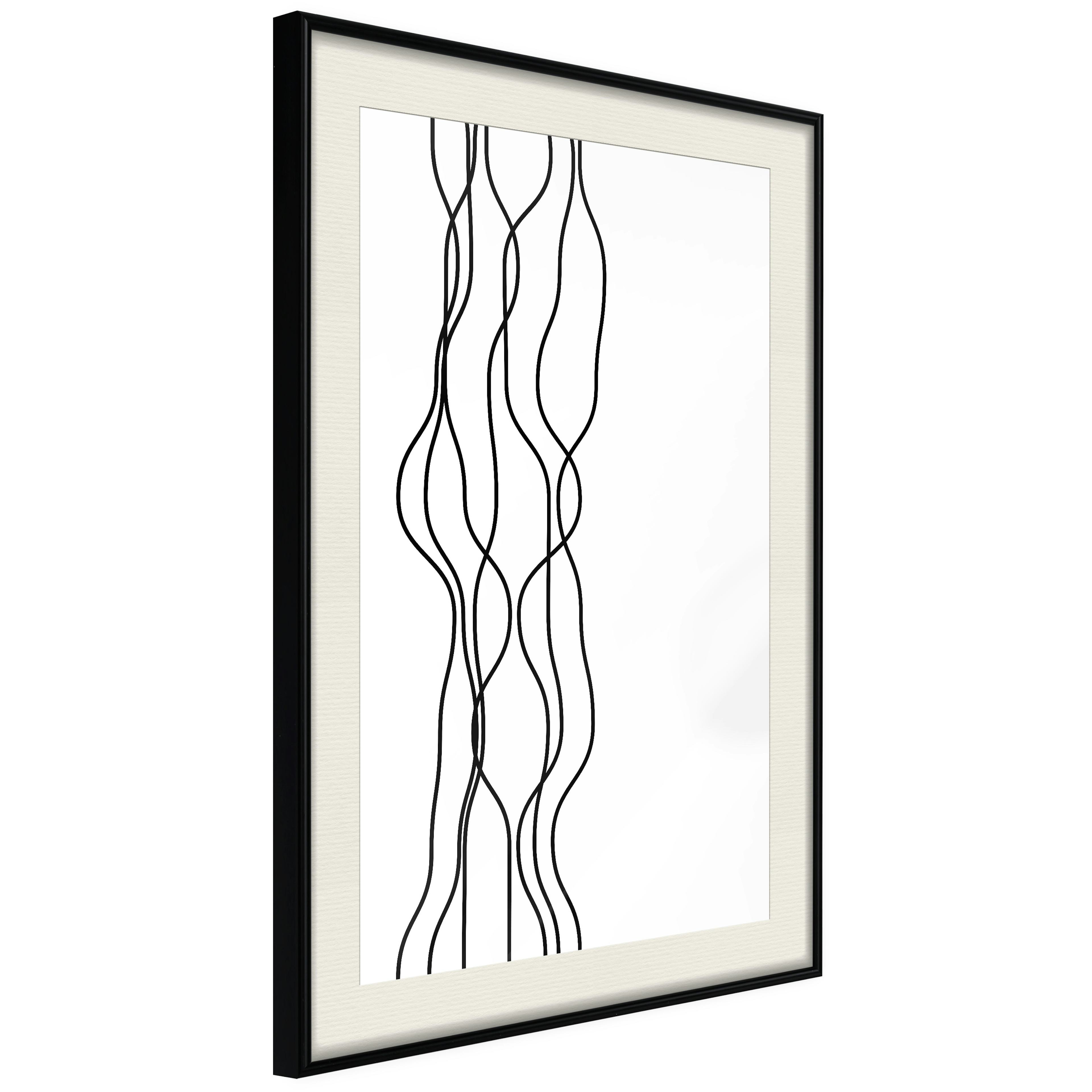 Passepartouten i écru betonar färgern på affischen och skapar en extra kontrast mellan grafiken, ramen och väggen. Dessutom ger den ramen ett svagt tredimensionellt intryck och fungerar även som ett skyddslager som ytterligare skyddar afischen. Affischen är säkrad med akrylglas och en hänganordning finns på ramens baksida.