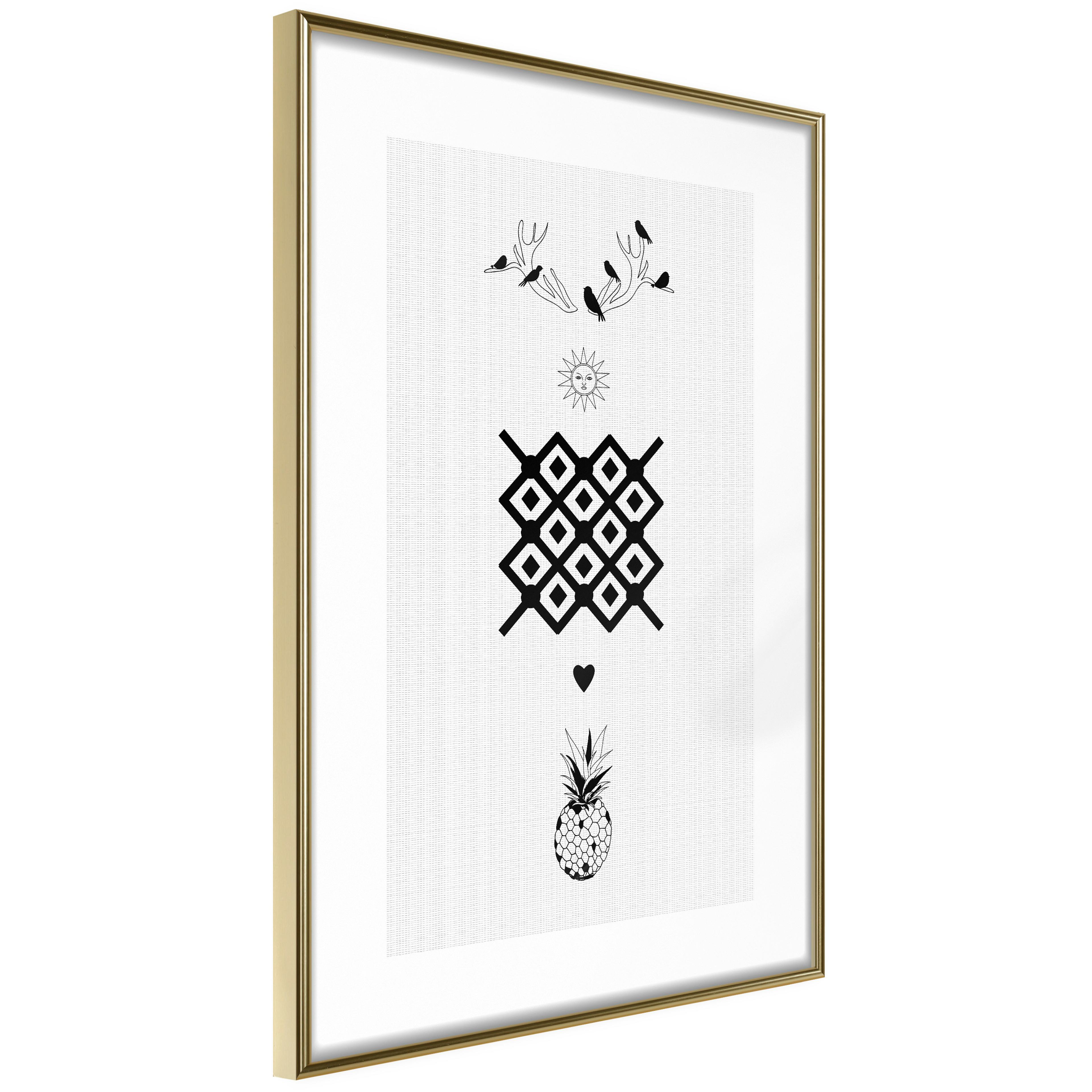 Poster ArtgeistAffisch HappinessGuld ram, 40x60 cm