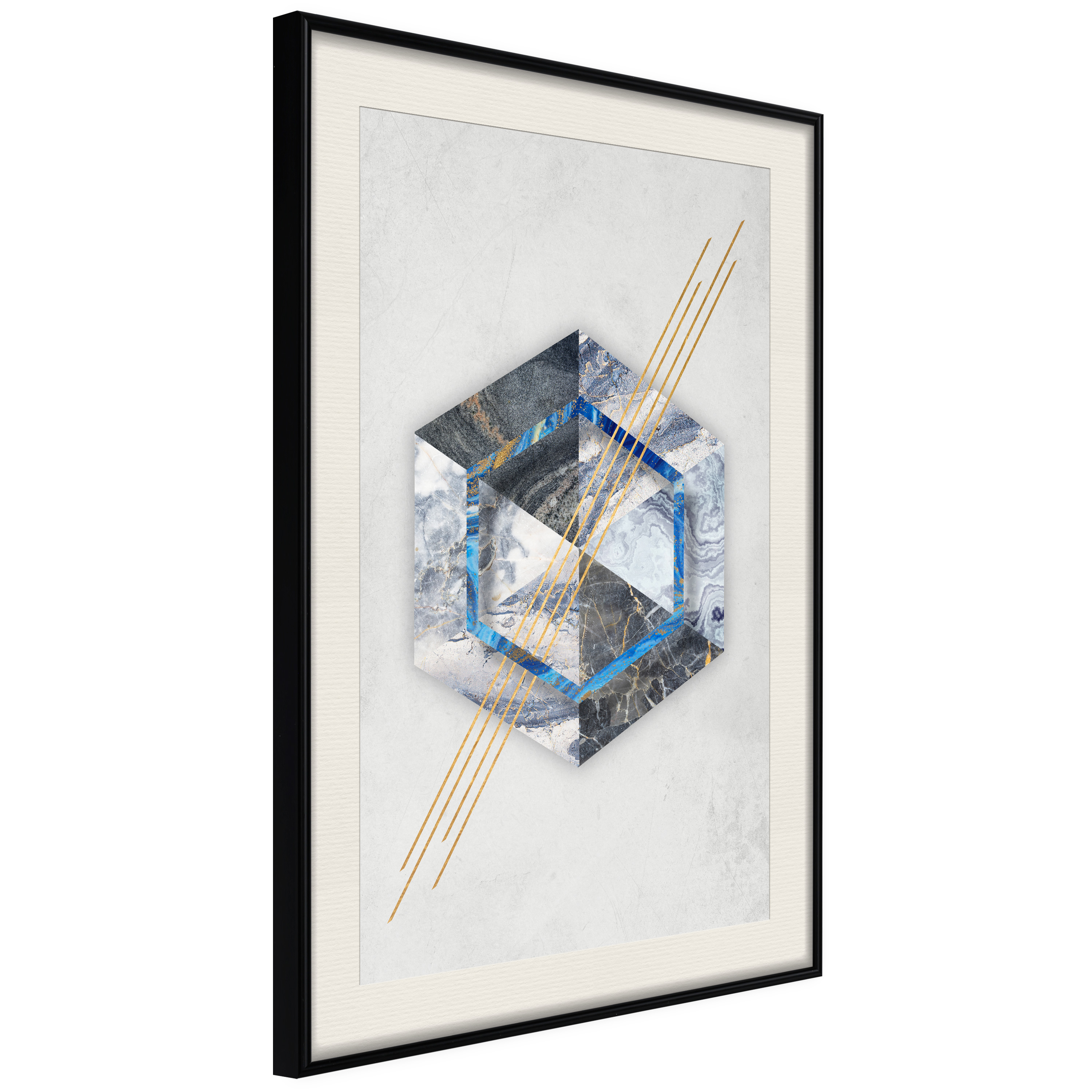 Passepartouten i écru betonar färgern på affischen och skapar en extra kontrast mellan grafiken, ramen och väggen. Dessutom ger den ramen ett svagt tredimensionellt intryck och fungerar även som ett skyddslager som ytterligare skyddar afischen. Affischen är säkrad med akrylglas och en hänganordning finns på ramens baksida.