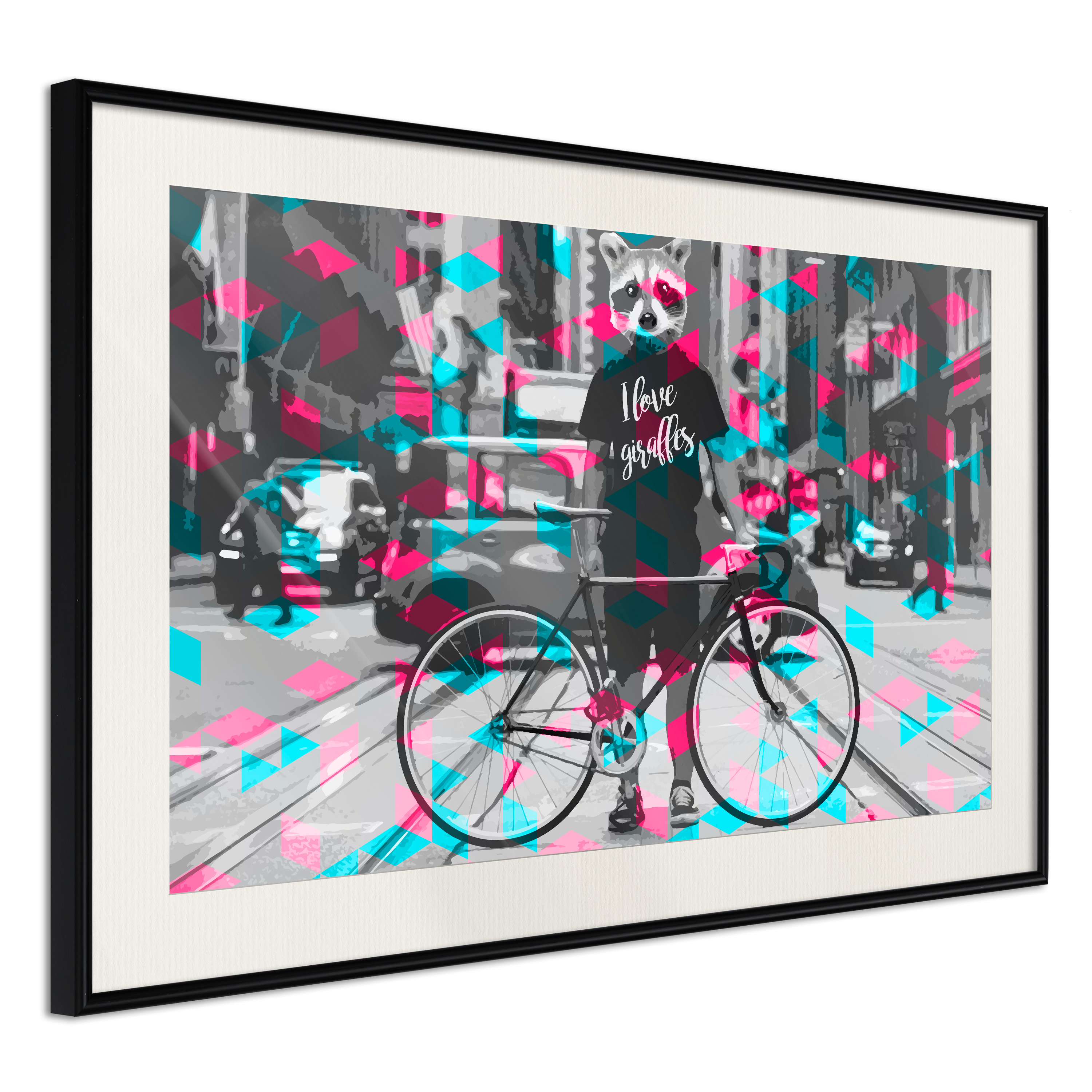 Passepartouten i écru betonar färgern på affischen och skapar en extra kontrast mellan grafiken, ramen och väggen. Dessutom ger den ramen ett svagt tredimensionellt intryck och fungerar även som ett skyddslager som ytterligare skyddar afischen. Affischen är säkrad med akrylglas och en hänganordning finns på ramens baksida.