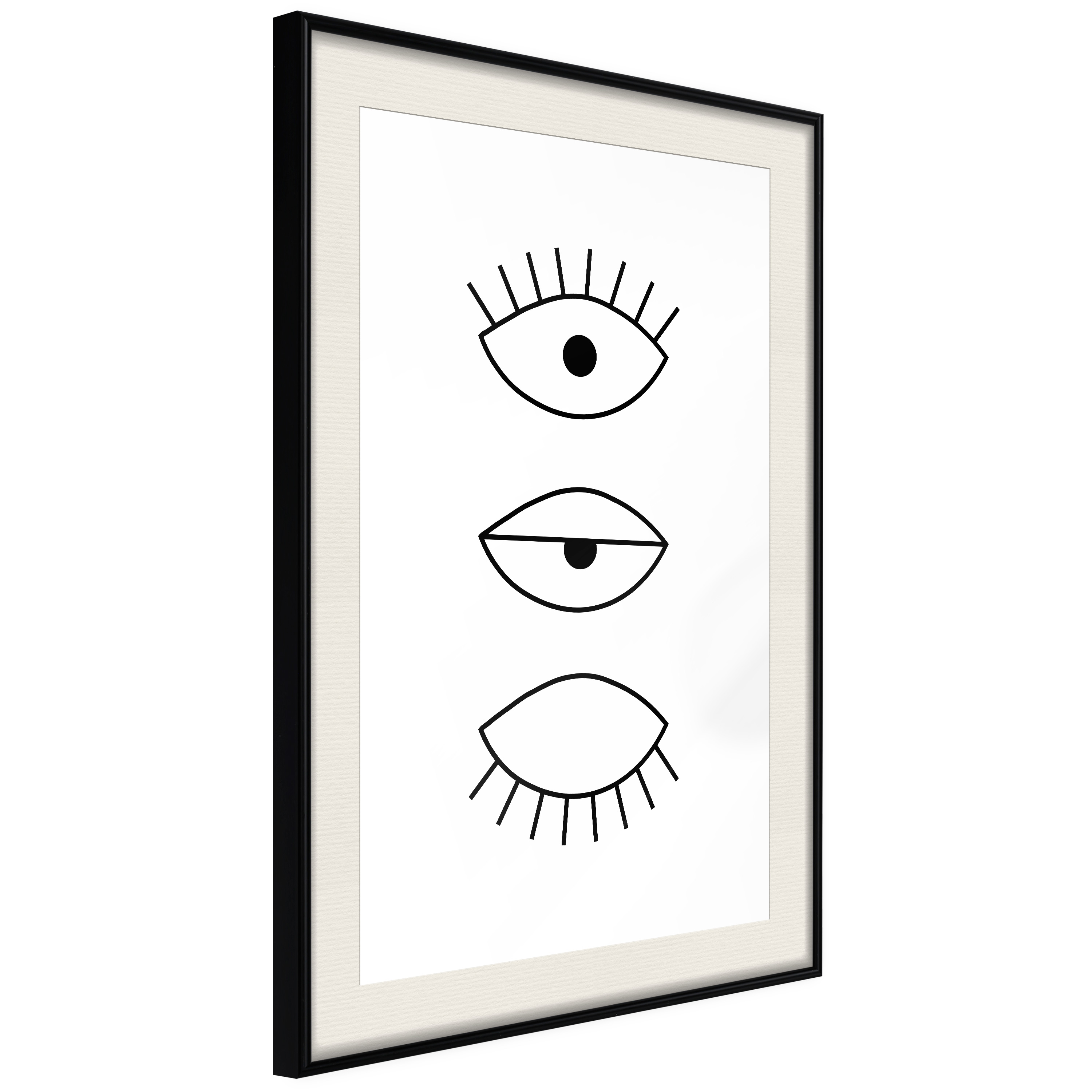 Passepartouten i écru betonar färgern på affischen och skapar en extra kontrast mellan grafiken, ramen och väggen. Dessutom ger den ramen ett svagt tredimensionellt intryck och fungerar även som ett skyddslager som ytterligare skyddar afischen. Affischen är säkrad med akrylglas och en hänganordning finns på ramens baksida.