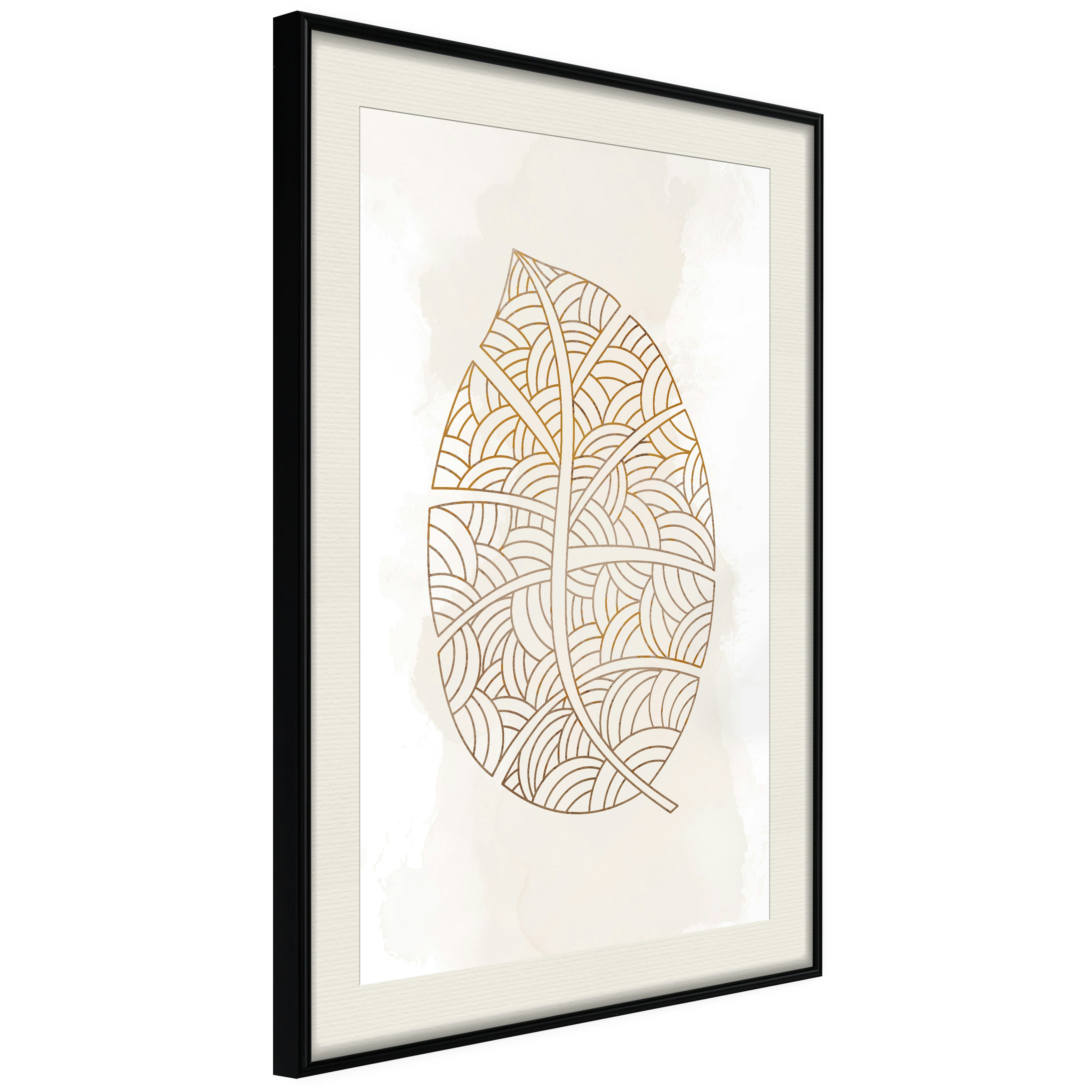 Passepartouten i écru betonar färgern på affischen och skapar en extra kontrast mellan grafiken, ramen och väggen. Dessutom ger den ramen ett svagt tredimensionellt intryck och fungerar även som ett skyddslager som ytterligare skyddar afischen. Affischen är säkrad med akrylglas och en hänganordning finns på ramens baksida.