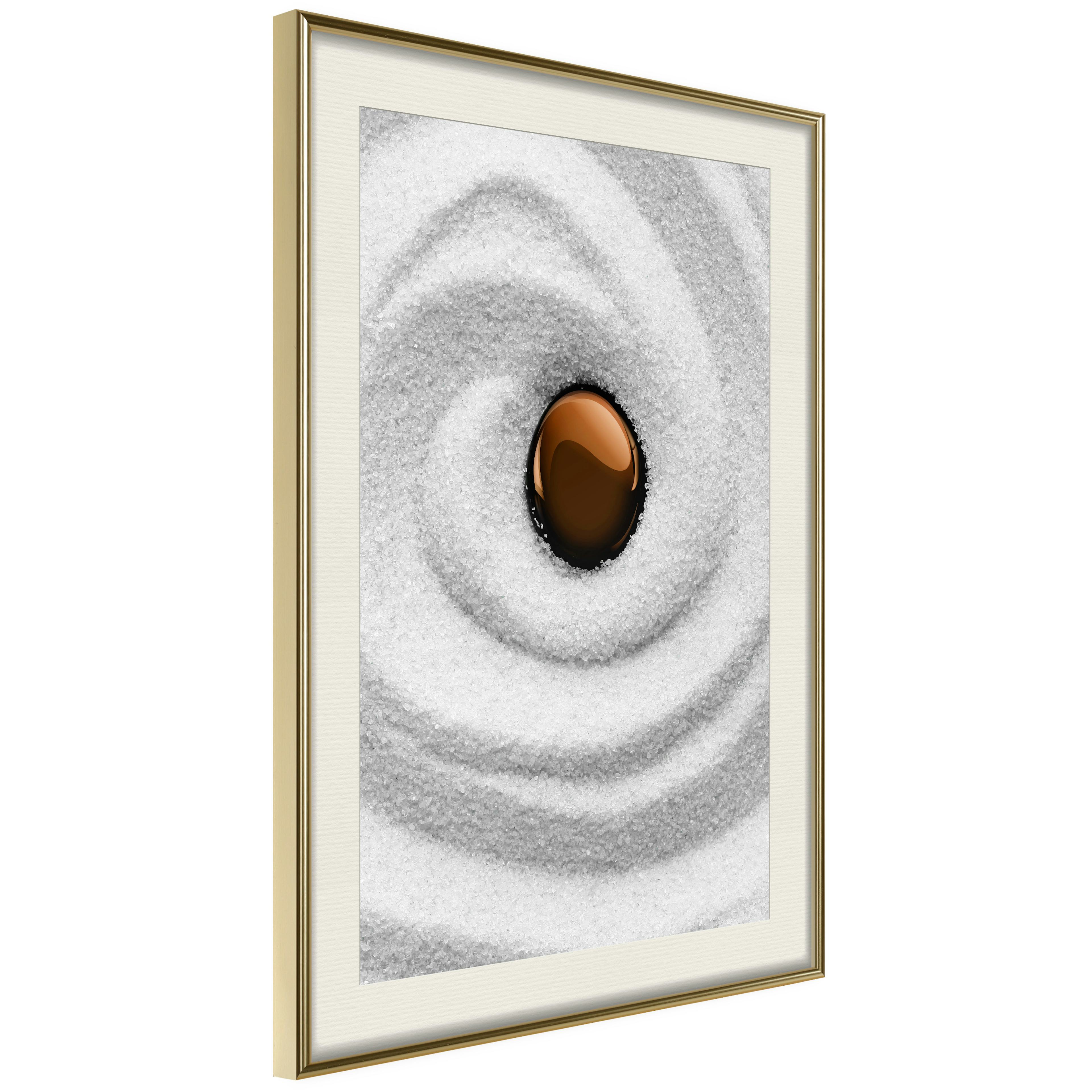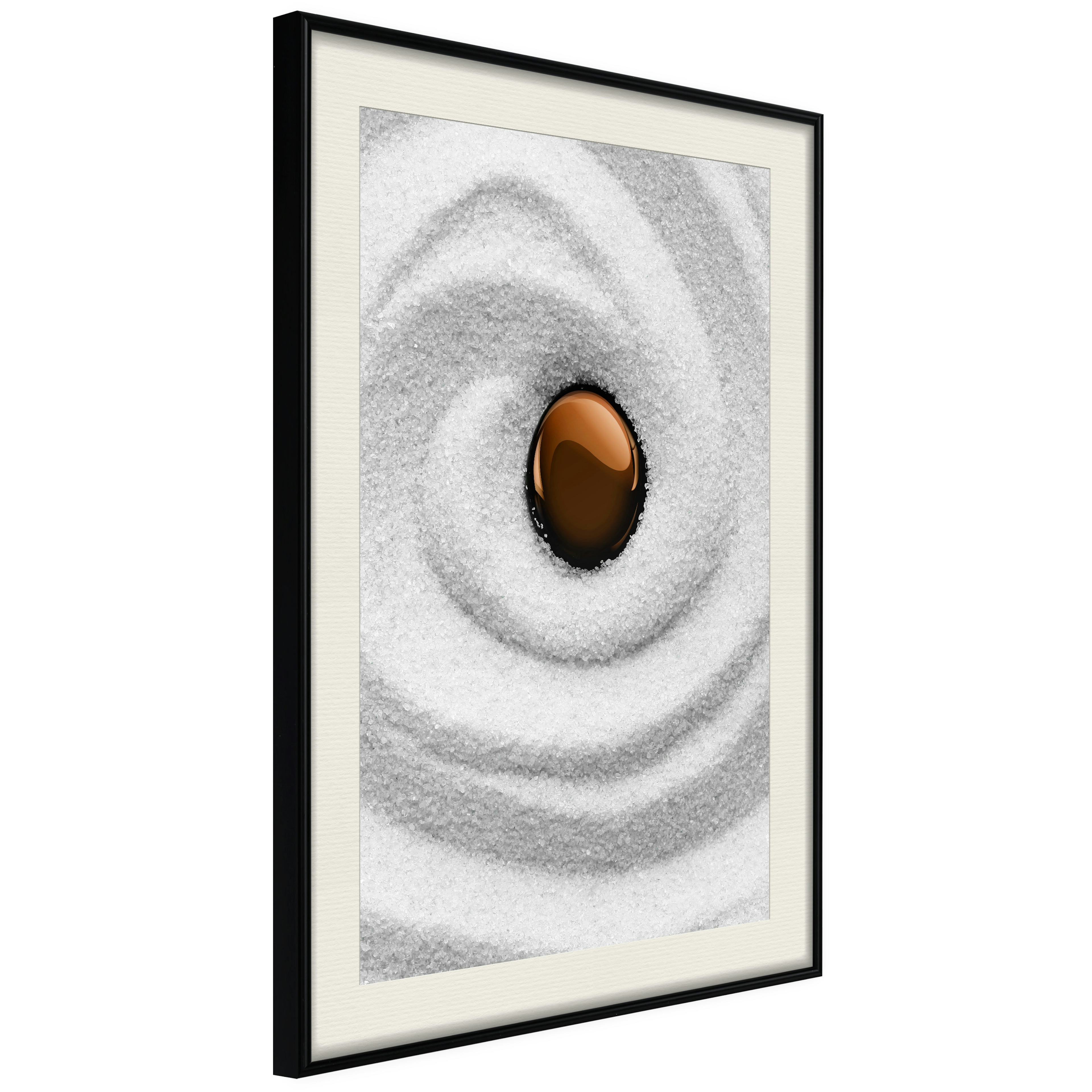 Passepartouten i écru betonar färgern på affischen och skapar en extra kontrast mellan grafiken, ramen och väggen. Dessutom ger den ramen ett svagt tredimensionellt intryck och fungerar även som ett skyddslager som ytterligare skyddar afischen. Affischen är säkrad med akrylglas och en hänganordning finns på ramens baksida.