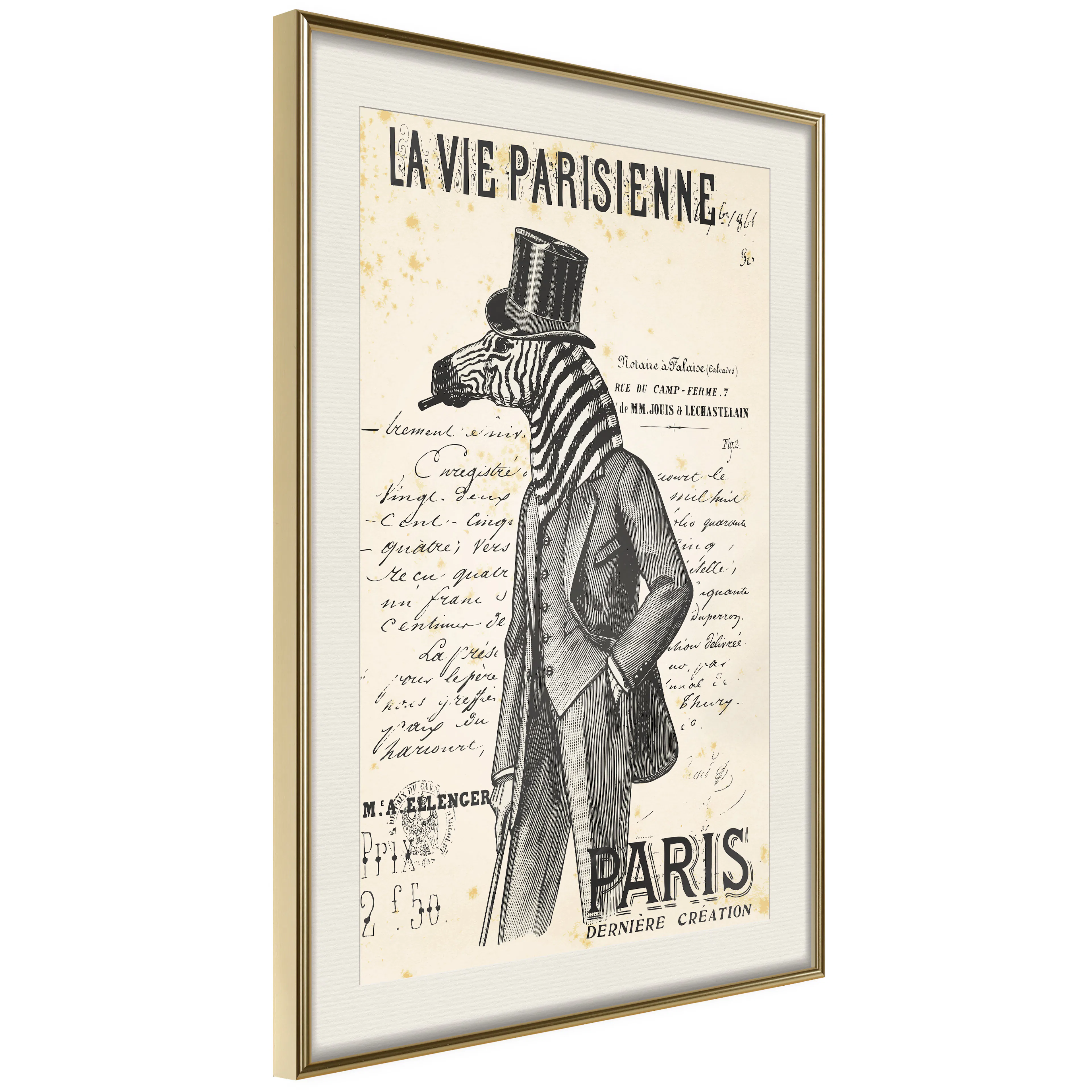 Passepartouten i écru betonar färgern på affischen och skapar en extra kontrast mellan grafiken, ramen och väggen. Dessutom ger den ramen ett svagt tredimensionellt intryck och fungerar även som ett skyddslager som ytterligare skyddar afischen. Affischen är säkrad med akrylglas och en hänganordning finns på ramens baksida.