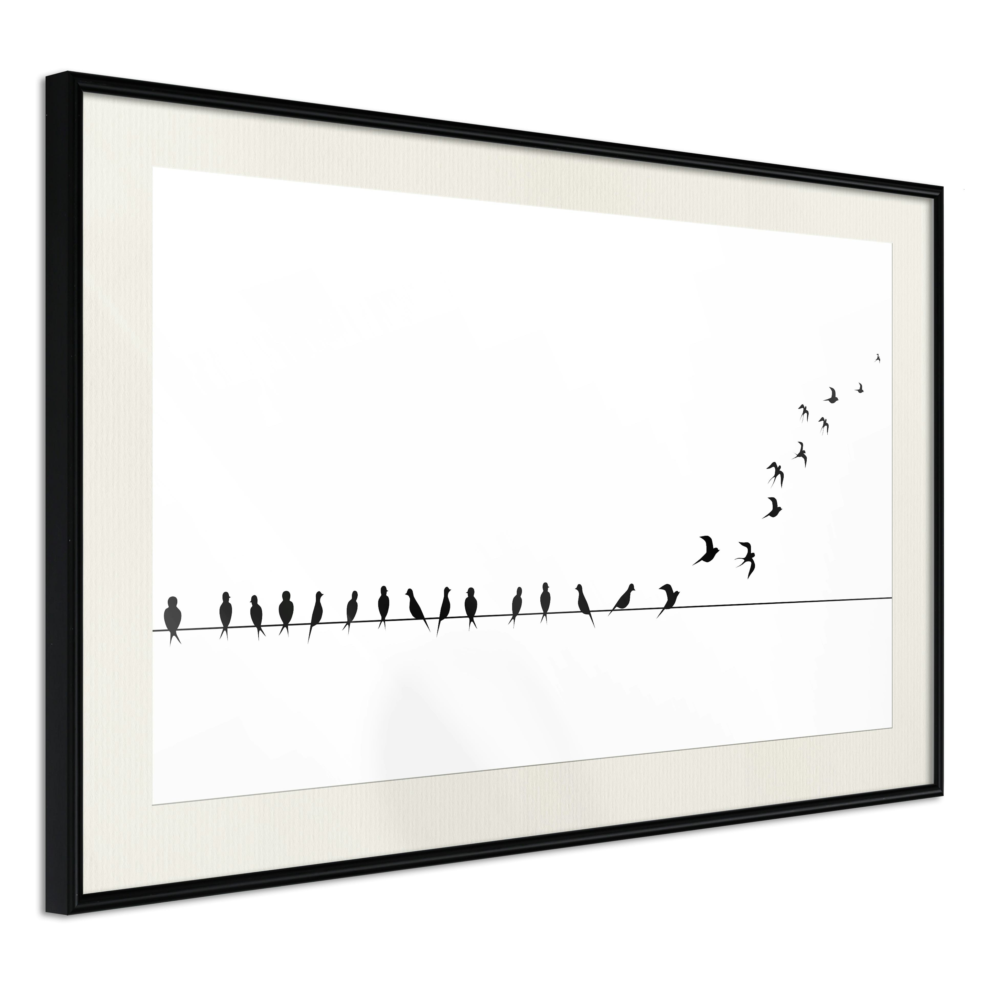 Affischen är inramad i en minimalistisk, lätt ram som gör den mer synlig mot väggen. Affischen är säkrad med akrylglas och en hänganordning finns på ramens baksida.