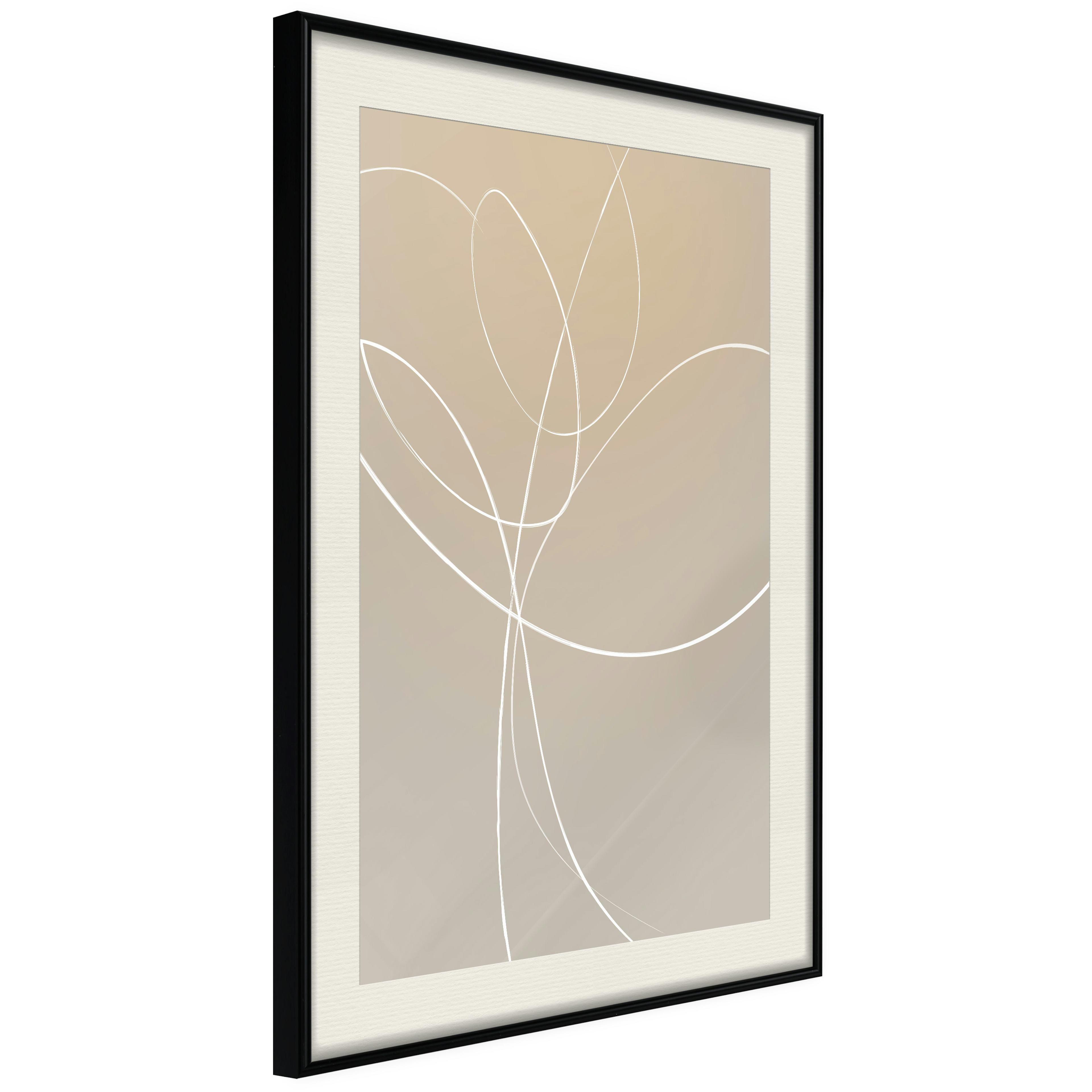 Passepartouten i écru betonar färgern på affischen och skapar en extra kontrast mellan grafiken, ramen och väggen. Dessutom ger den ramen ett svagt tredimensionellt intryck och fungerar även som ett skyddslager som ytterligare skyddar afischen. Affischen är säkrad med akrylglas och en hänganordning finns på ramens baksida.