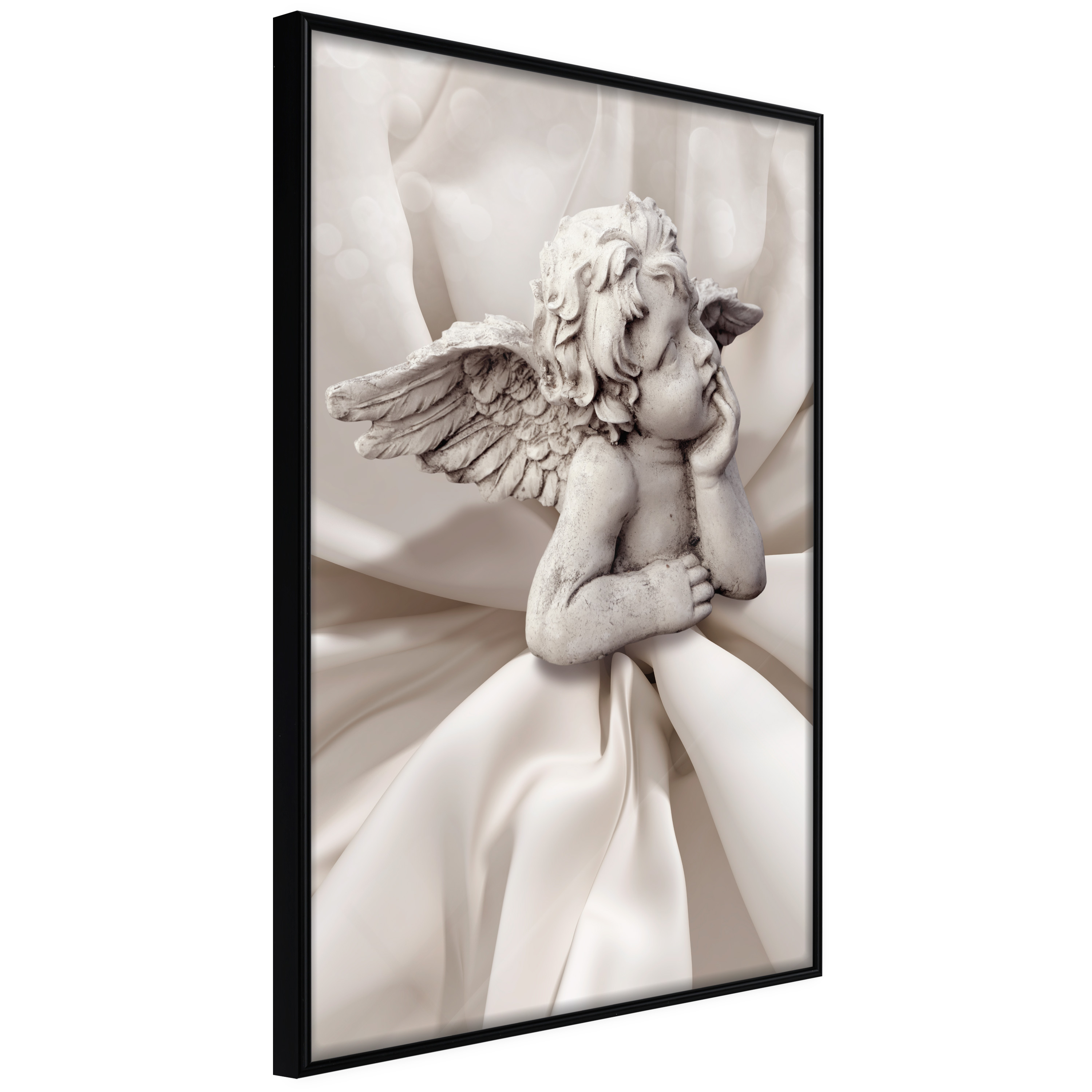Passepartouten i écru betonar färgern på affischen och skapar en extra kontrast mellan grafiken, ramen och väggen. Dessutom ger den ramen ett svagt tredimensionellt intryck och fungerar även som ett skyddslager som ytterligare skyddar afischen. Affischen är säkrad med akrylglas och en hänganordning finns på ramens baksida.