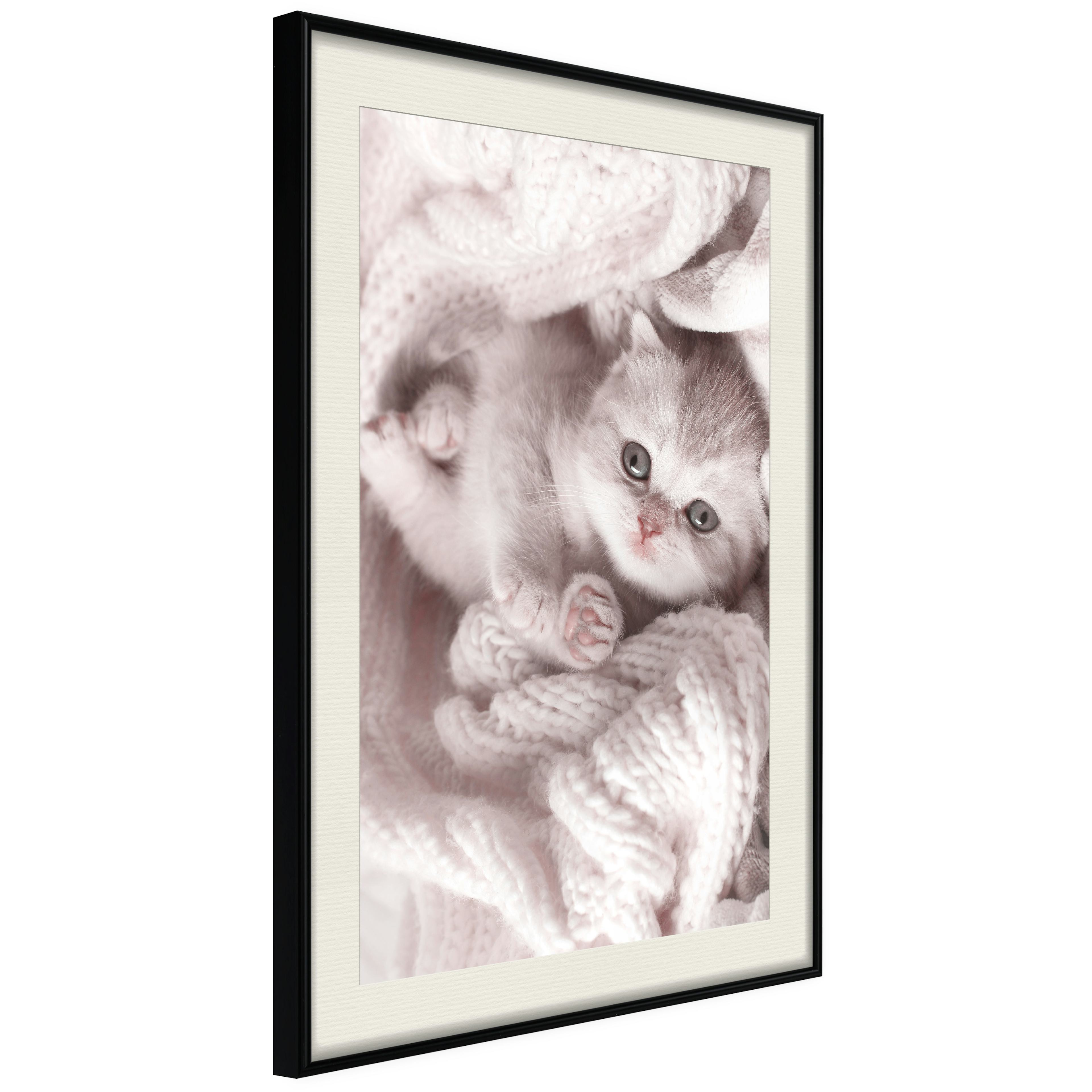 Passepartouten i écru betonar färgern på affischen och skapar en extra kontrast mellan grafiken, ramen och väggen. Dessutom ger den ramen ett svagt tredimensionellt intryck och fungerar även som ett skyddslager som ytterligare skyddar afischen. Affischen är säkrad med akrylglas och en hänganordning finns på ramens baksida.