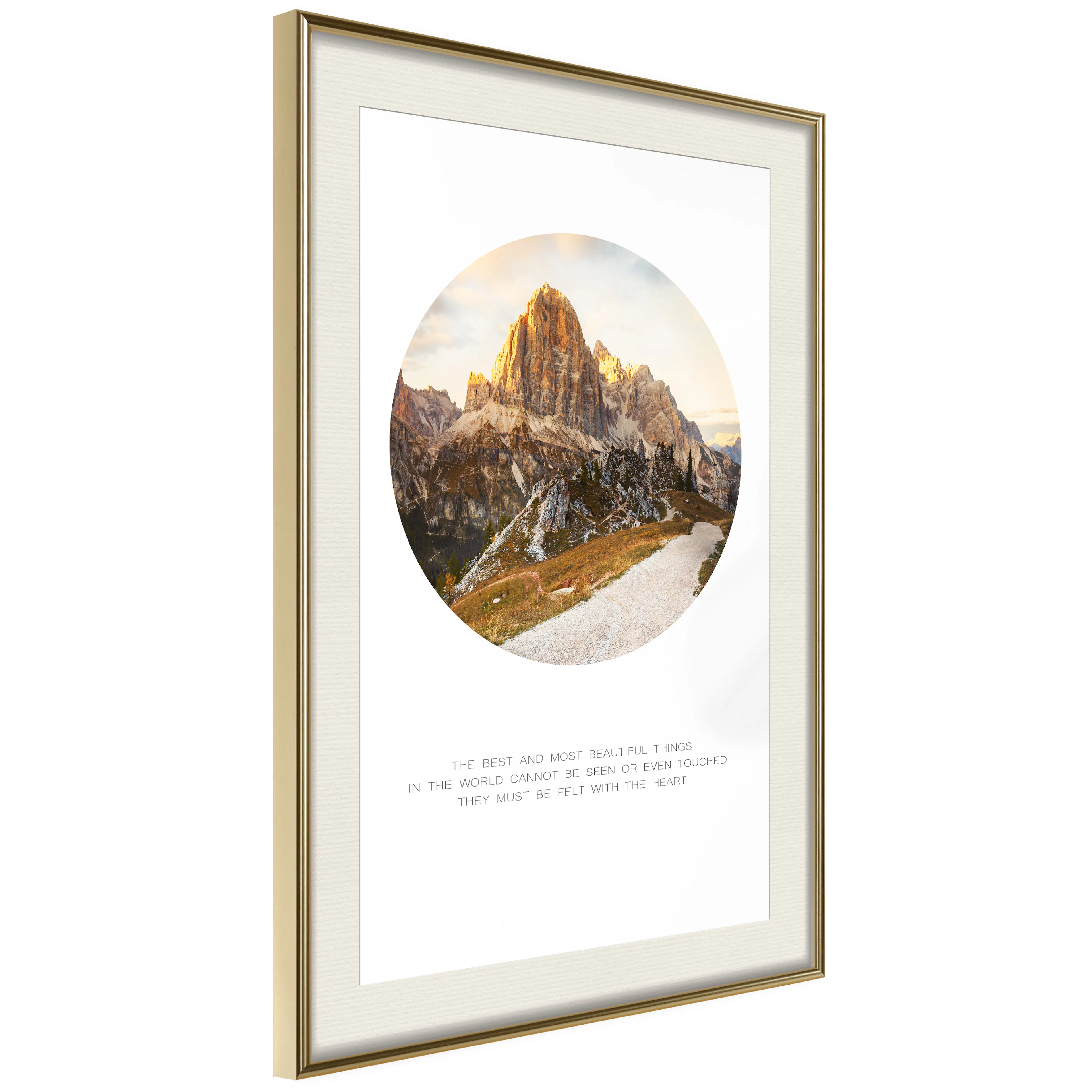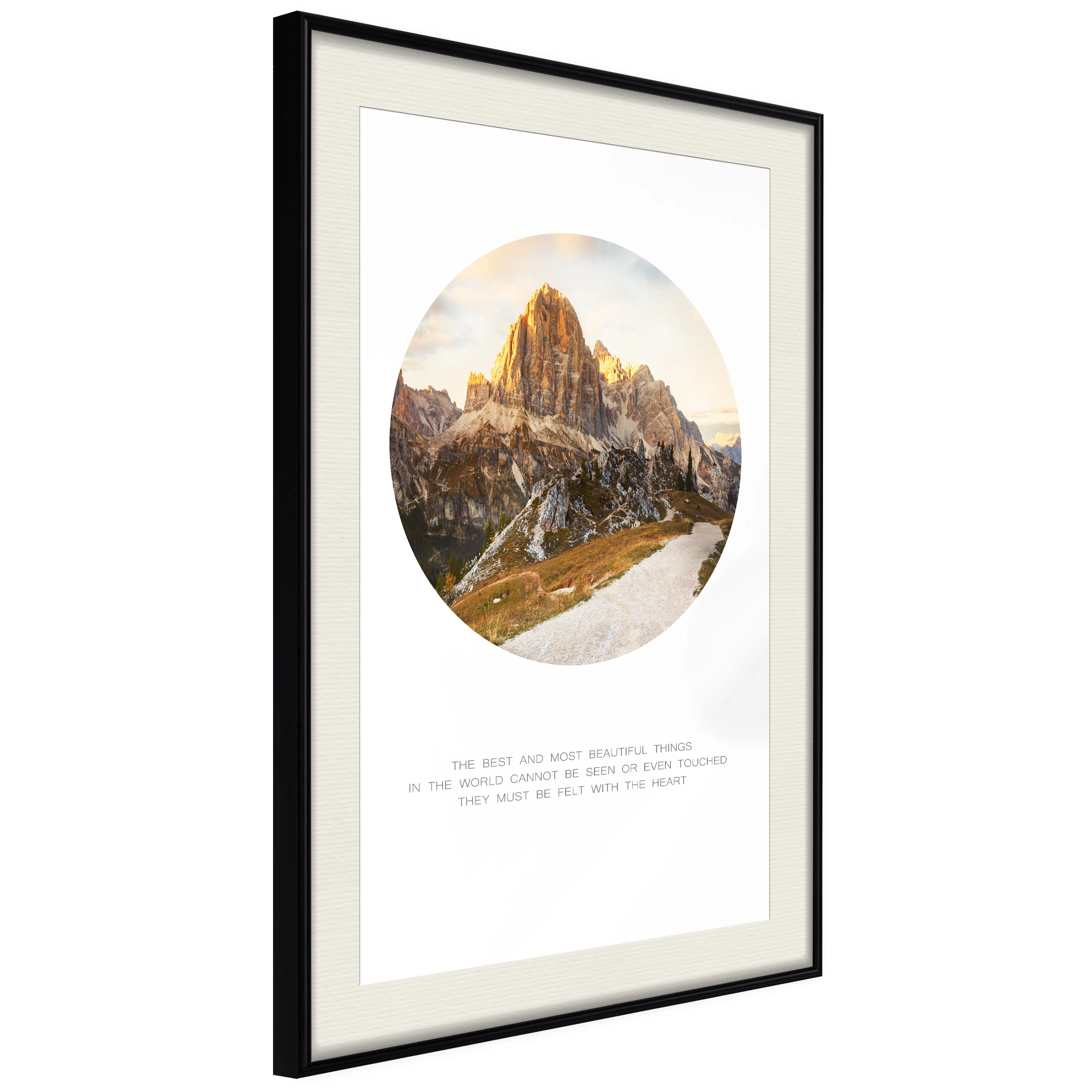 Passepartouten i écru betonar färgern på affischen och skapar en extra kontrast mellan grafiken, ramen och väggen. Dessutom ger den ramen ett svagt tredimensionellt intryck och fungerar även som ett skyddslager som ytterligare skyddar afischen. Affischen är säkrad med akrylglas och en hänganordning finns på ramens baksida.