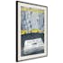 Passepartouten i écru betonar färgern på affischen och skapar en extra kontrast mellan grafiken, ramen och väggen. Dessutom ger den ramen ett svagt tredimensionellt intryck och fungerar även som ett skyddslager som ytterligare skyddar afischen. Affischen är säkrad med akrylglas och en hänganordning finns på ramens baksida.