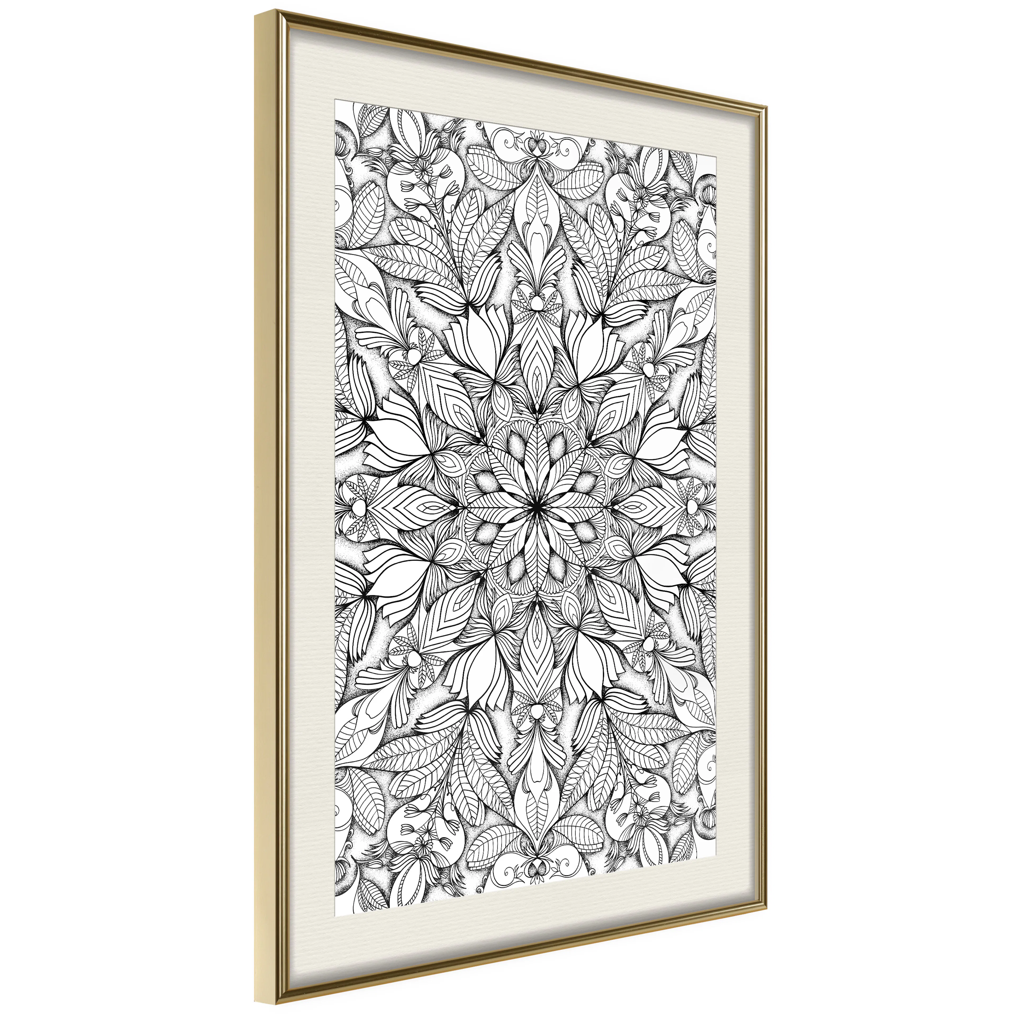 Passepartouten i écru betonar färgern på affischen och skapar en extra kontrast mellan grafiken, ramen och väggen. Dessutom ger den ramen ett svagt tredimensionellt intryck och fungerar även som ett skyddslager som ytterligare skyddar afischen. Affischen är säkrad med akrylglas och en hänganordning finns på ramens baksida.
