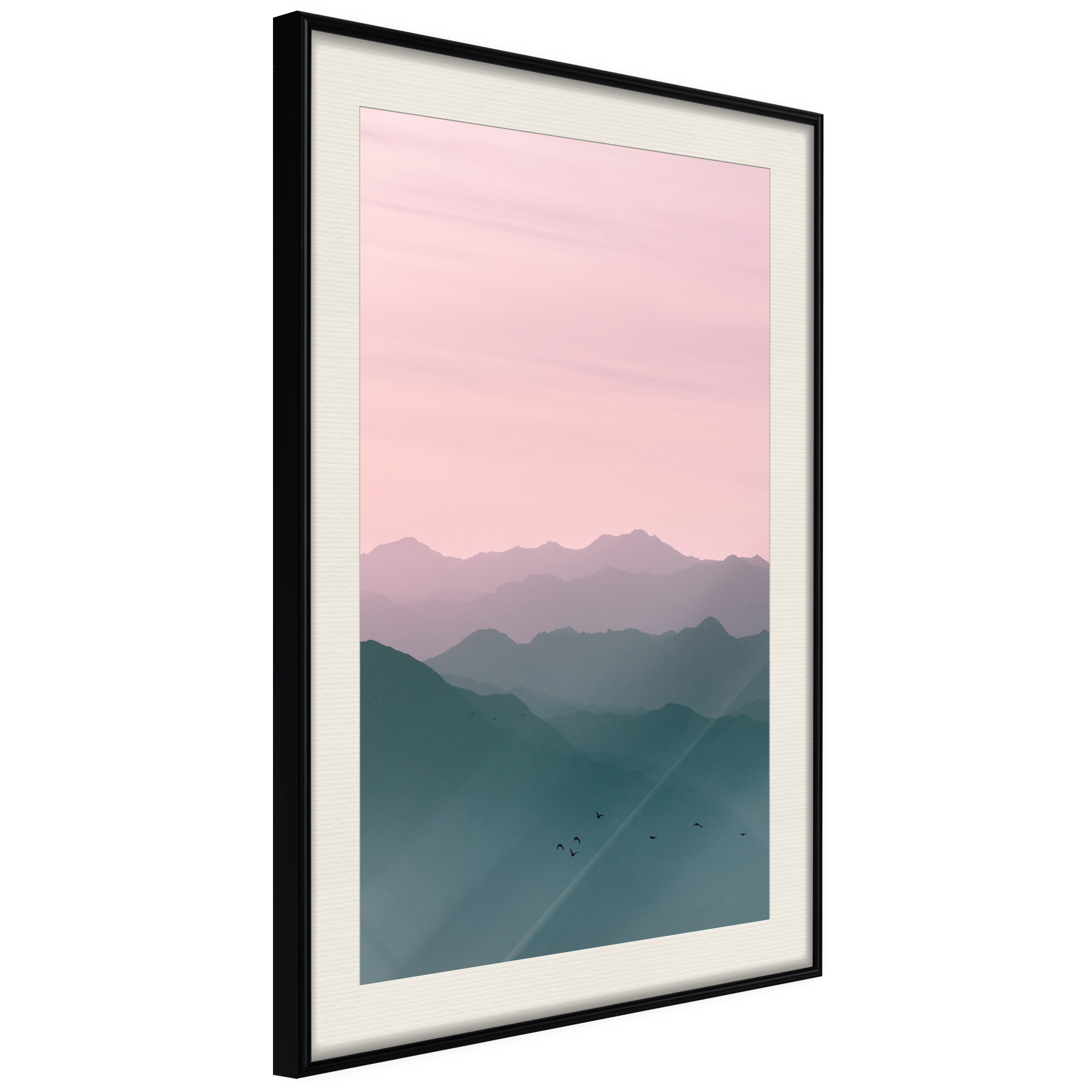 Passepartouten i écru betonar färgern på affischen och skapar en extra kontrast mellan grafiken, ramen och väggen. Dessutom ger den ramen ett svagt tredimensionellt intryck och fungerar även som ett skyddslager som ytterligare skyddar afischen. Affischen är säkrad med akrylglas och en hänganordning finns på ramens baksida.