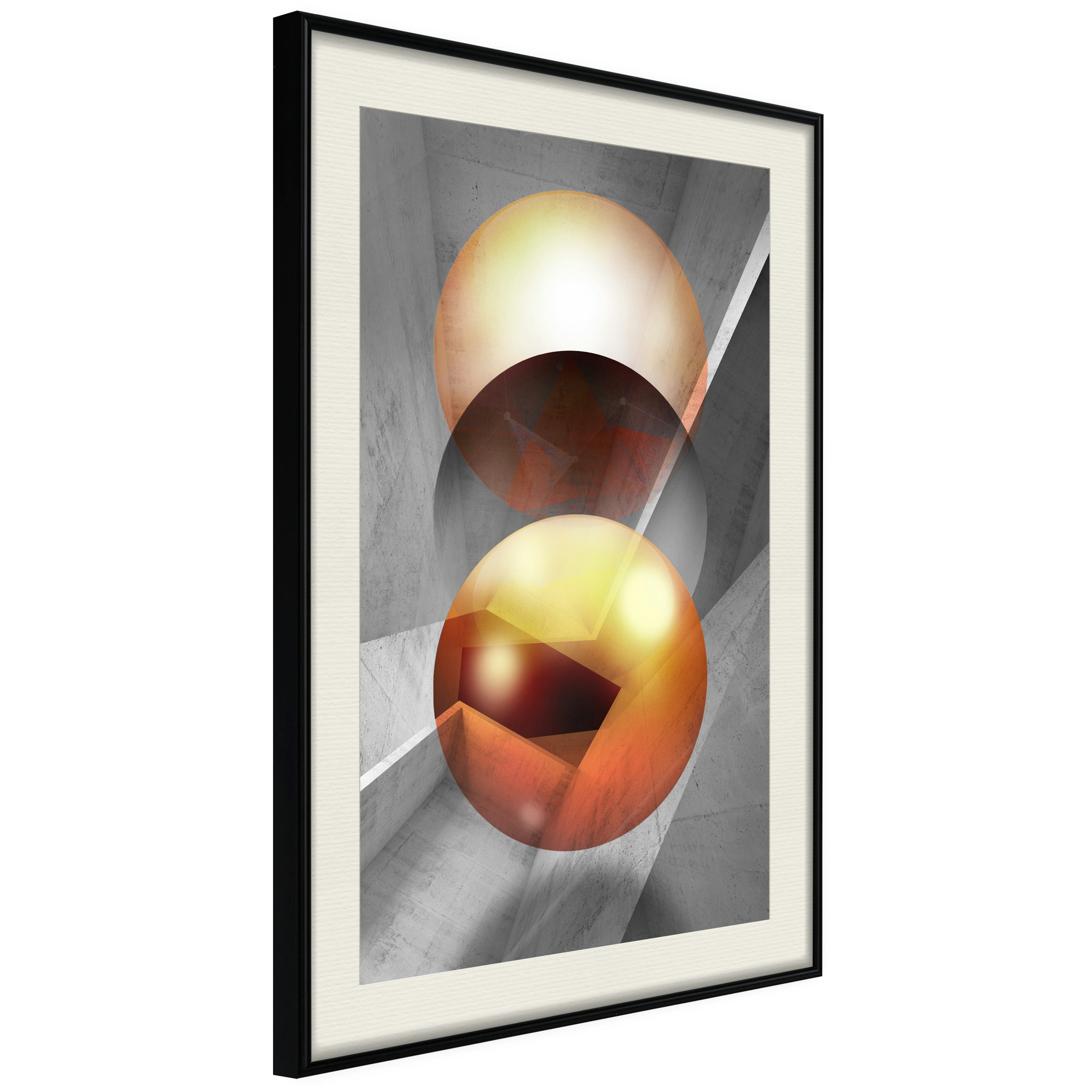 Passepartouten i écru betonar färgern på affischen och skapar en extra kontrast mellan grafiken, ramen och väggen. Dessutom ger den ramen ett svagt tredimensionellt intryck och fungerar även som ett skyddslager som ytterligare skyddar afischen. Affischen är säkrad med akrylglas och en hänganordning finns på ramens baksida.