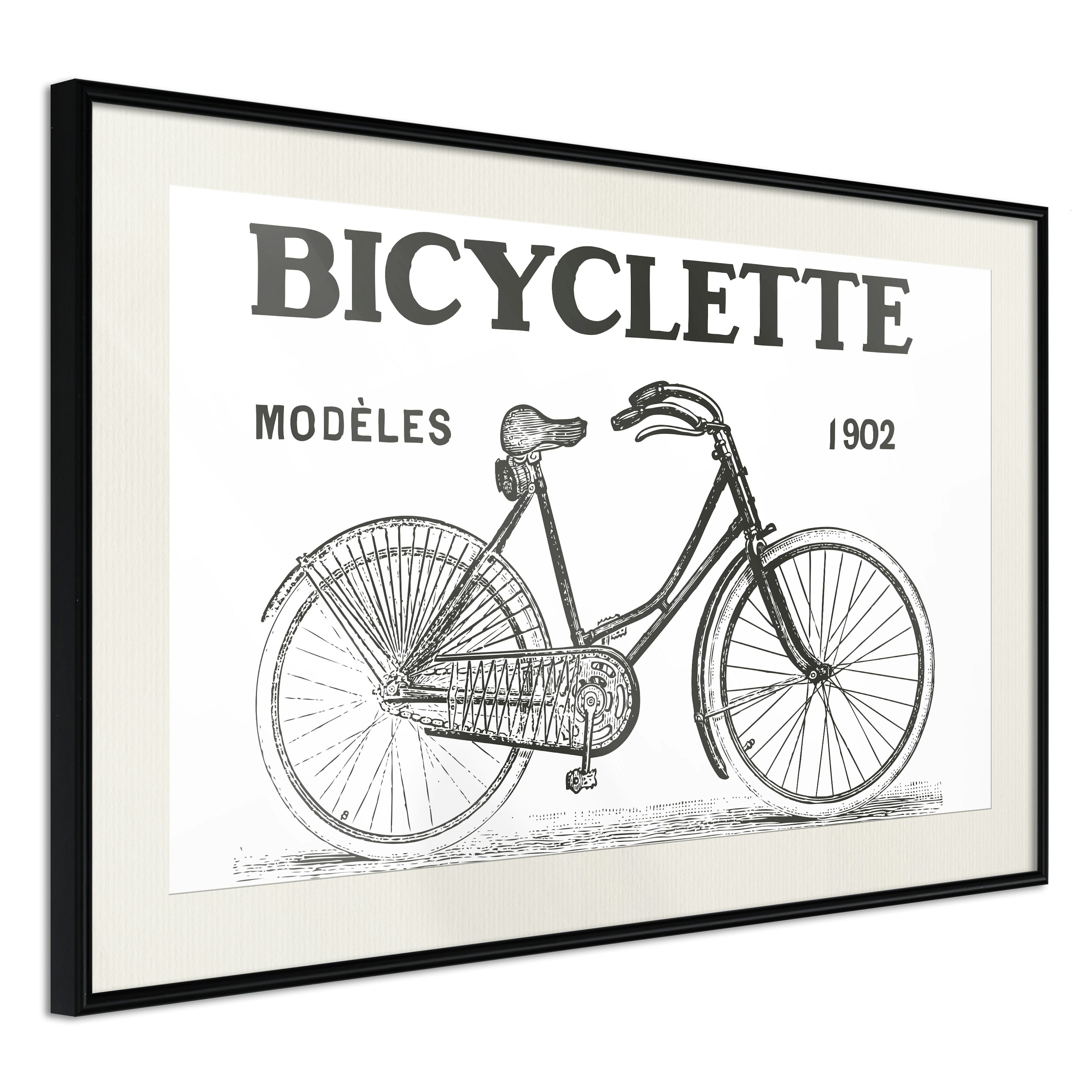 Passepartouten i écru betonar färgern på affischen och skapar en extra kontrast mellan grafiken, ramen och väggen. Dessutom ger den ramen ett svagt tredimensionellt intryck och fungerar även som ett skyddslager som ytterligare skyddar afischen. Affischen är säkrad med akrylglas och en hänganordning finns på ramens baksida.