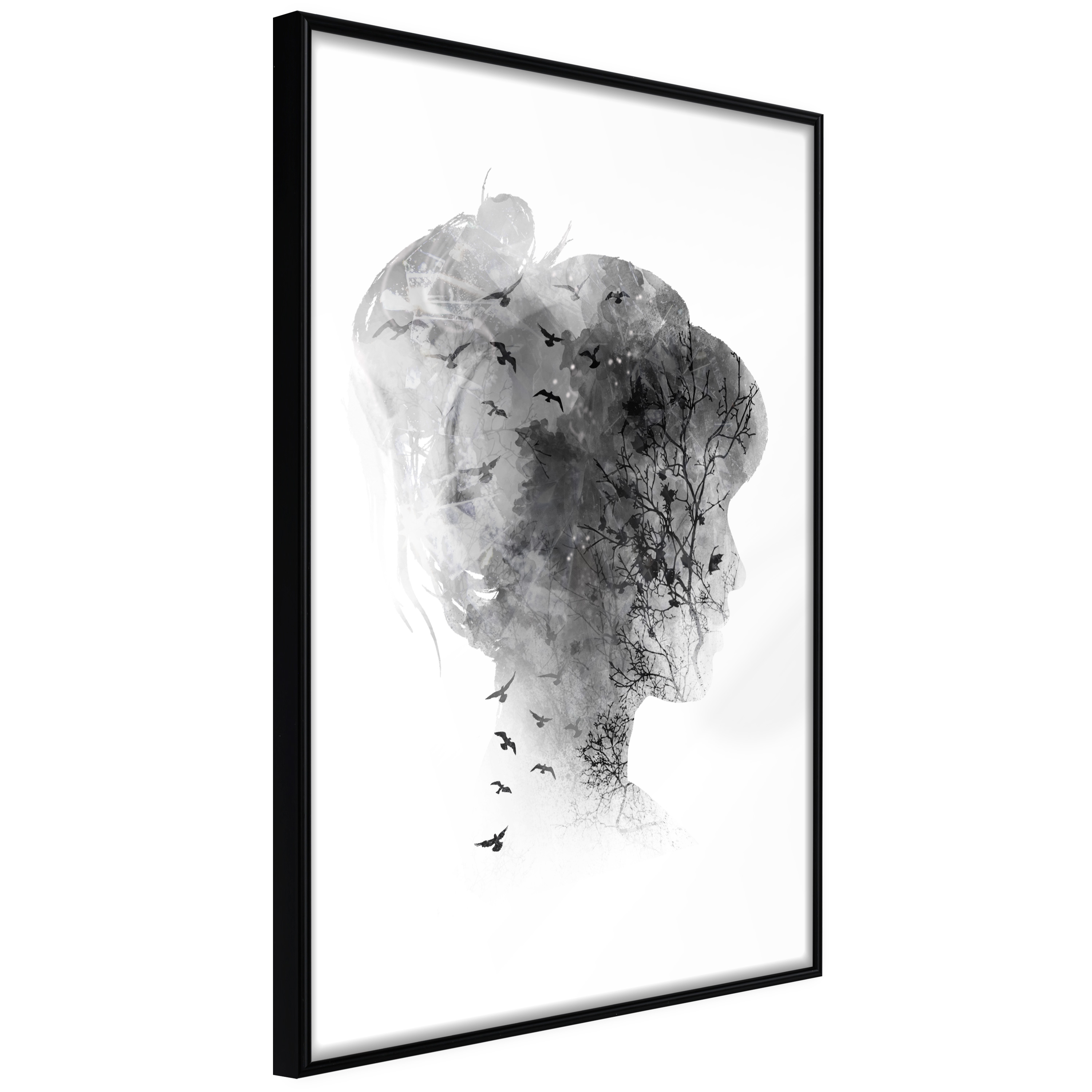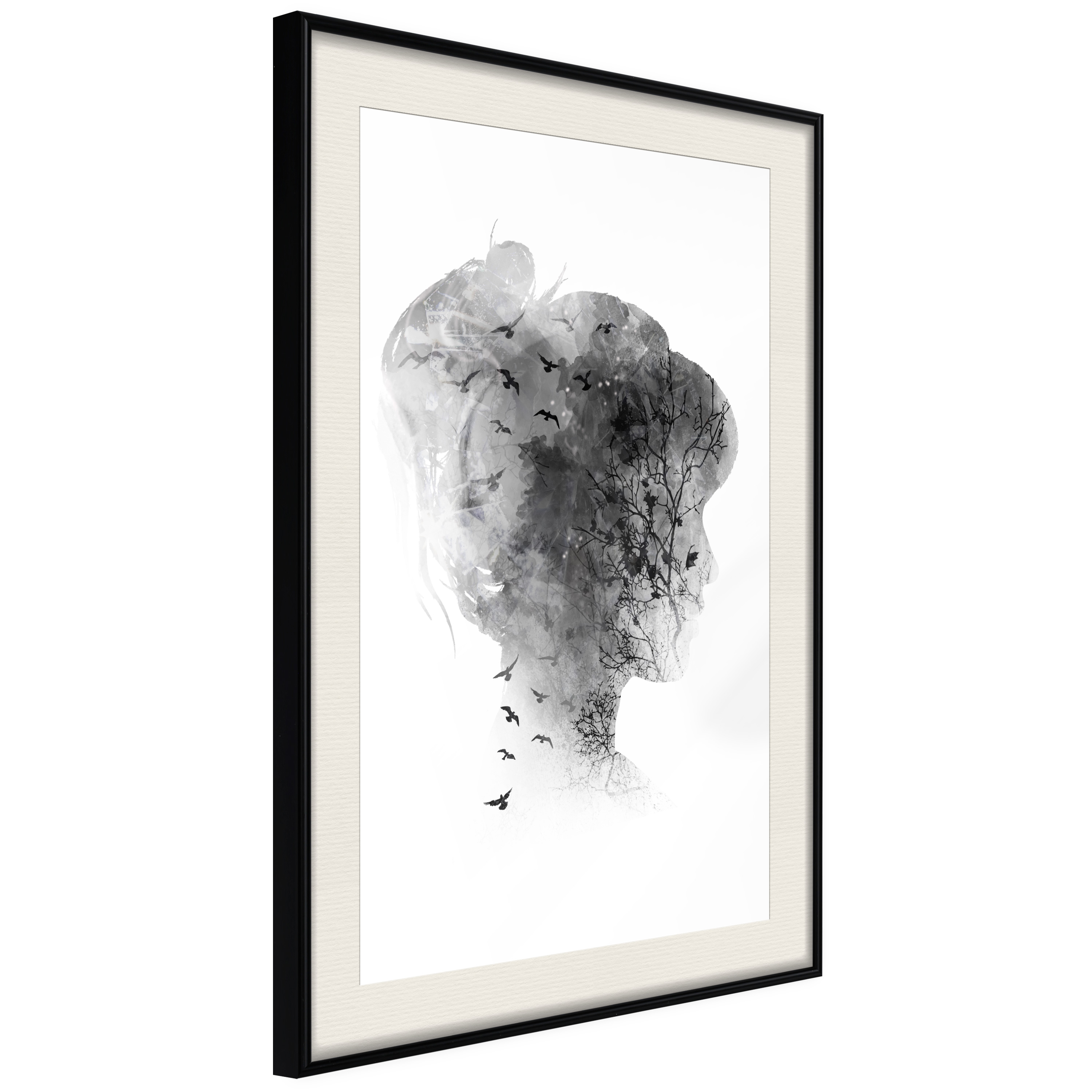 Affischen är inramad i en minimalistisk, lätt ram som gör den mer synlig mot väggen. Affischen är säkrad med akrylglas och en hänganordning finns på ramens baksida.