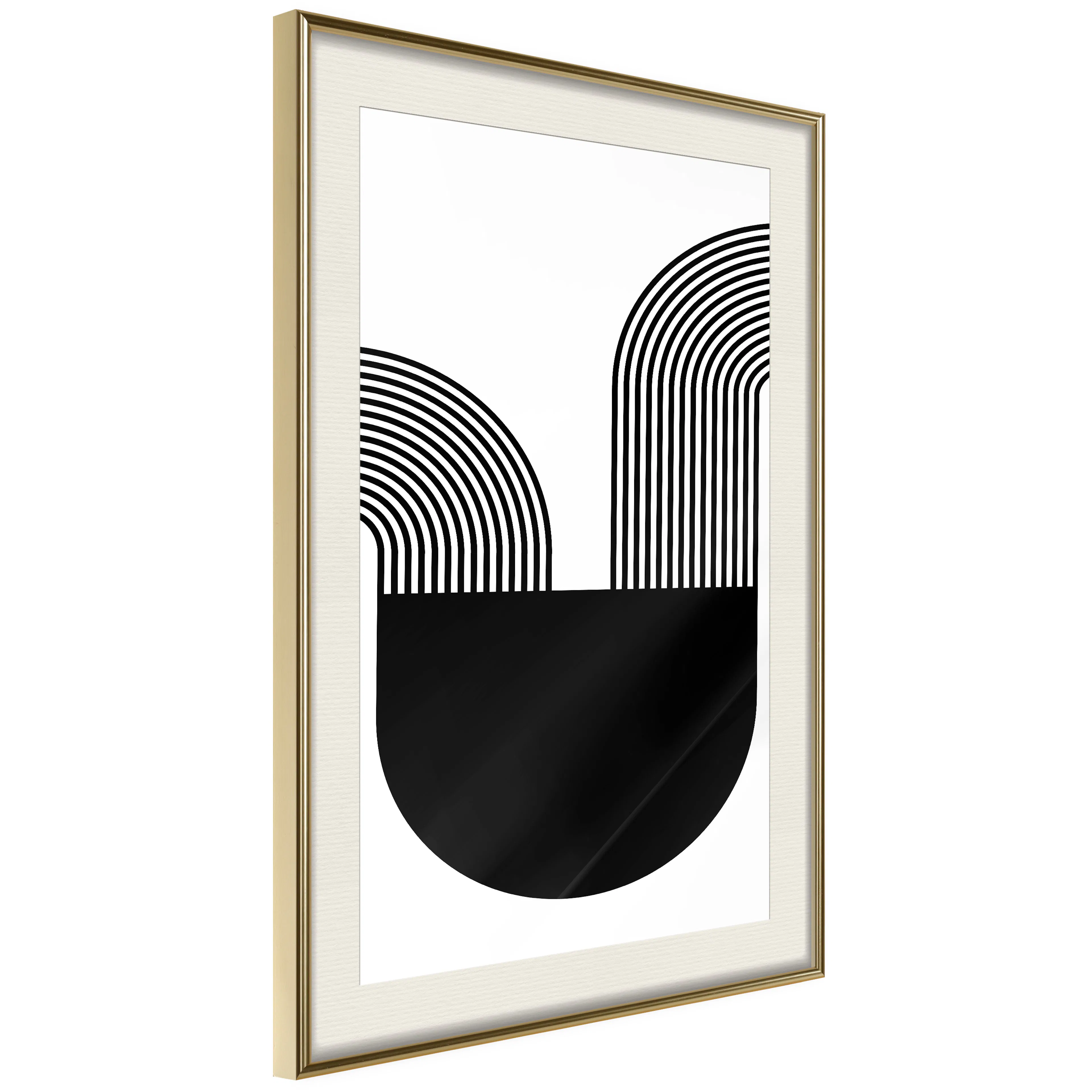 Passepartouten i écru betonar färgern på affischen och skapar en extra kontrast mellan grafiken, ramen och väggen. Dessutom ger den ramen ett svagt tredimensionellt intryck och fungerar även som ett skyddslager som ytterligare skyddar afischen. Affischen är säkrad med akrylglas och en hänganordning finns på ramens baksida.
