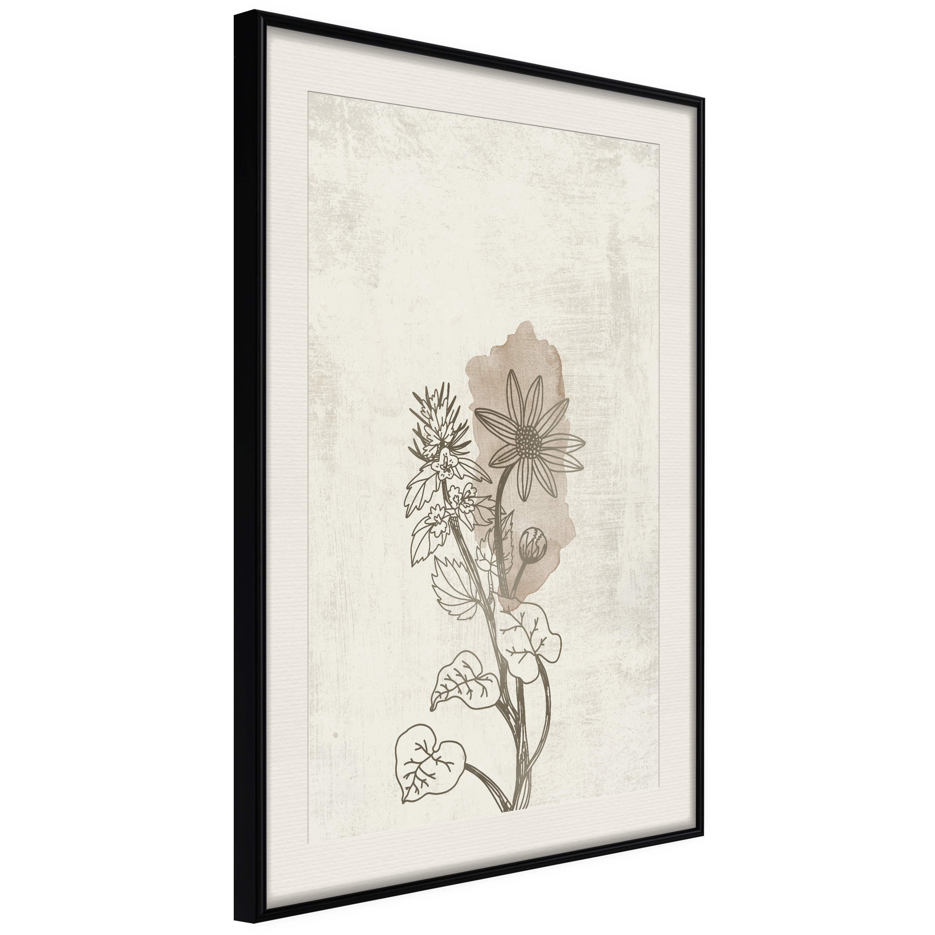 Passepartouten i écru betonar färgern på affischen och skapar en extra kontrast mellan grafiken, ramen och väggen. Dessutom ger den ramen ett svagt tredimensionellt intryck och fungerar även som ett skyddslager som ytterligare skyddar afischen. Affischen är säkrad med akrylglas och en hänganordning finns på ramens baksida.