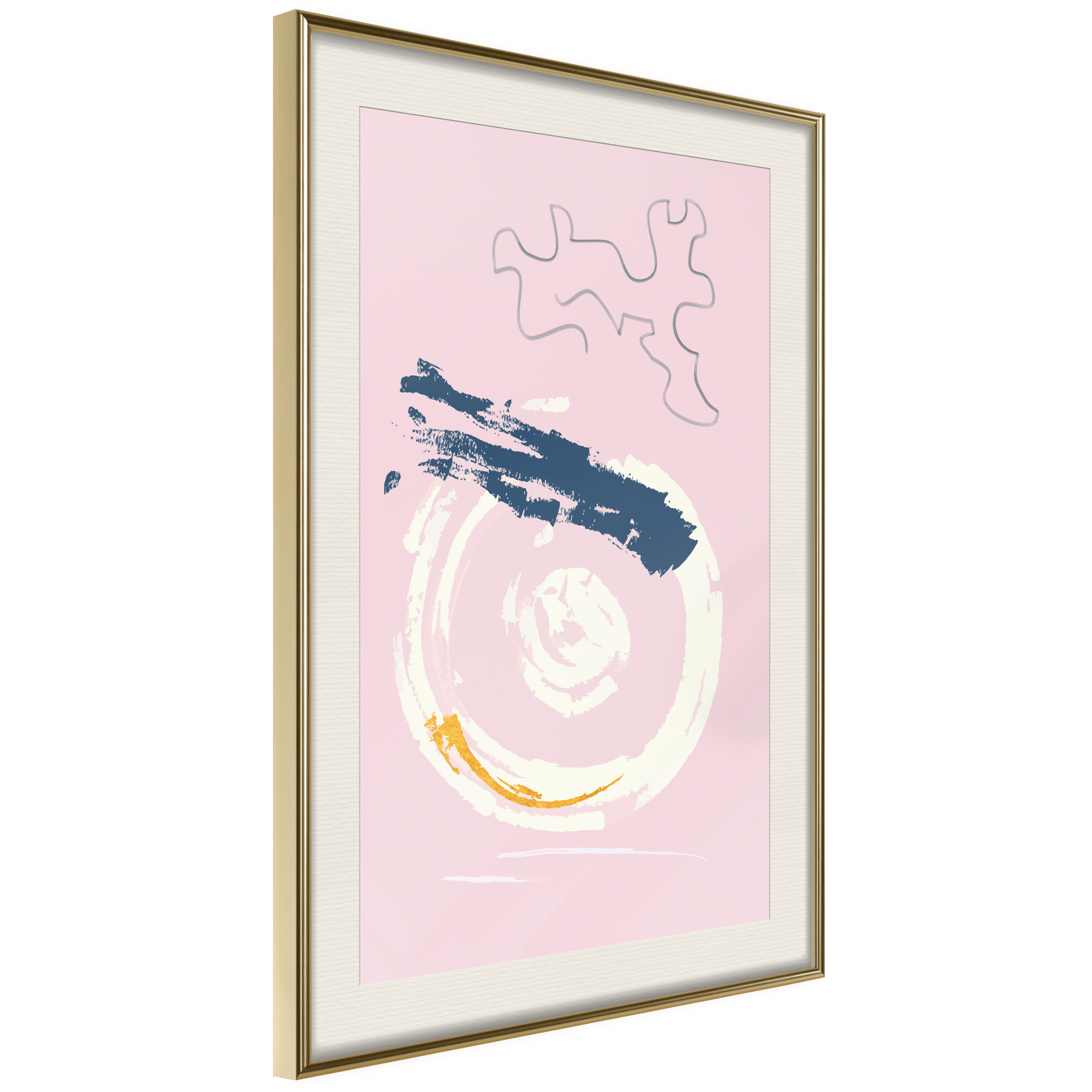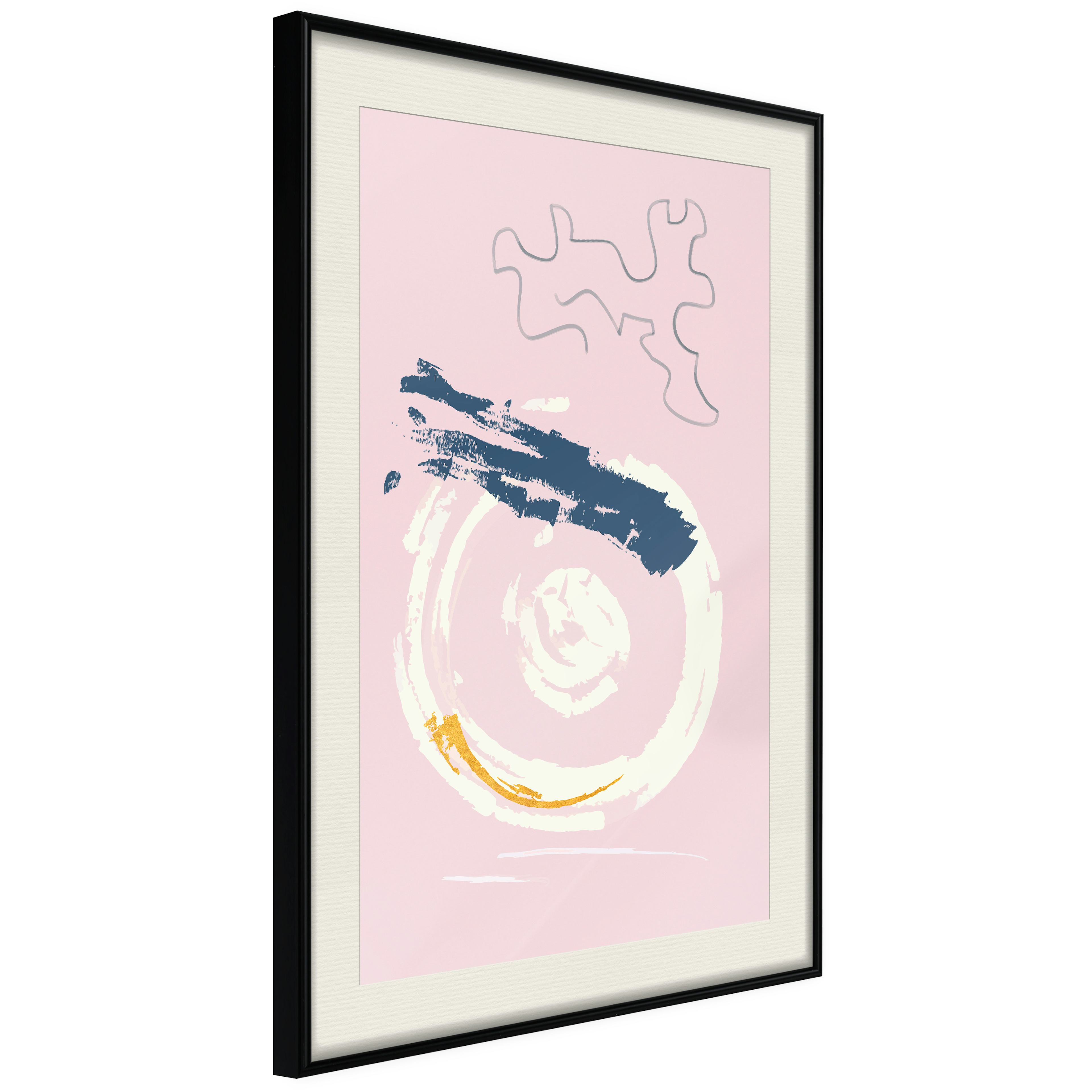 Passepartouten i écru betonar färgern på affischen och skapar en extra kontrast mellan grafiken, ramen och väggen. Dessutom ger den ramen ett svagt tredimensionellt intryck och fungerar även som ett skyddslager som ytterligare skyddar afischen. Affischen är säkrad med akrylglas och en hänganordning finns på ramens baksida.