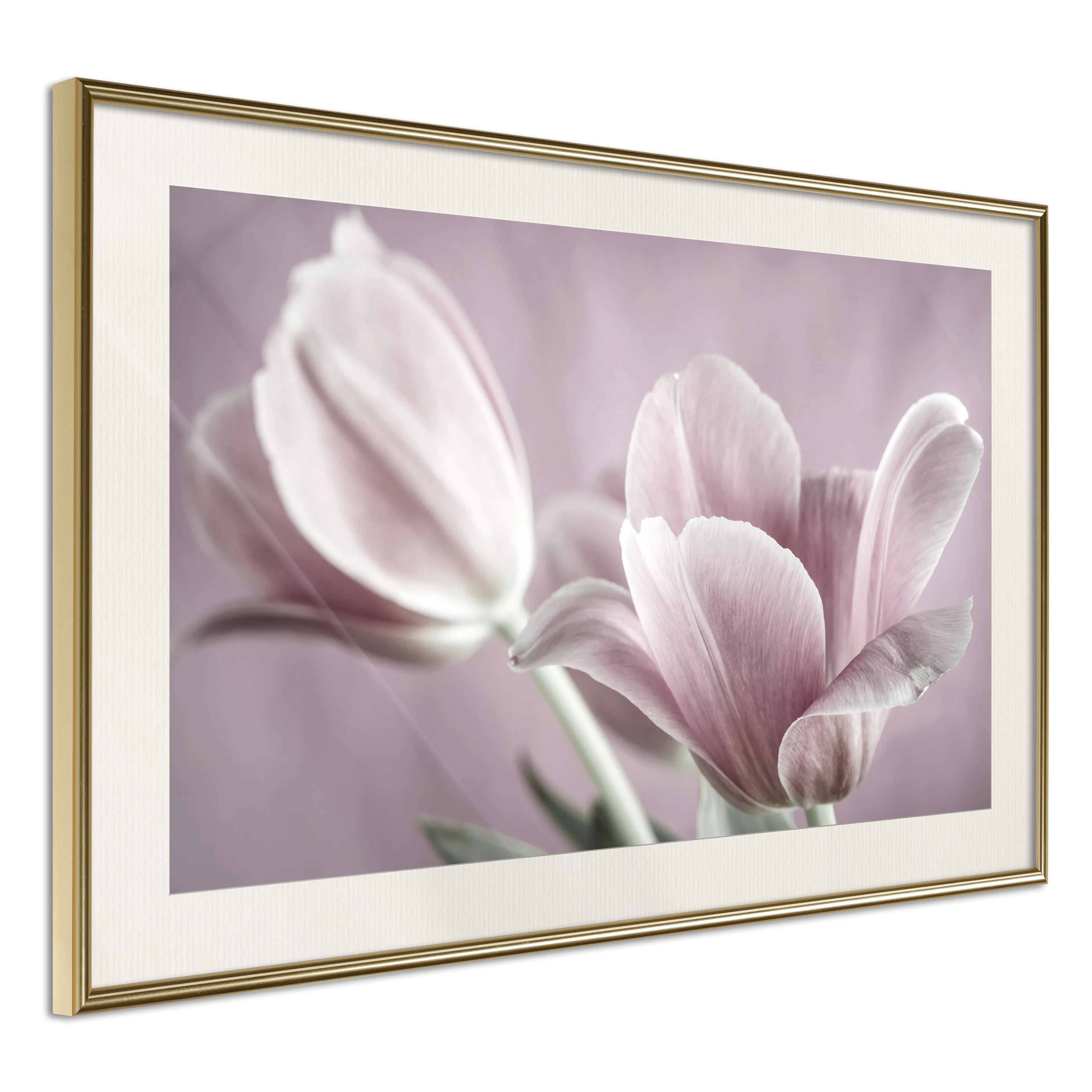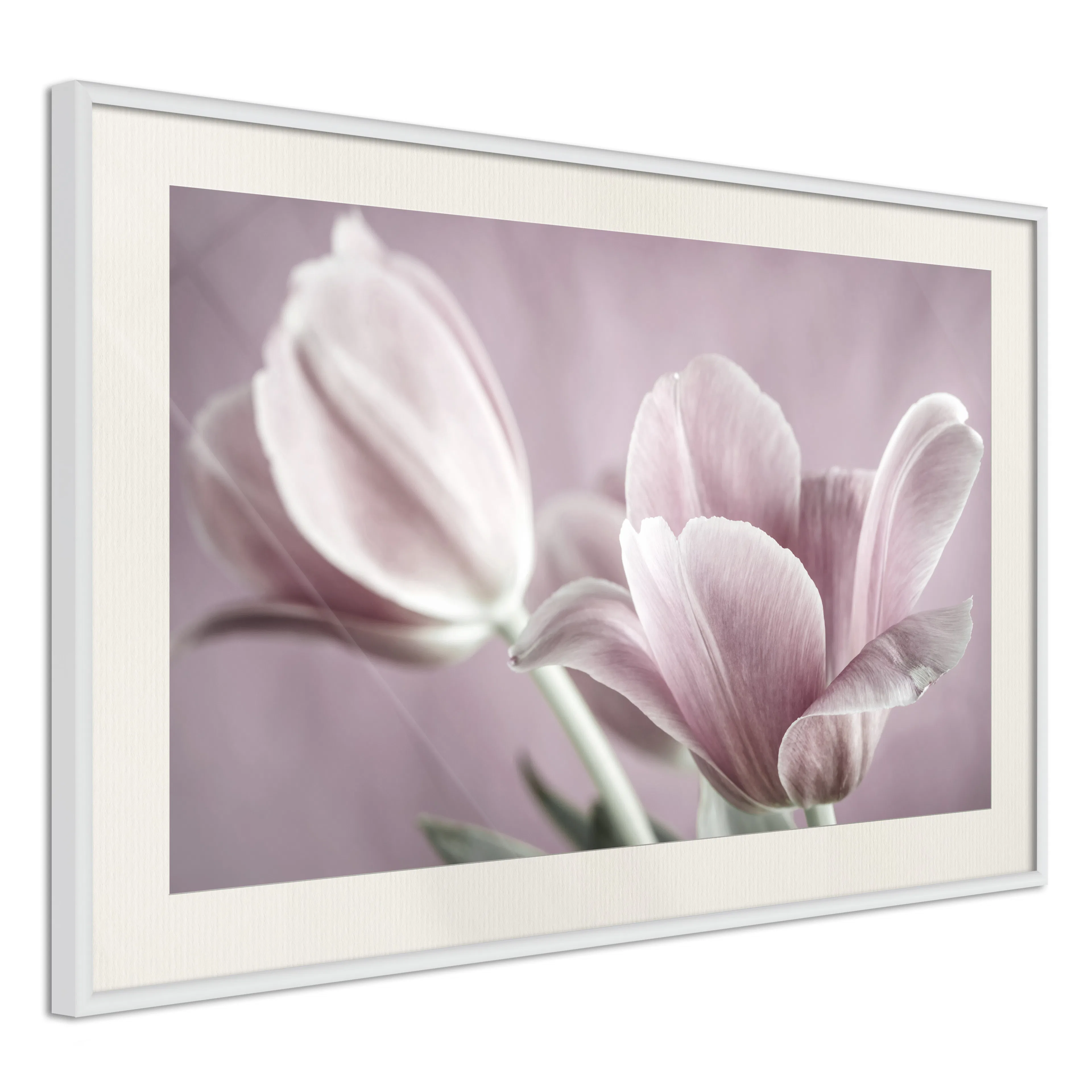 Poster Artgeist Affisch Pink TulipsSvart ram med passepartout, 45x30 cm