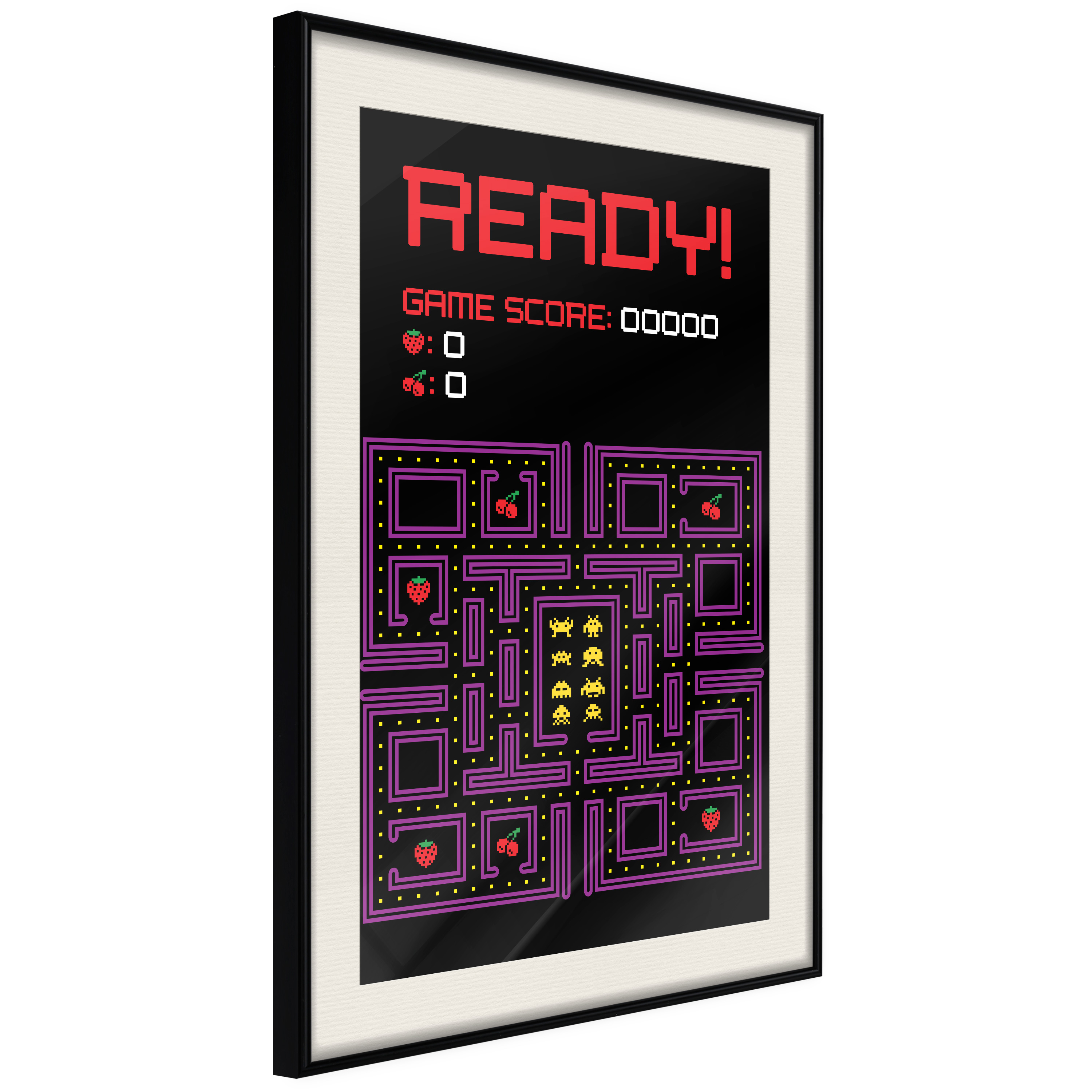 Passepartouten i écru betonar färgern på affischen och skapar en extra kontrast mellan grafiken, ramen och väggen. Dessutom ger den ramen ett svagt tredimensionellt intryck och fungerar även som ett skyddslager som ytterligare skyddar afischen. Affischen är säkrad med akrylglas och en hänganordning finns på ramens baksida.